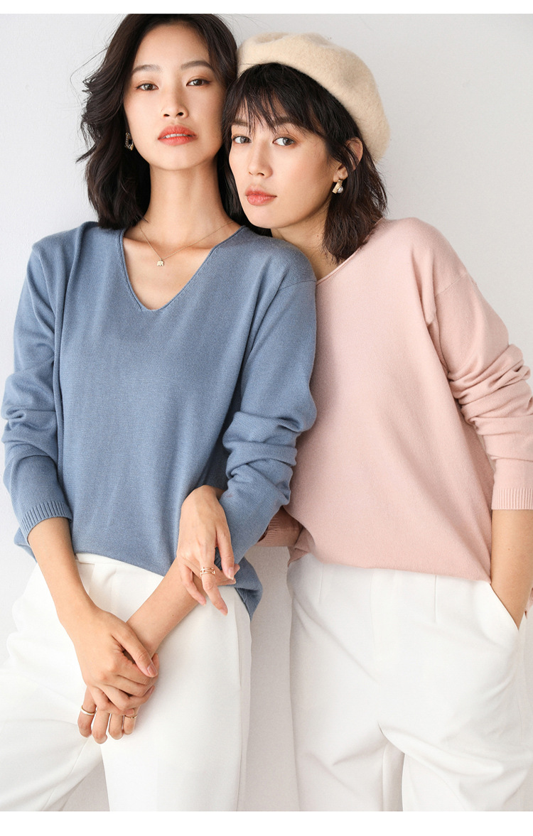 早春新品【精致百搭 一眼着迷】V领气质慵懒风针织打底衫 百搭显瘦 细腻柔滑 亲肤不扎 不掉毛 伸展无拘束