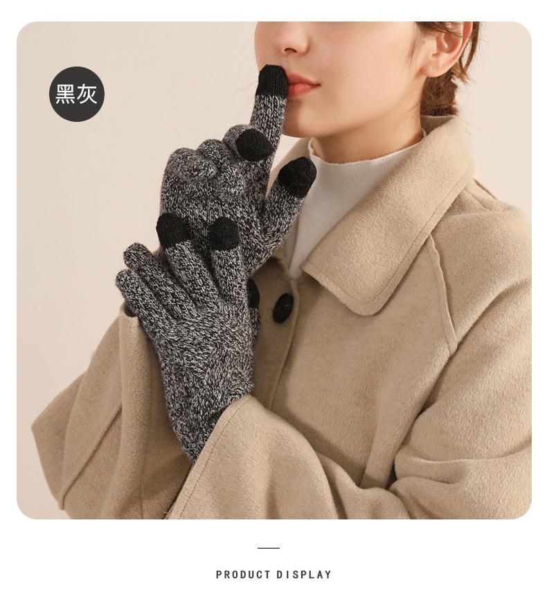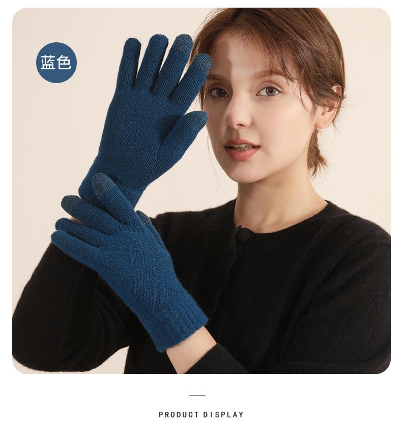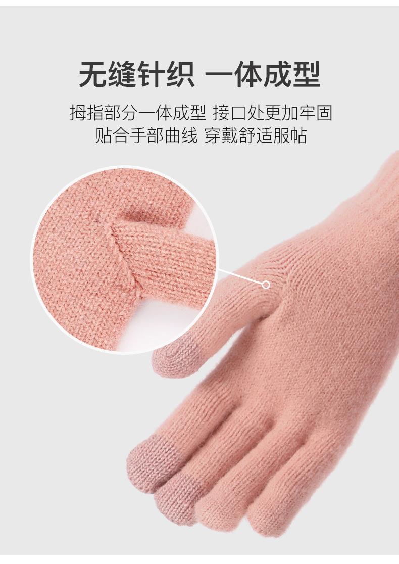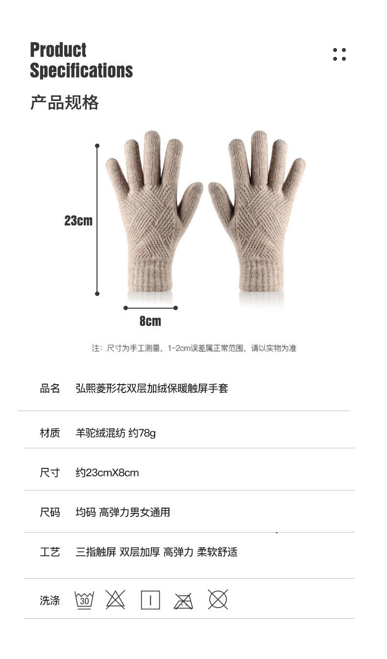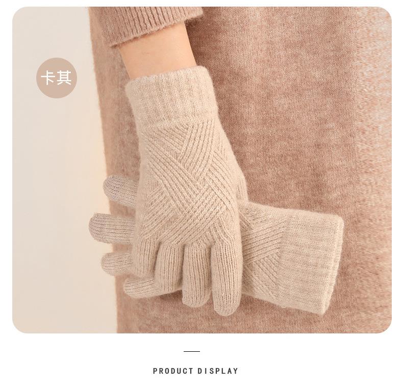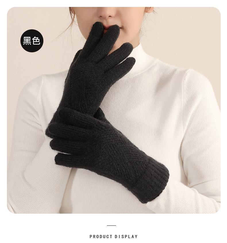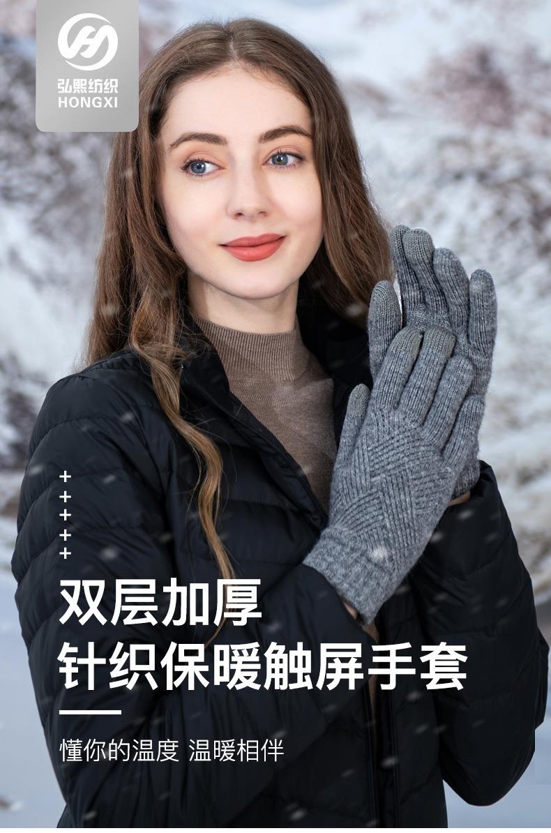 冬季针织手套女双层加绒加厚触屏手套骑行防寒保暖手套男