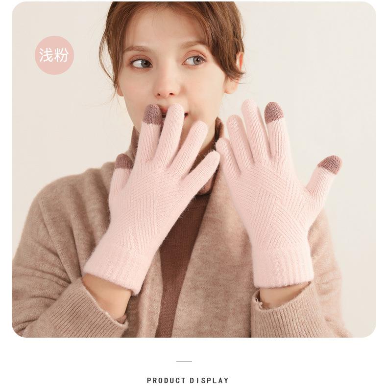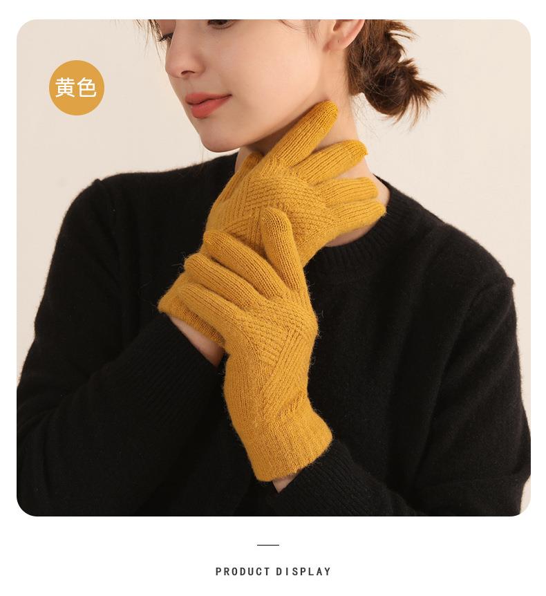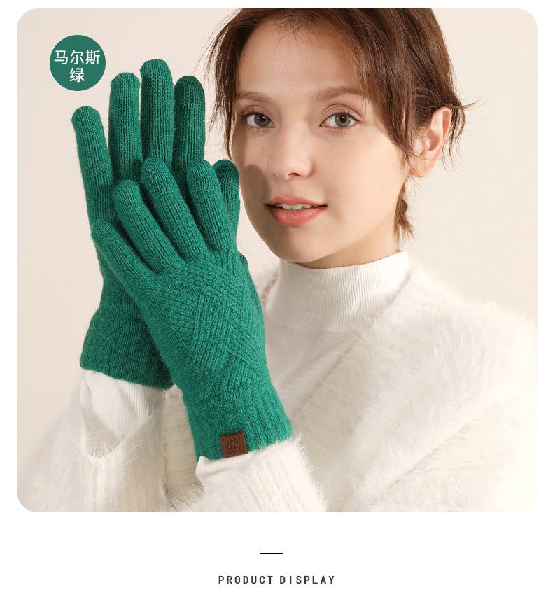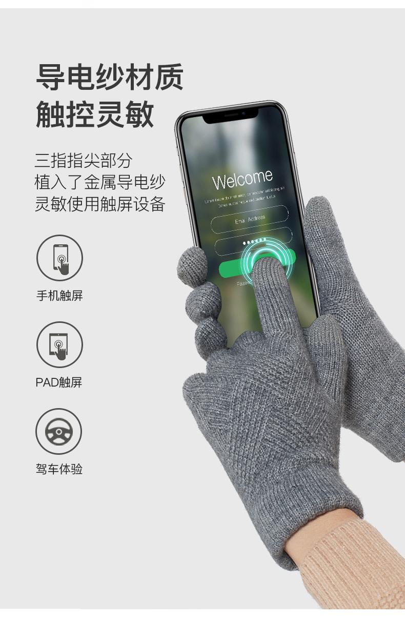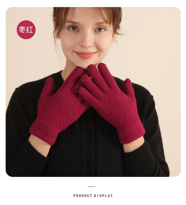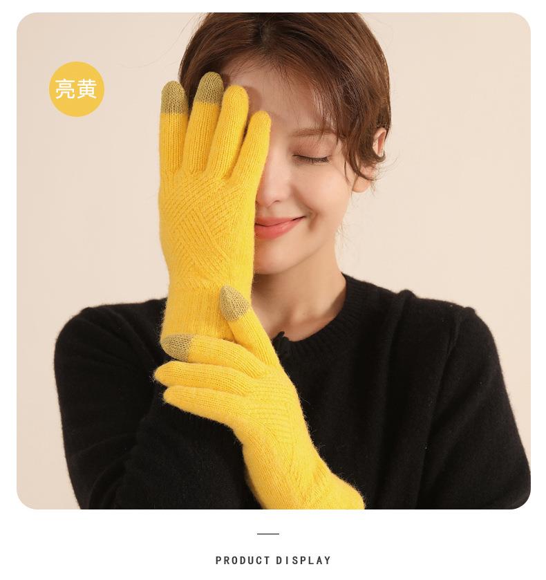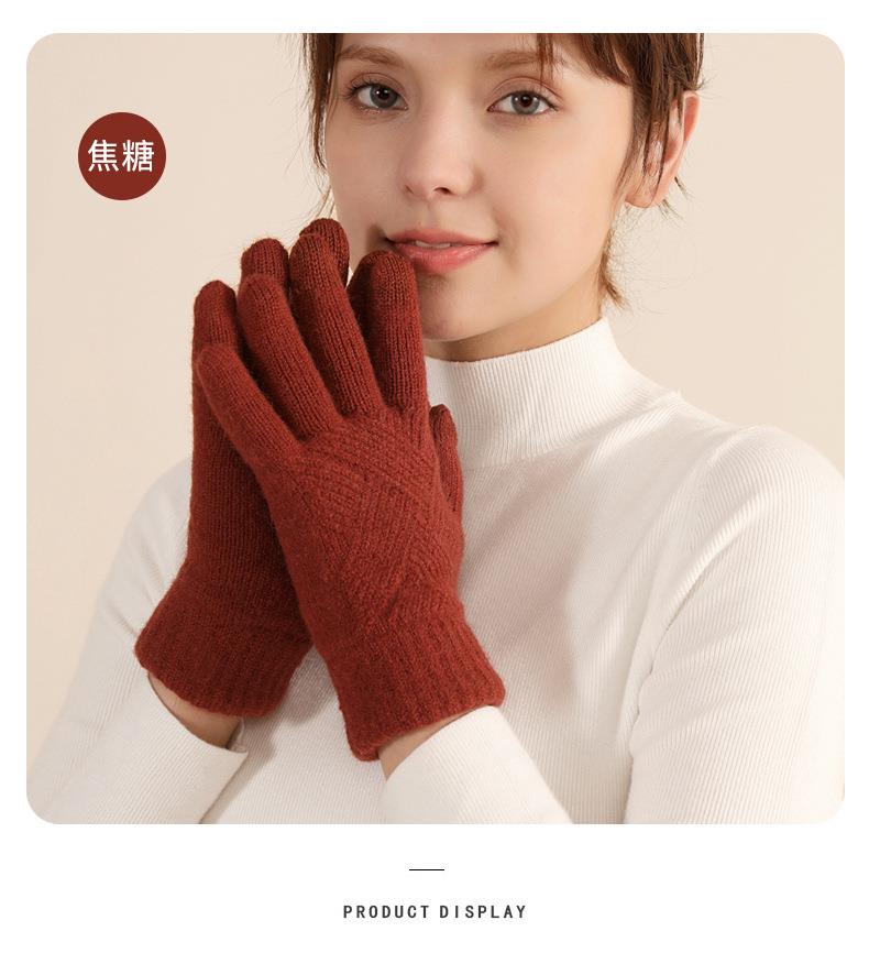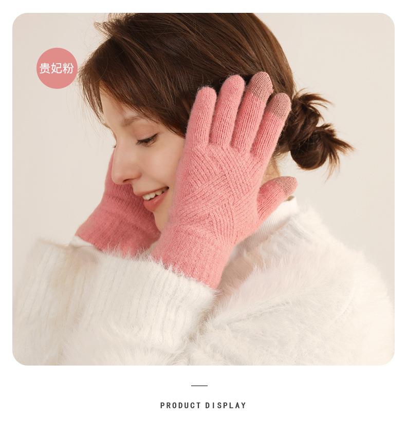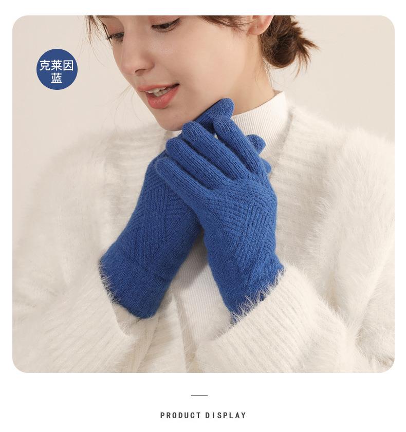 冬季针织手套女双层加绒加厚触屏手套骑行防寒保暖手套男
