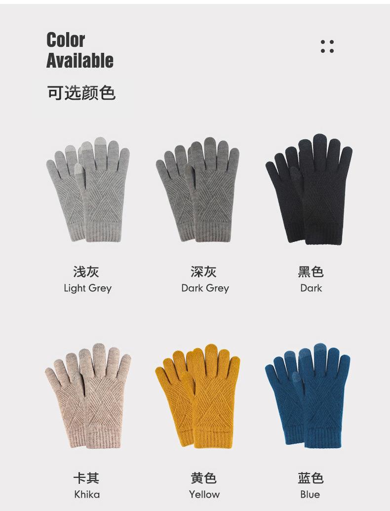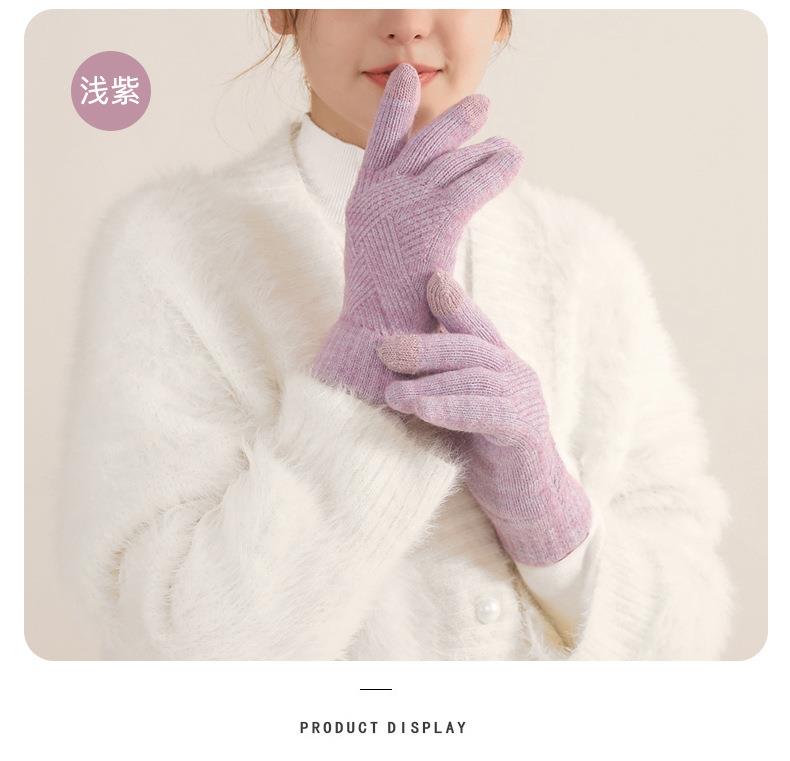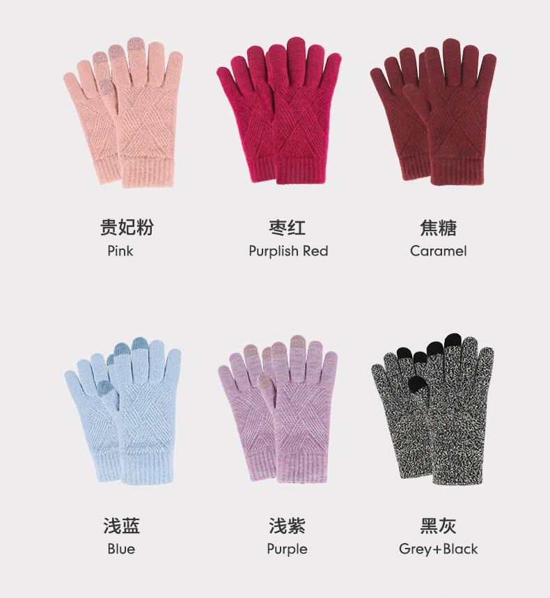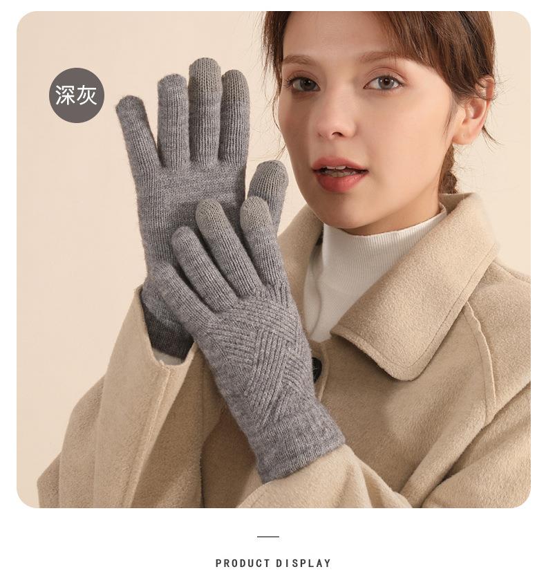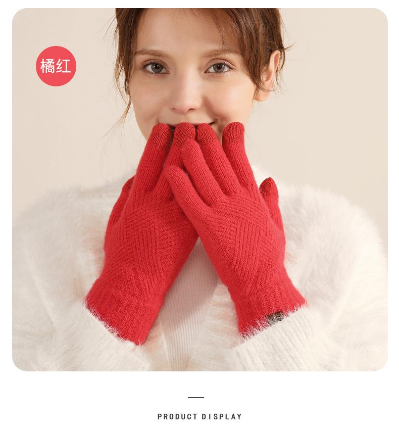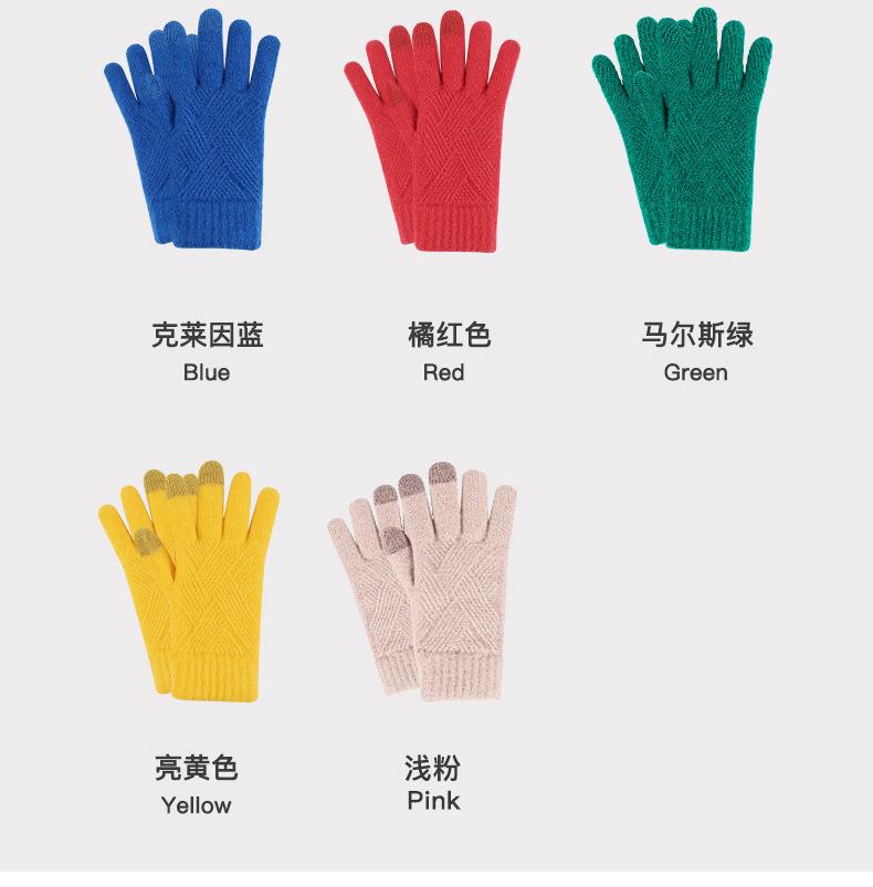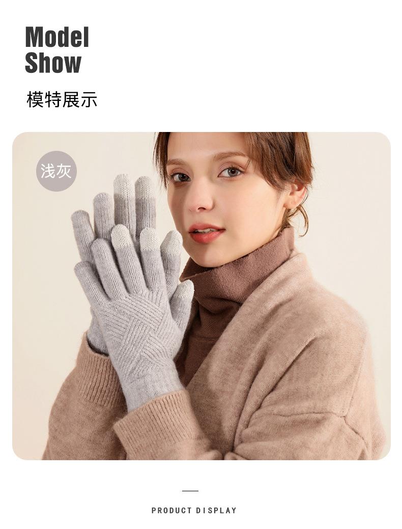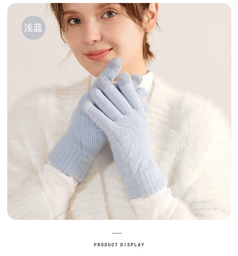 冬季针织手套女双层加绒加厚触屏手套骑行防寒保暖手套男