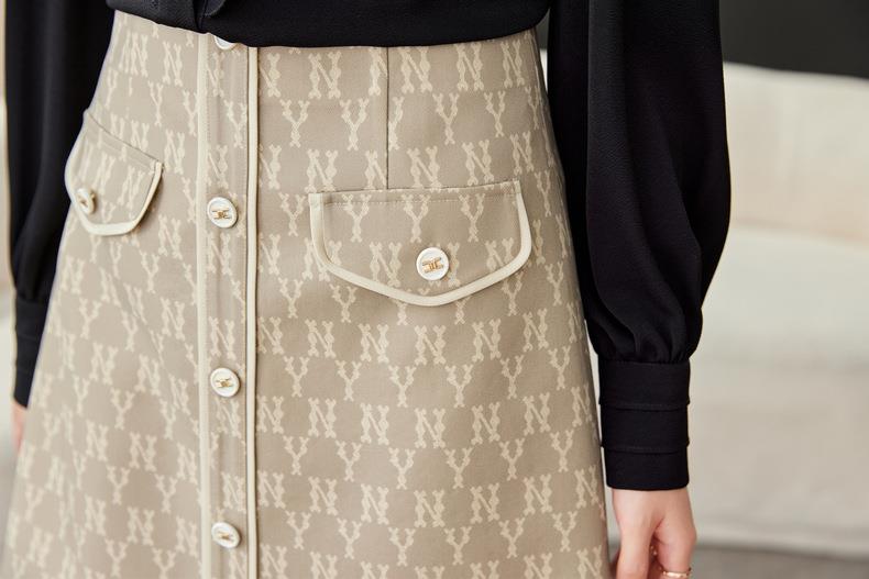 半身裙女2024春装新款高腰A字裙修身包臀拼接中裙1760