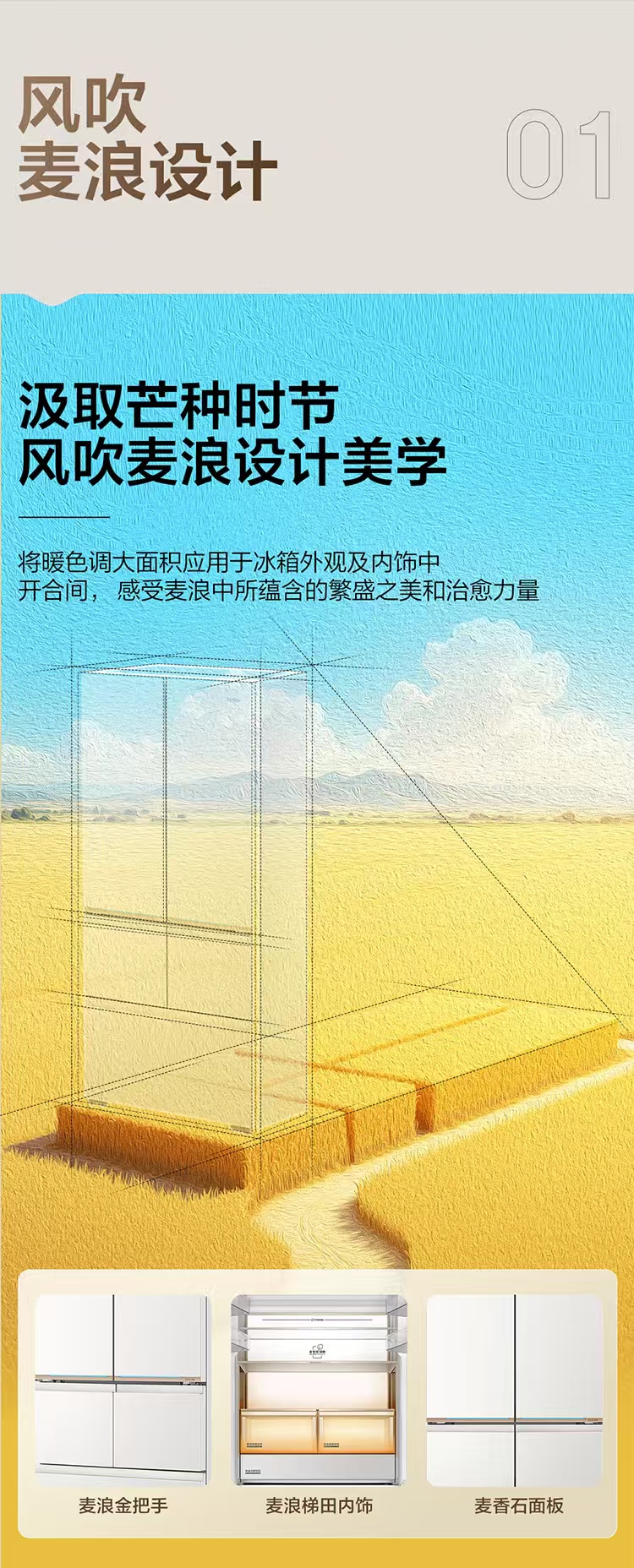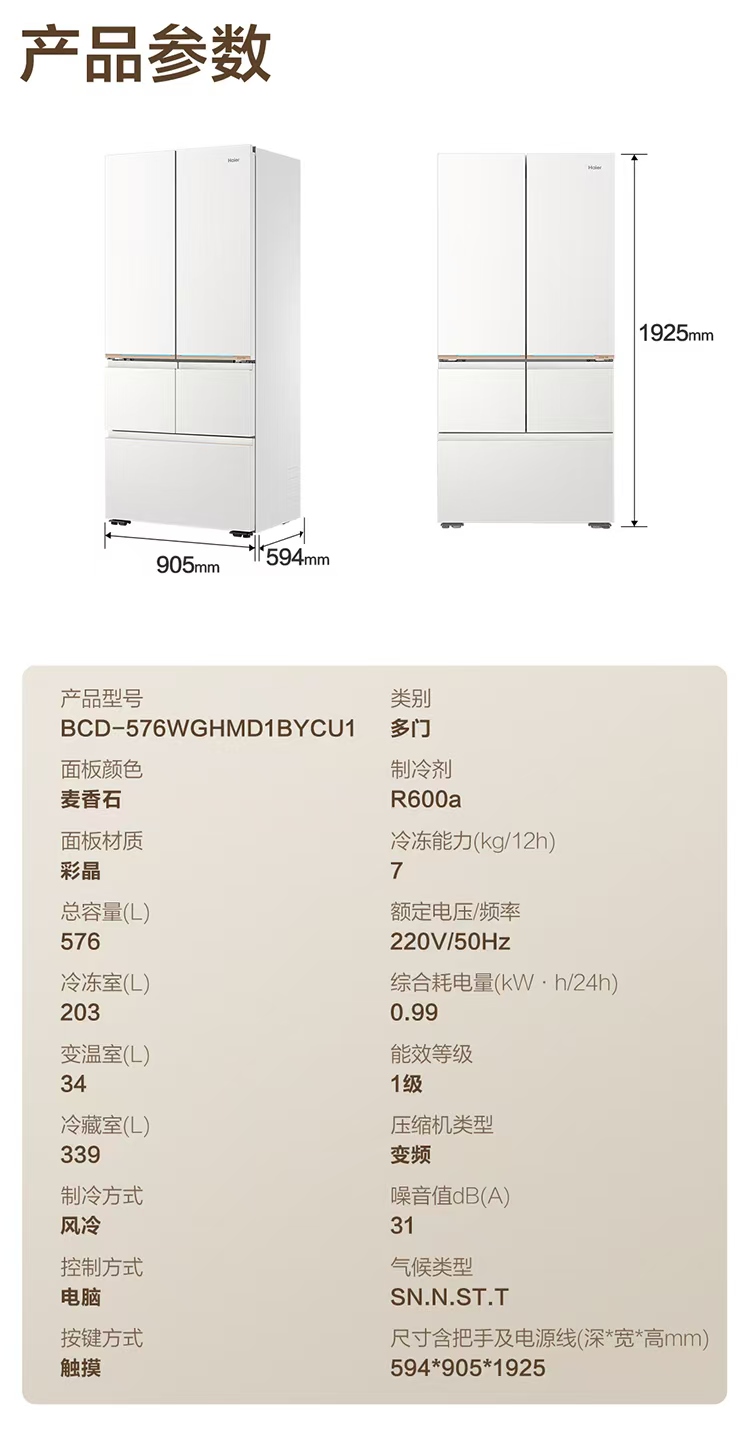 麦浪9系-海尔冰箱576升全空间制冰多门风冷麦香石BCD-576WGHMD1BYCU1