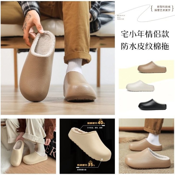 🔥开团开抢!【宅小年情侣款皮纹防水EVA保暖棉拖鞋】谁懂啊!这双“踩屎感”拖孩直接把保暖/防水/颜值焊死了👇