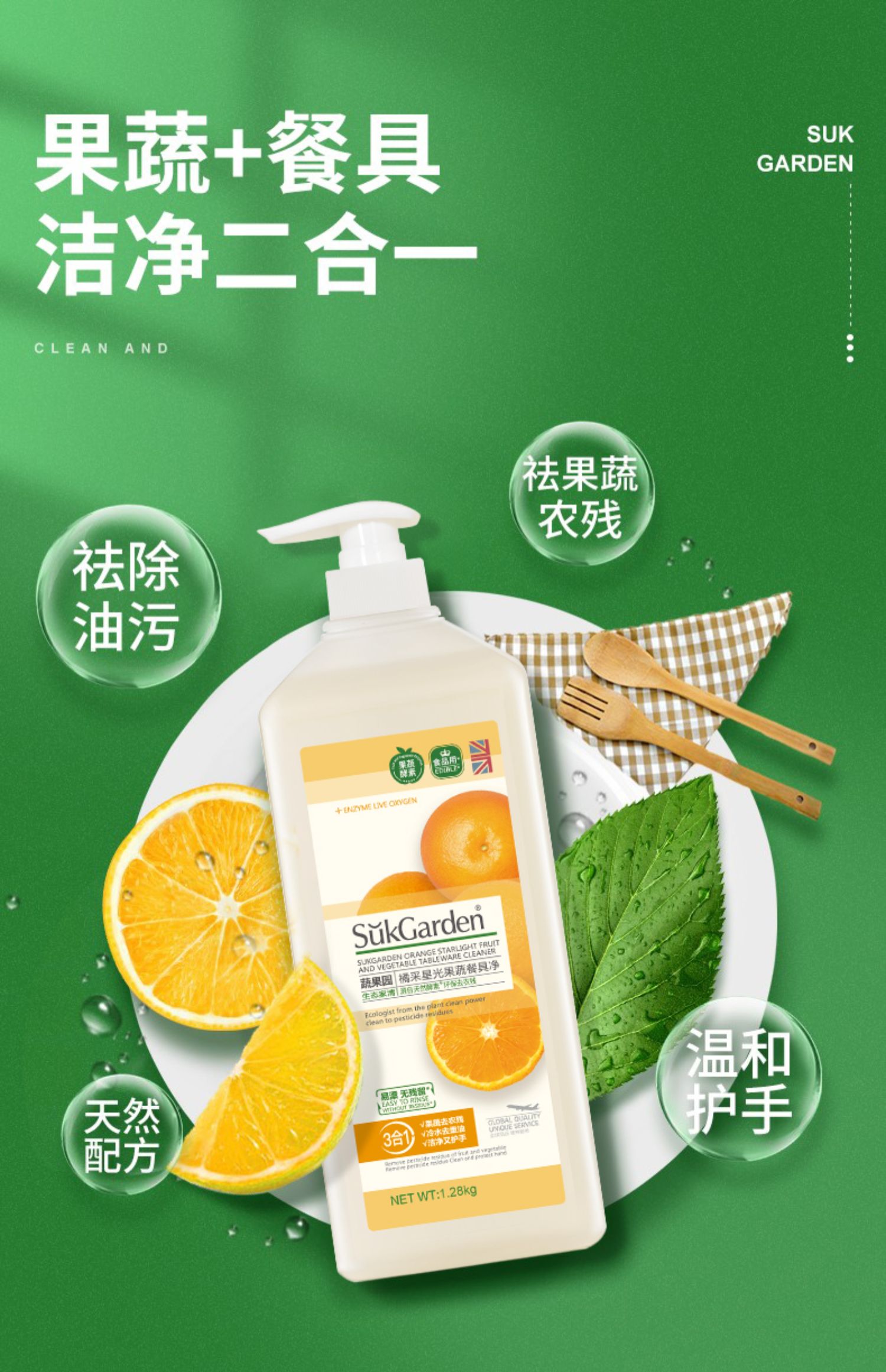 蔬果园橘采星光果蔬餐具净单瓶1.28kg 洗洁精