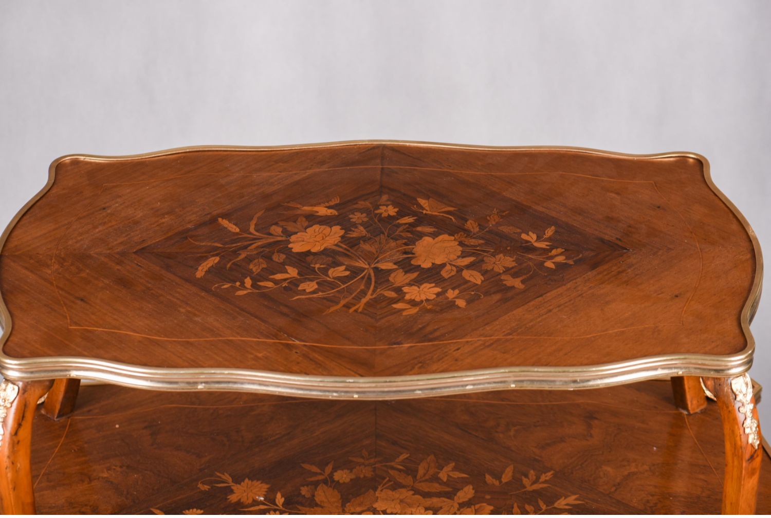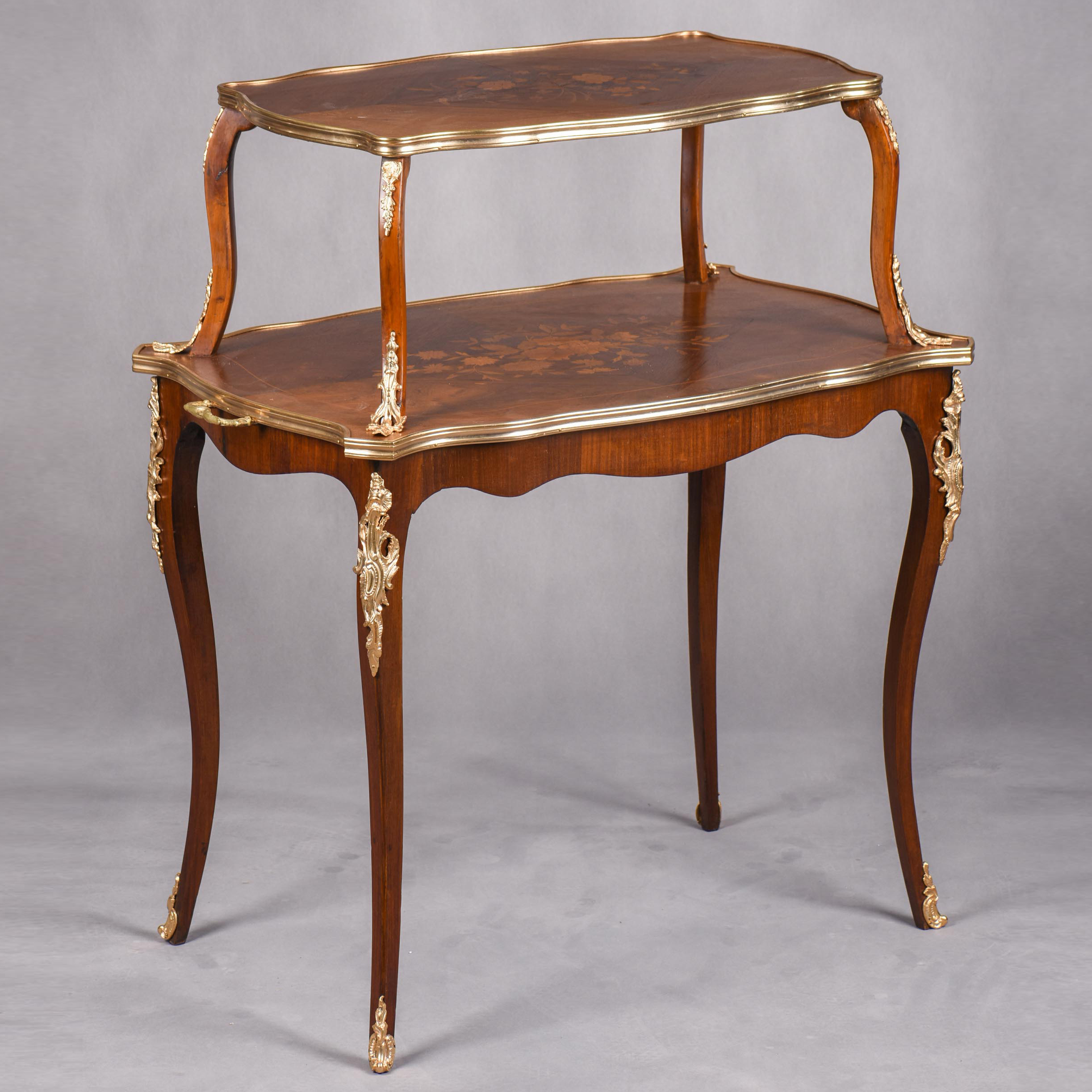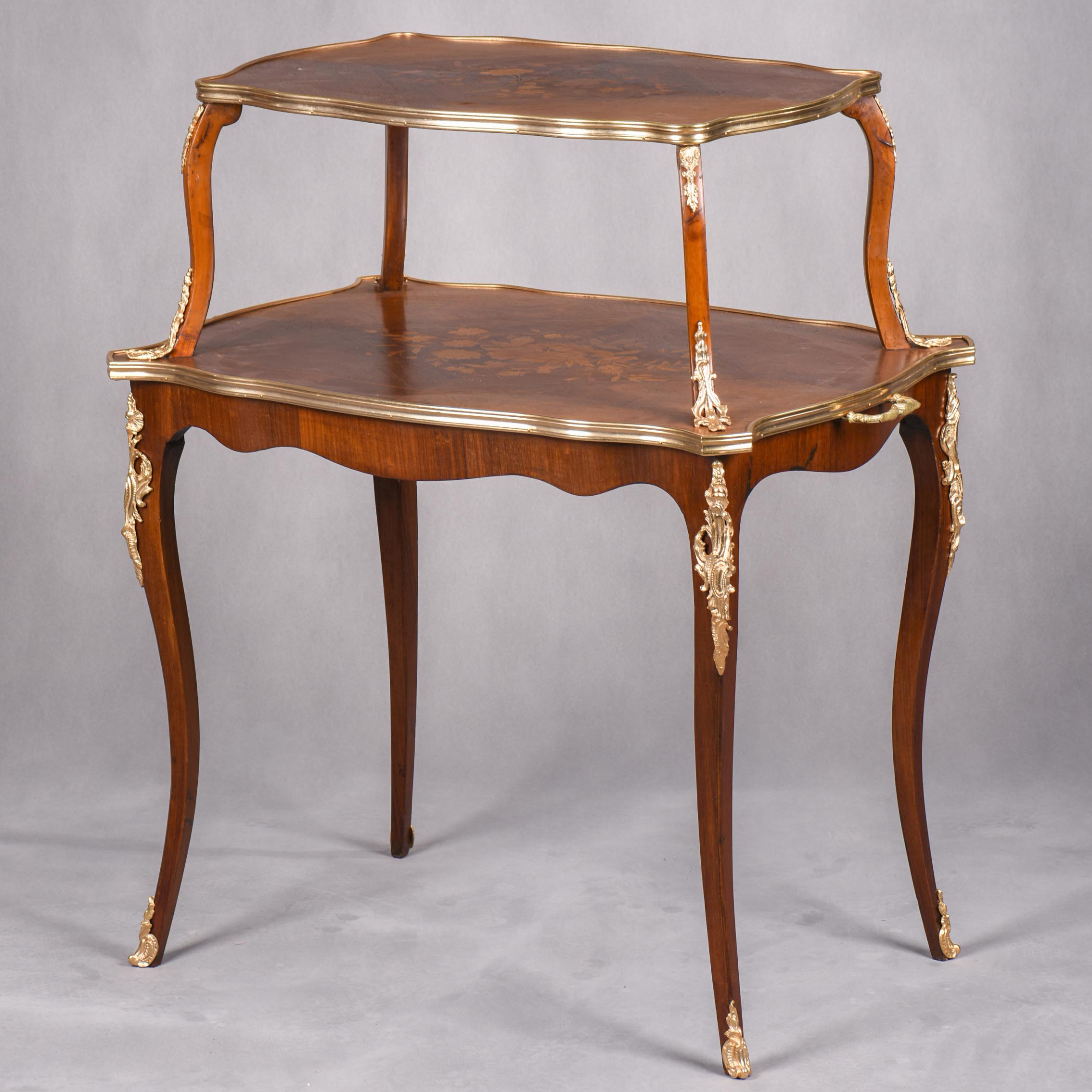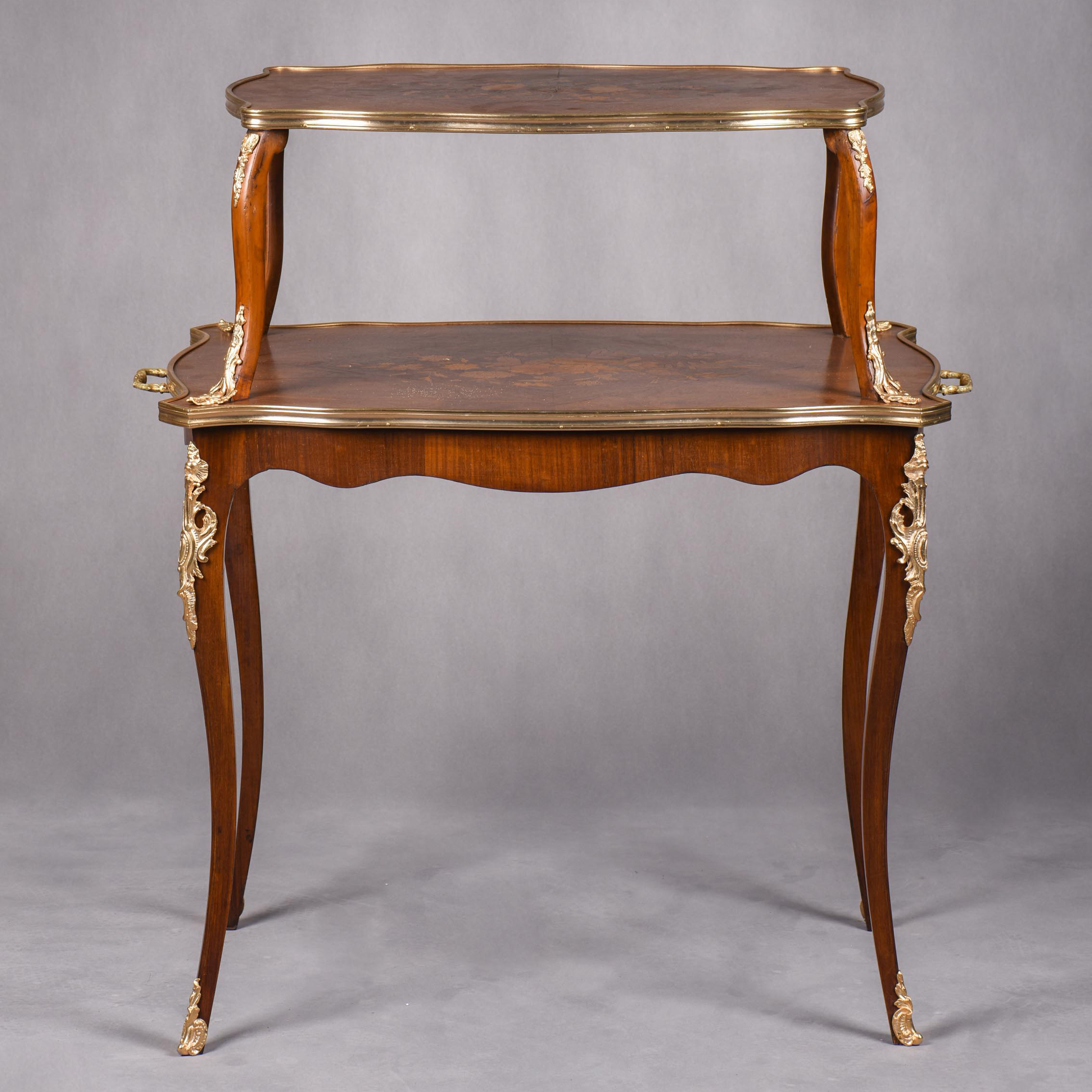 国内现货独角鹿西洋古董家具法国铜鎏金饰细木镶嵌双层茶桌茶台