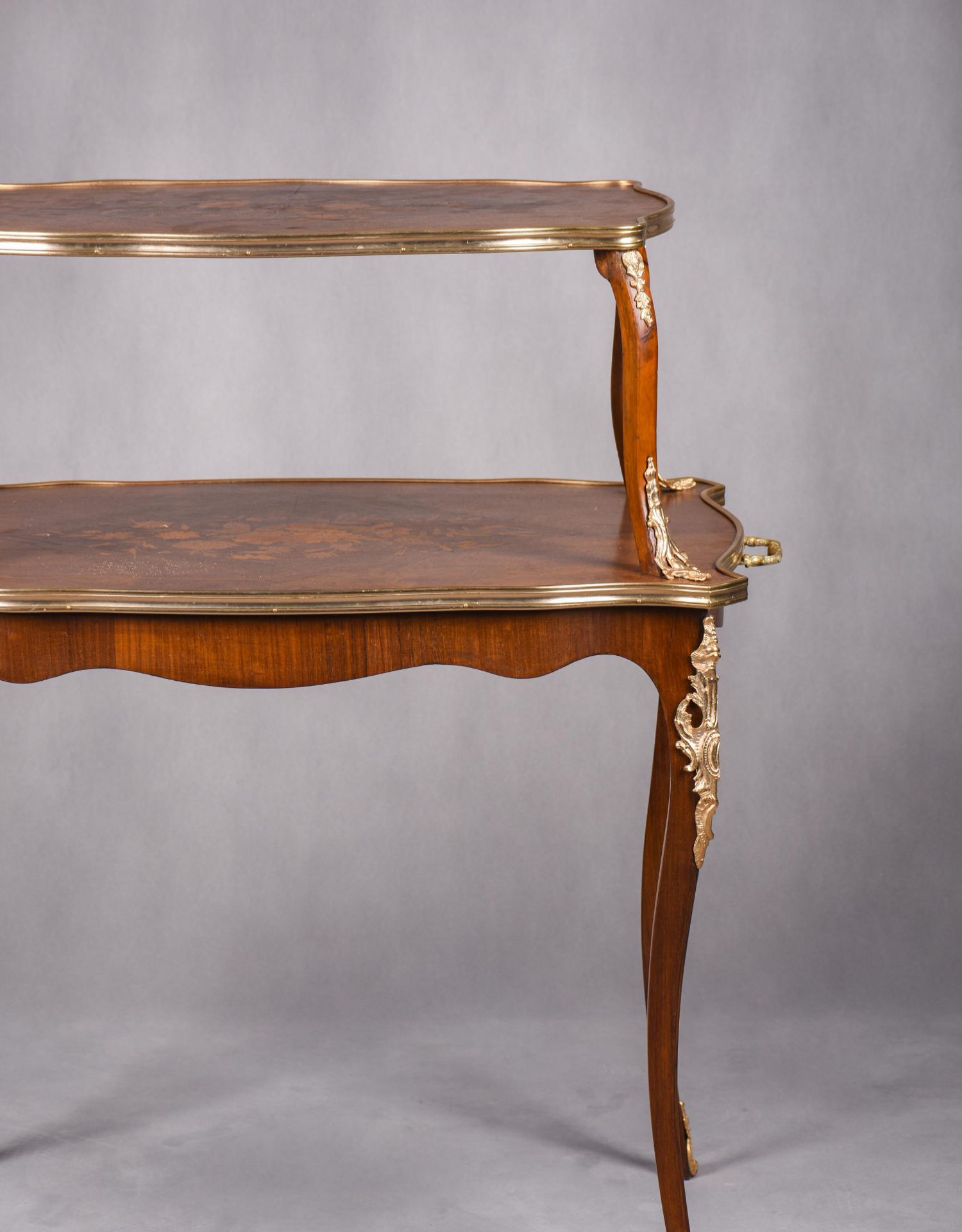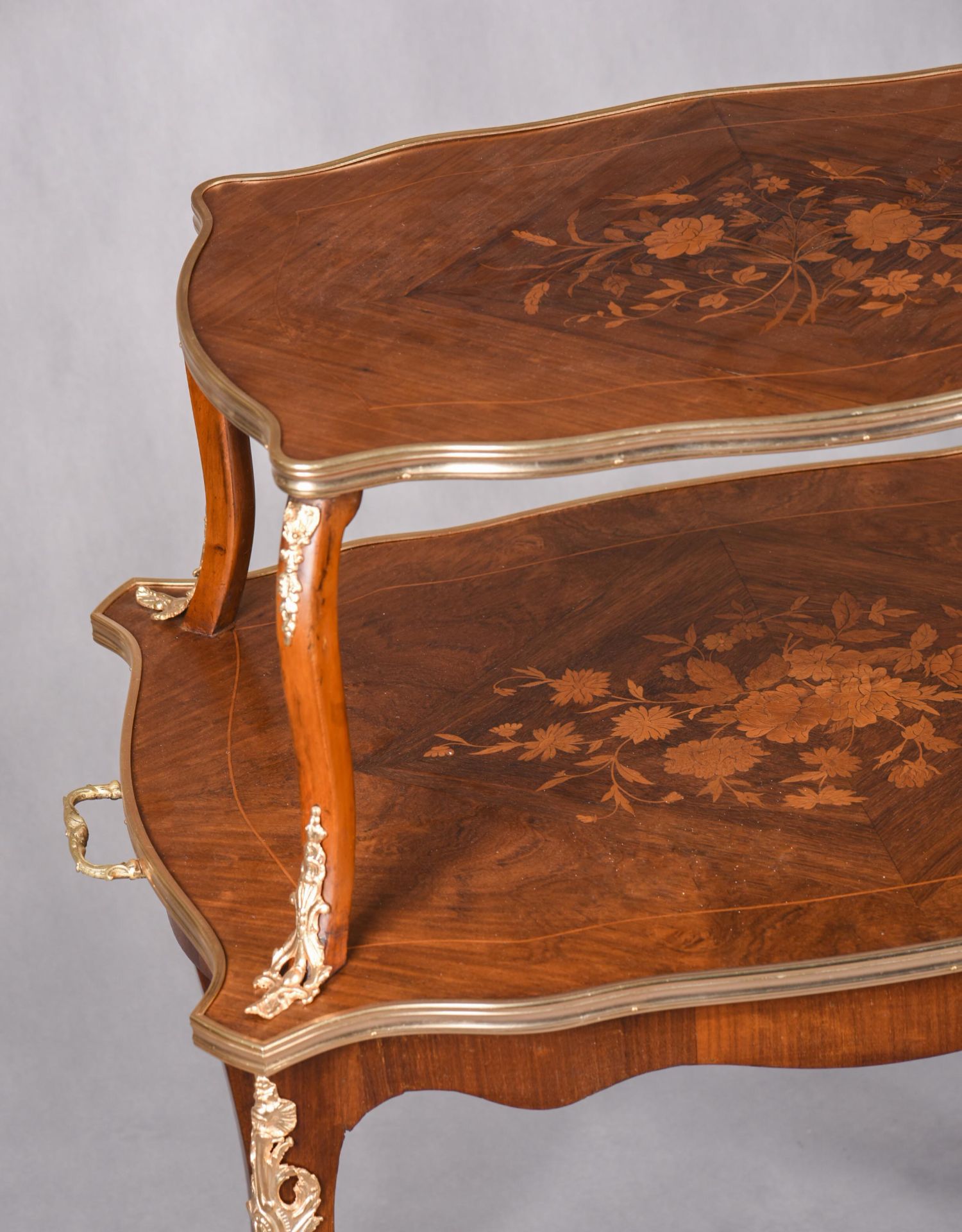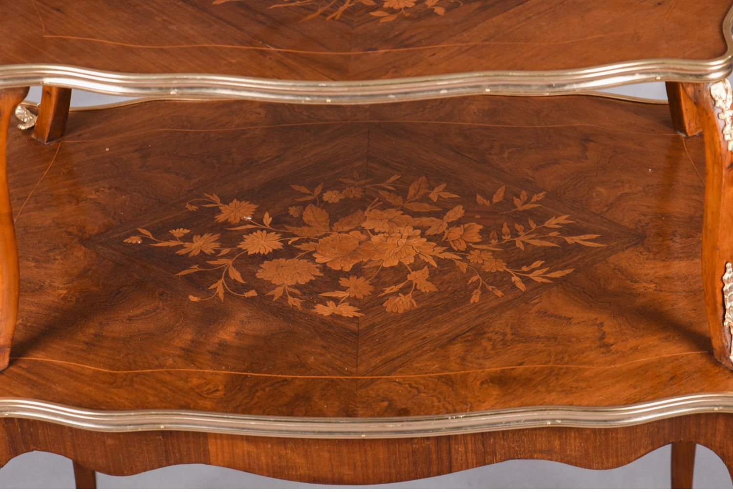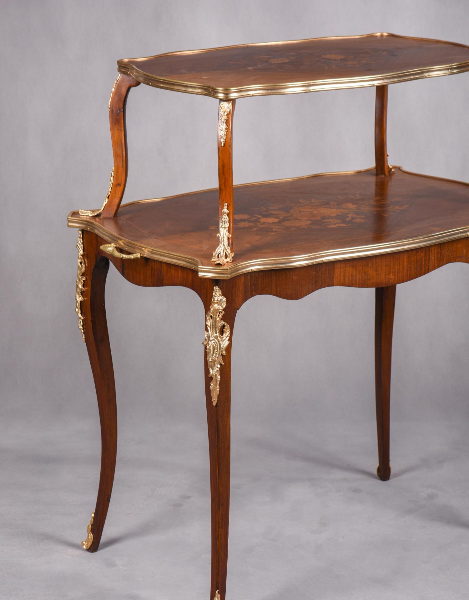 国内现货独角鹿西洋古董家具法国铜鎏金饰细木镶嵌双层茶桌茶台