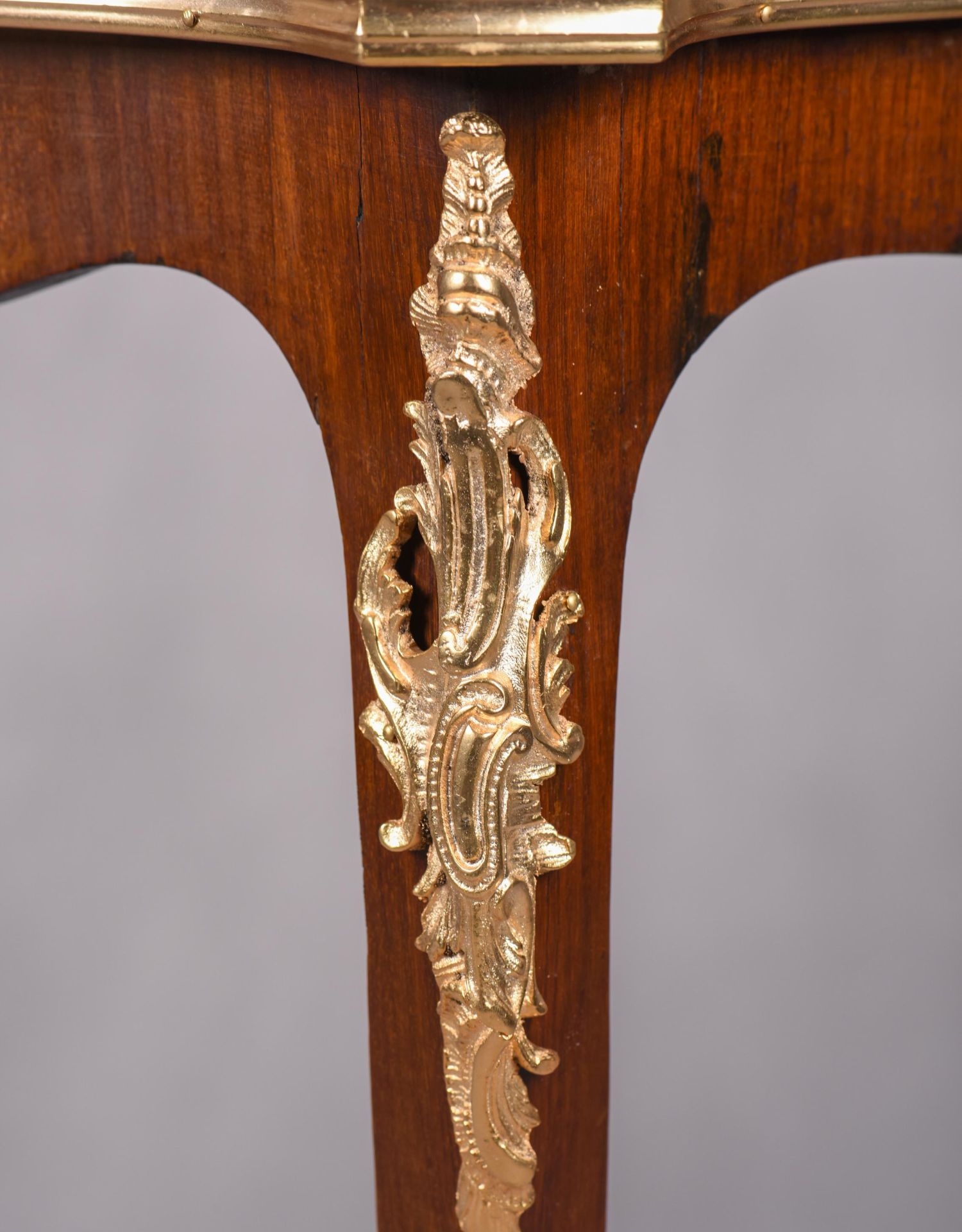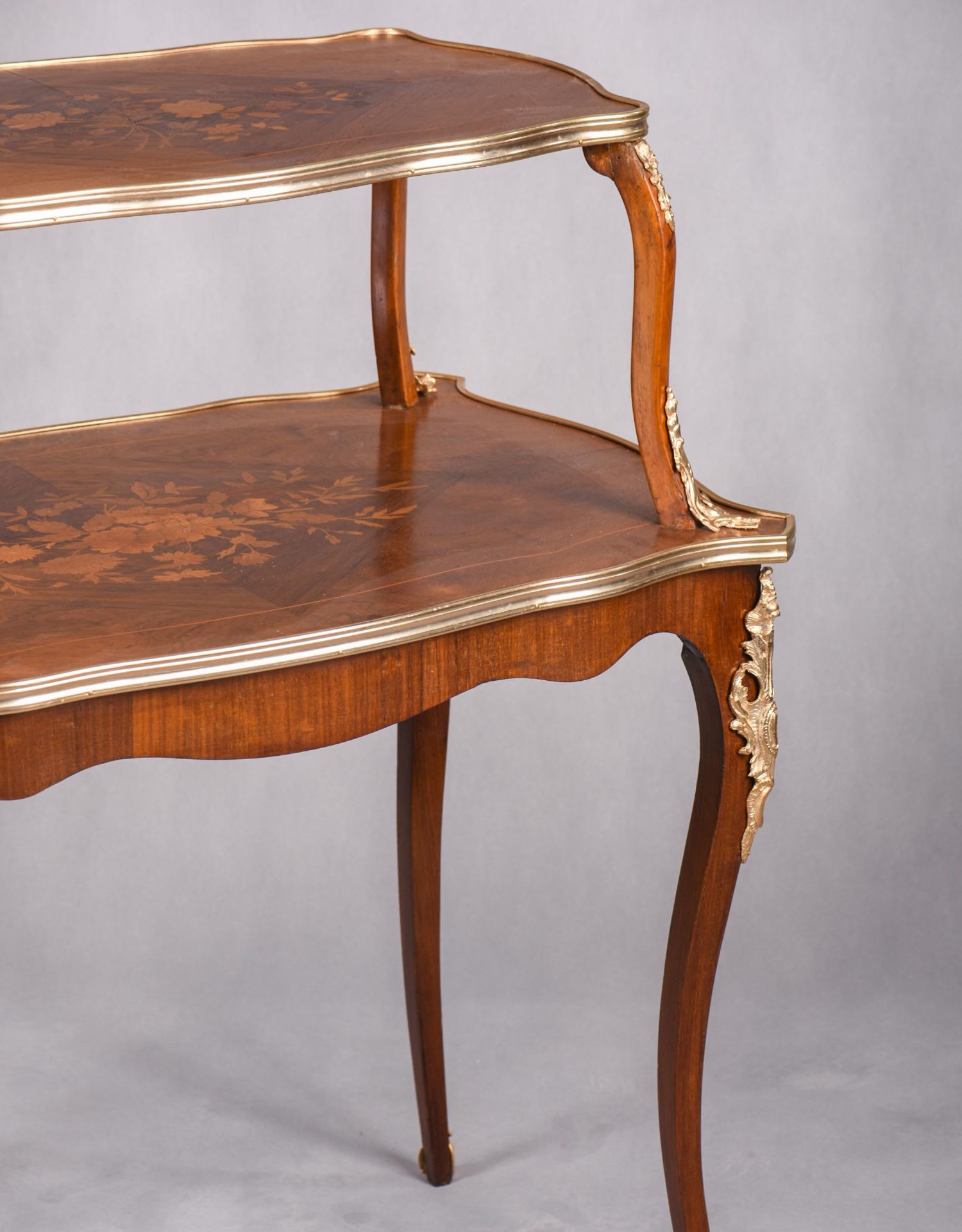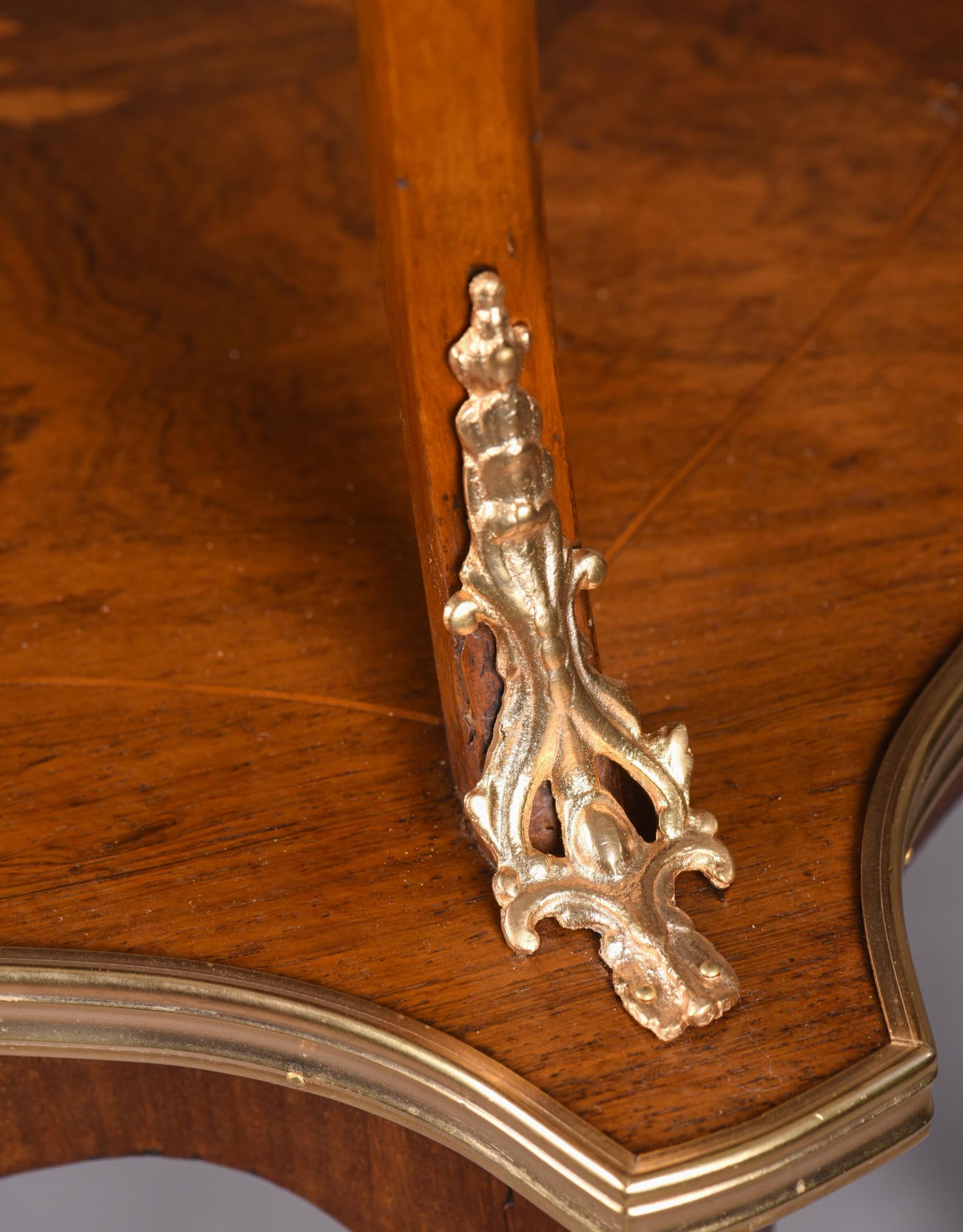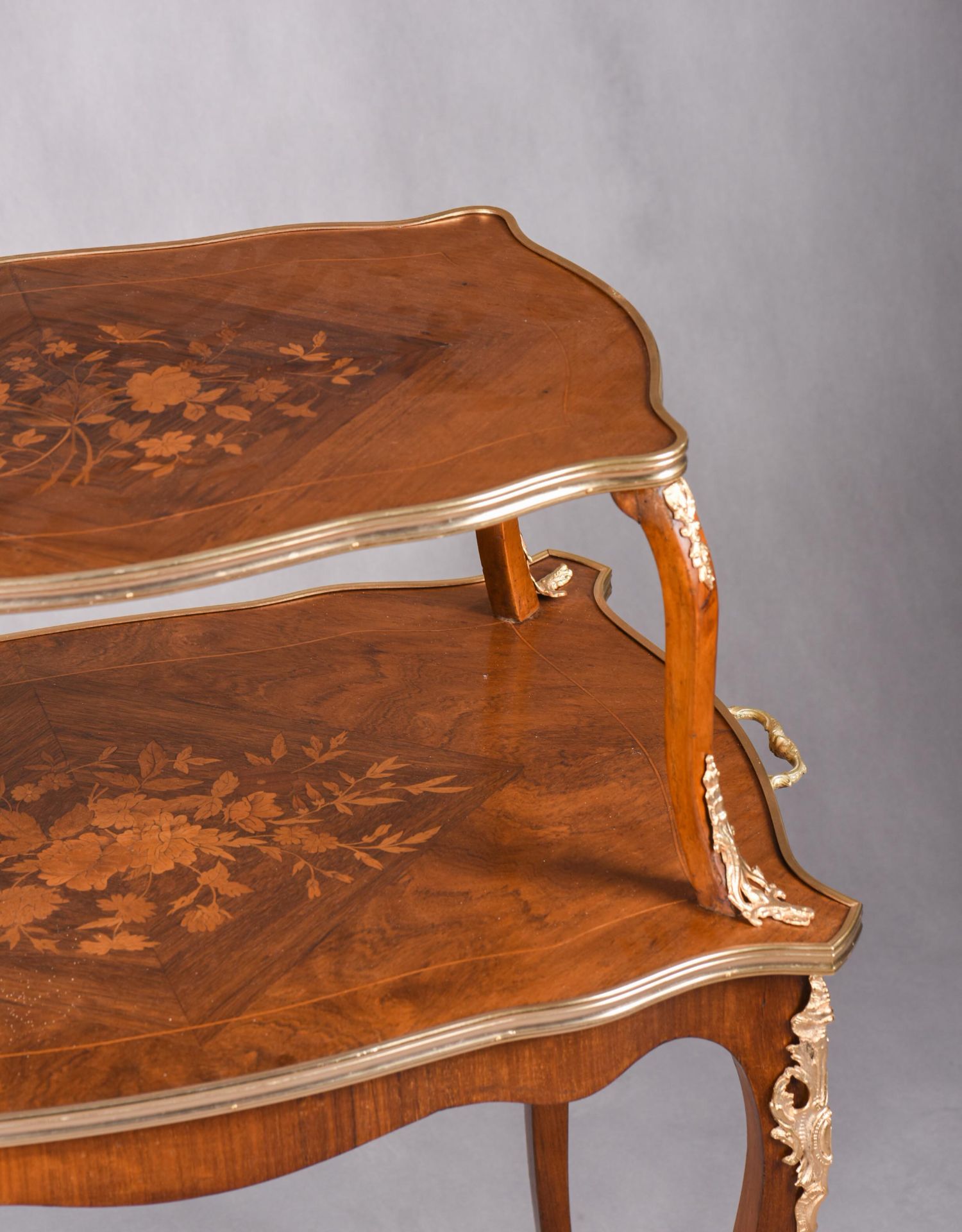 国内现货独角鹿西洋古董家具法国铜鎏金饰细木镶嵌双层茶桌茶台