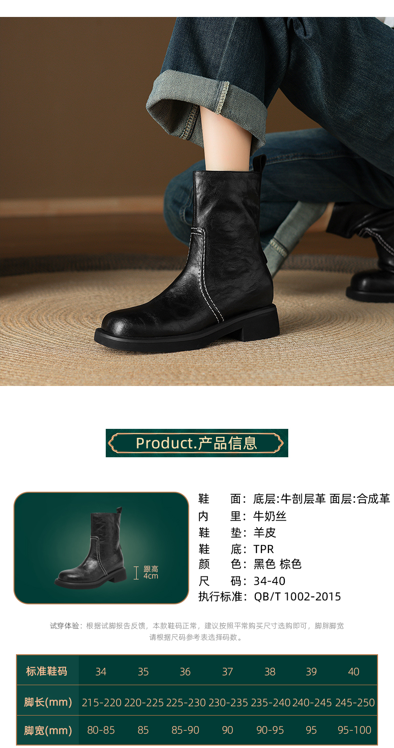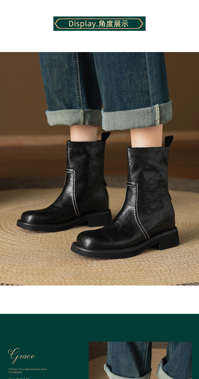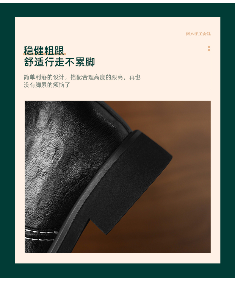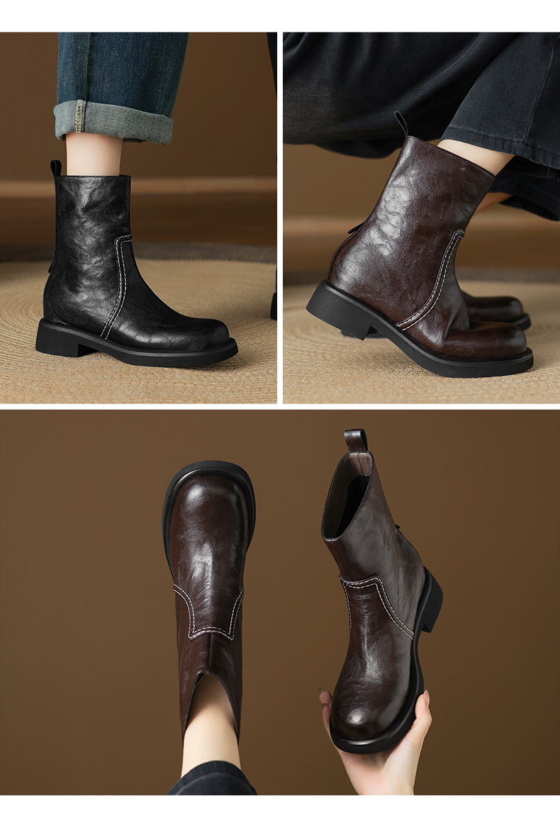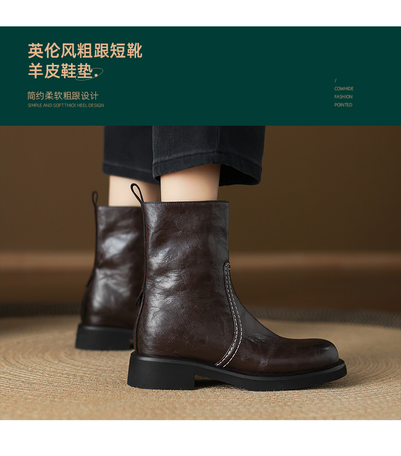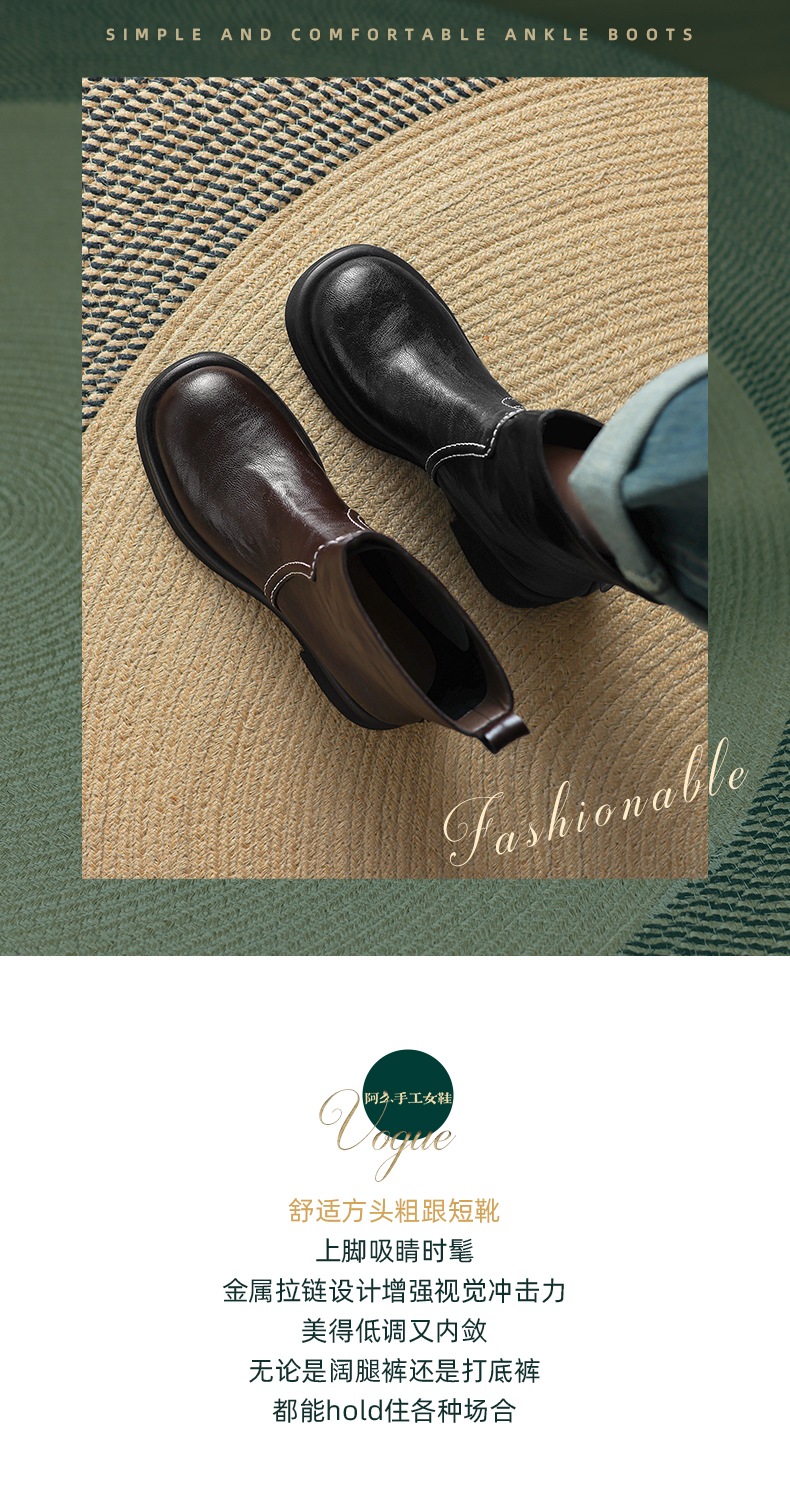 阿么手工女鞋2025秋冬新款复古大头真皮短靴英伦风百搭时装靴4CM