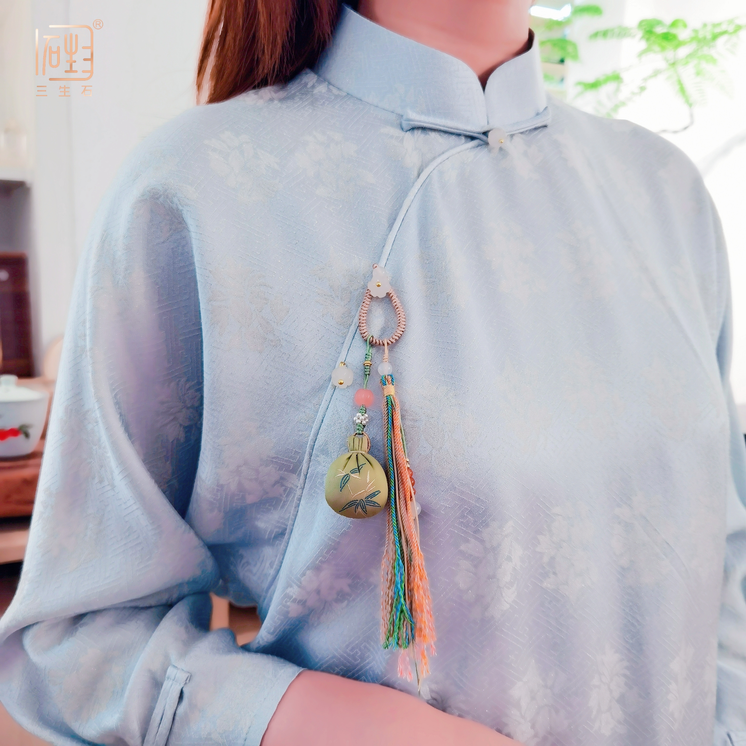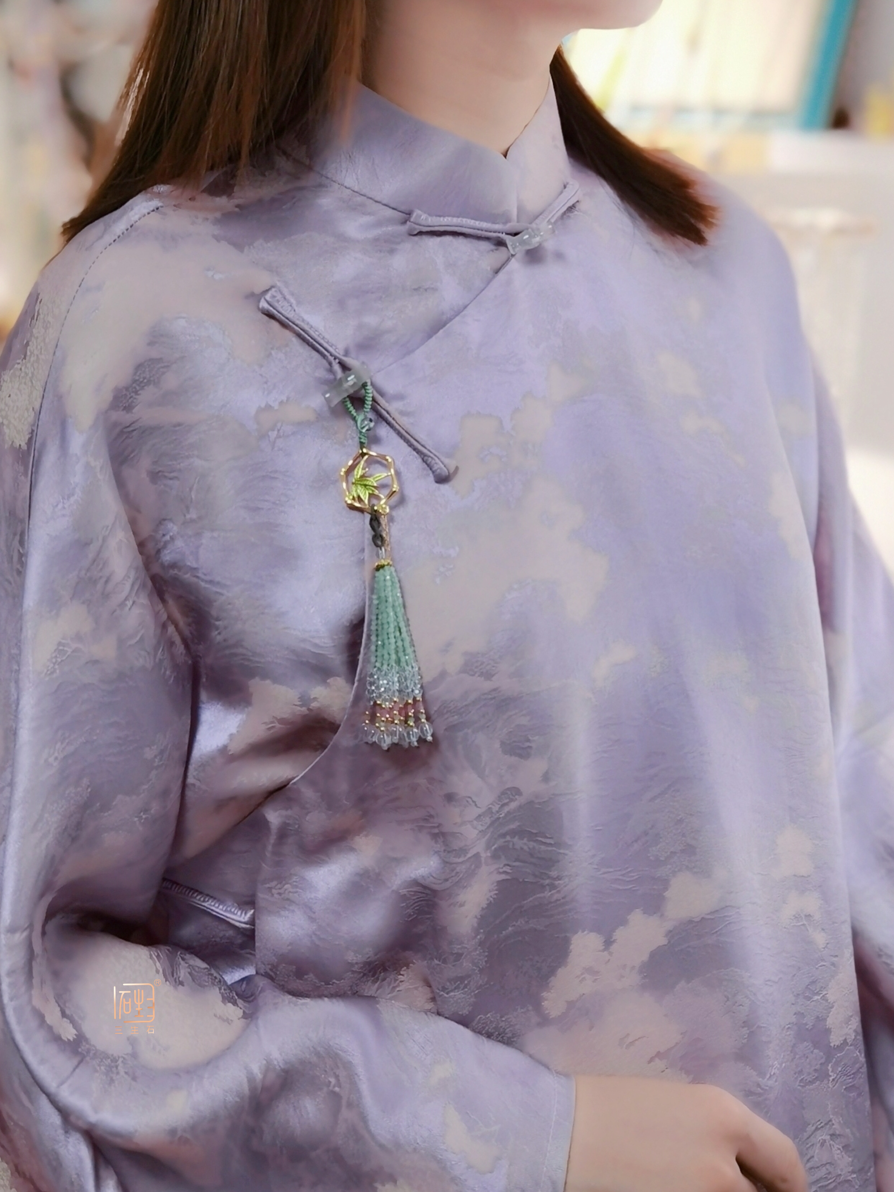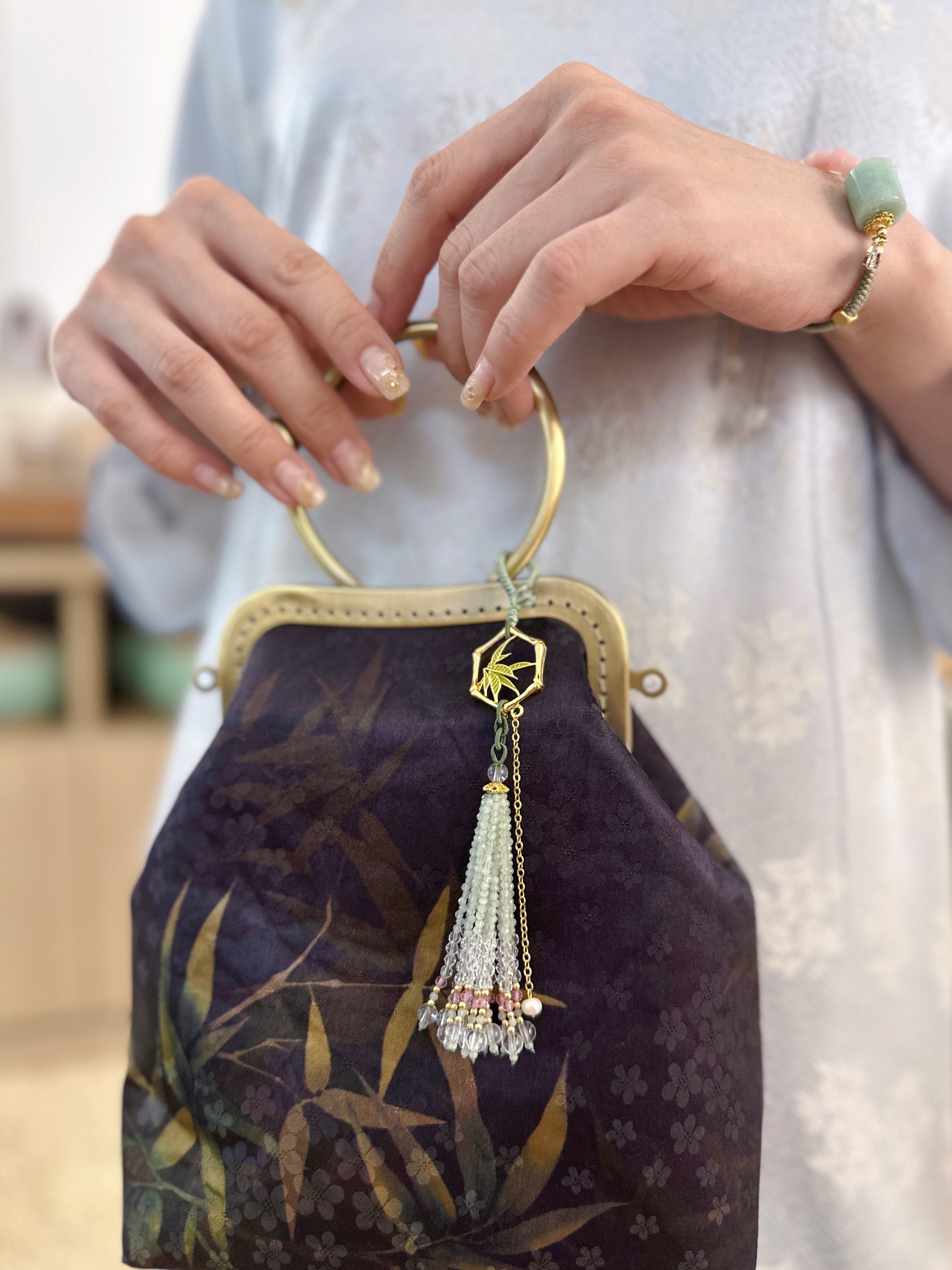 搭配天然晶石串成的流苏,可做包挂、国风压襟…