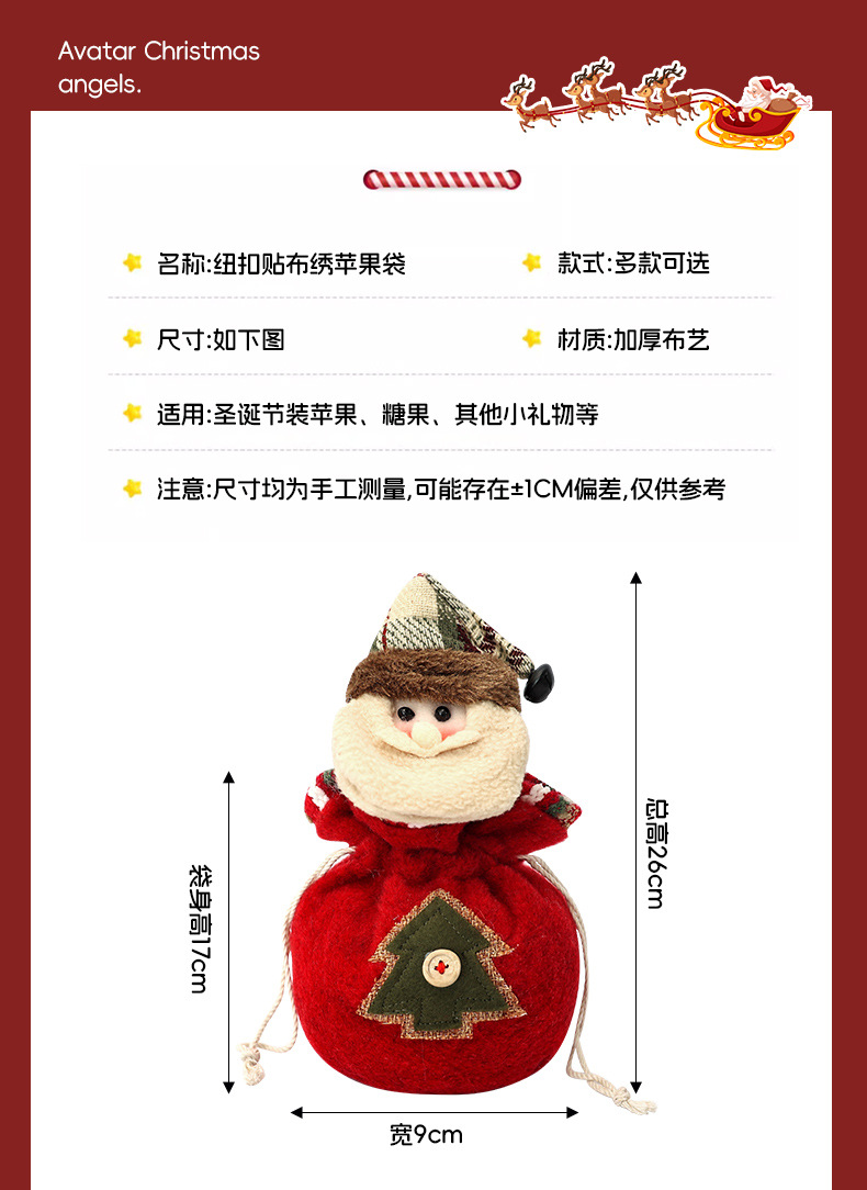【YW】无忧购“礼物季”29元2件新款圣诞节礼物袋装饰平安夜送礼苹果袋子礼品袋糖果袋SDPGD050(截单后3-5天发货)