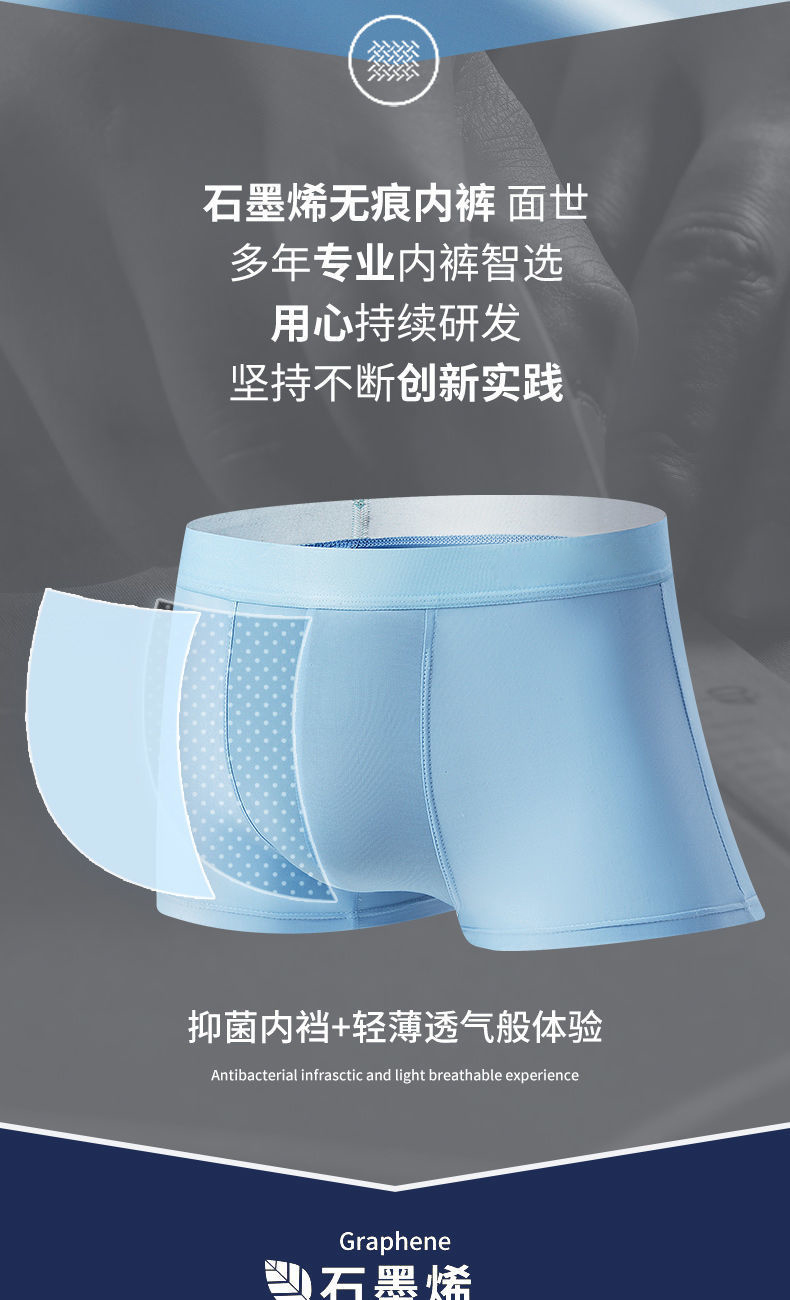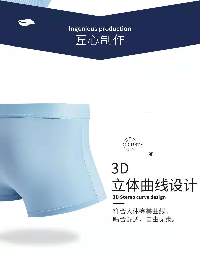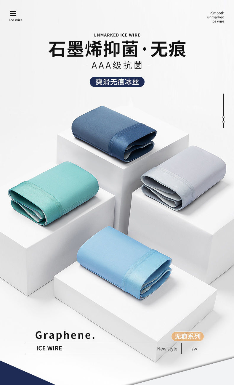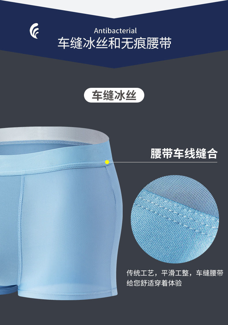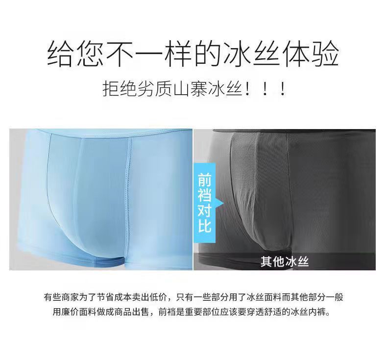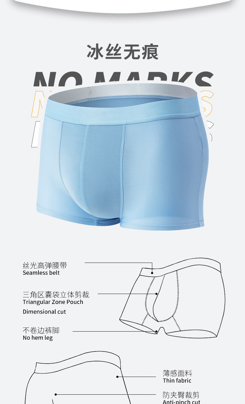 【4条装—冰丝男士平角内裤裤】冰丝男士内裤、无痕薄款透气、平角四角内裤
