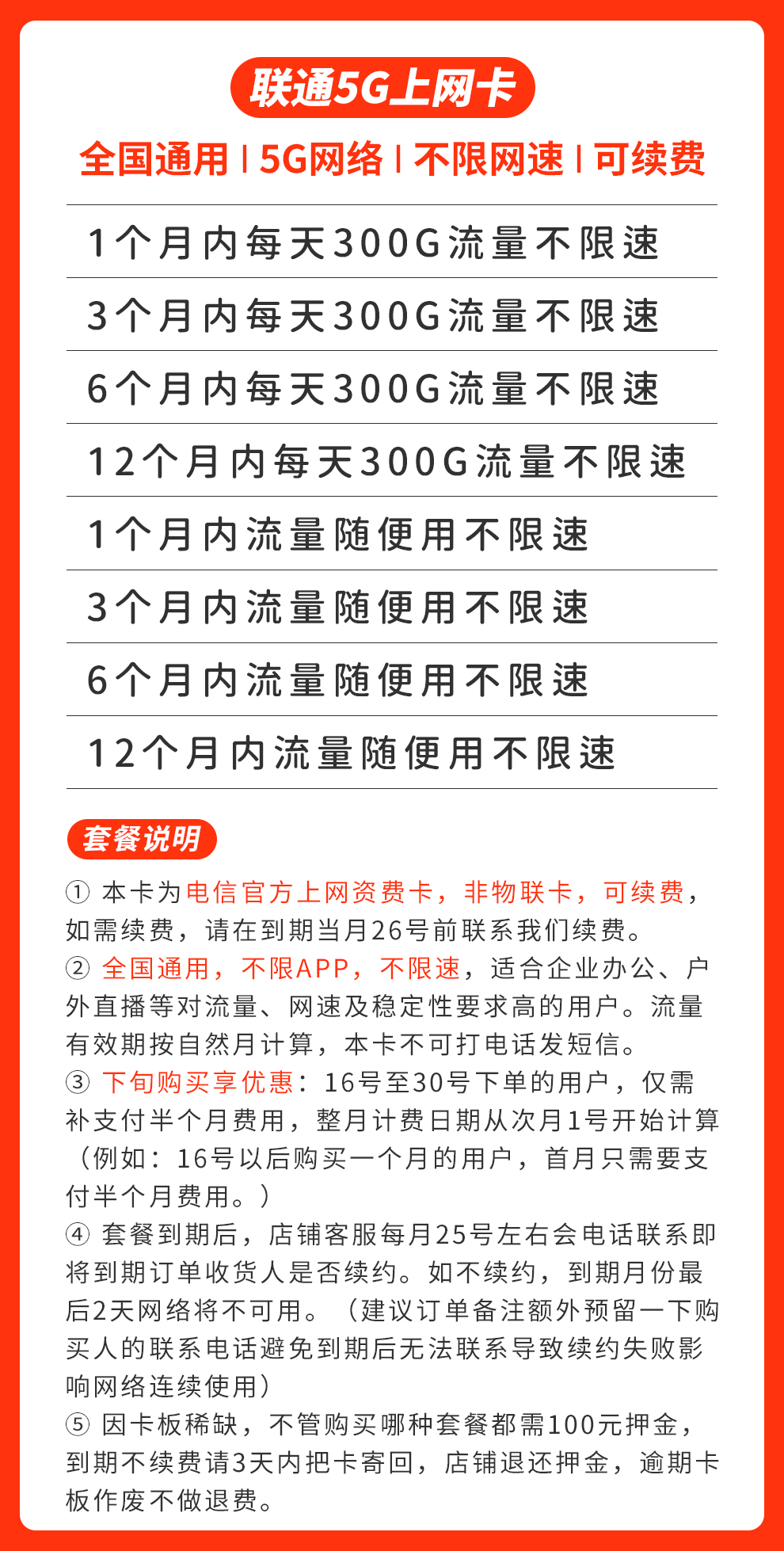 【不能手机使用/设备通用】联通5G神州卡(真5G纯流量卡)