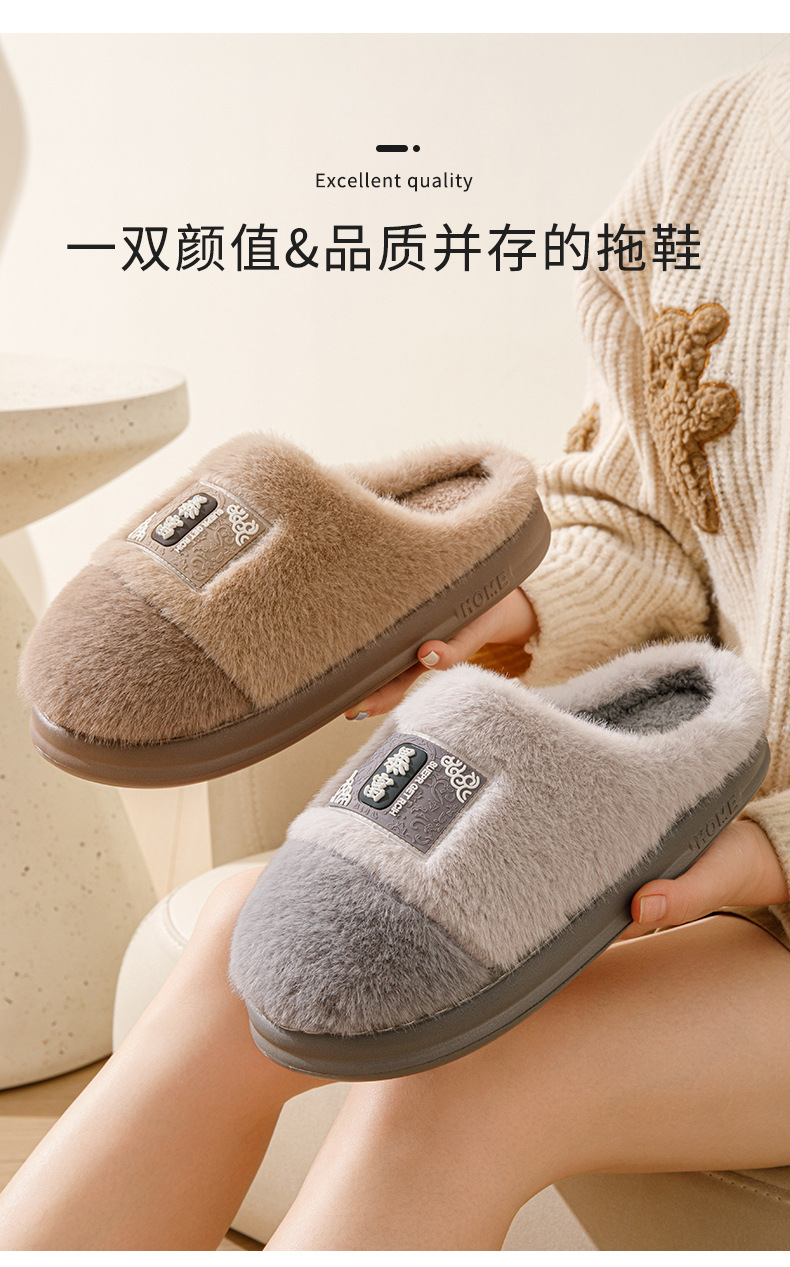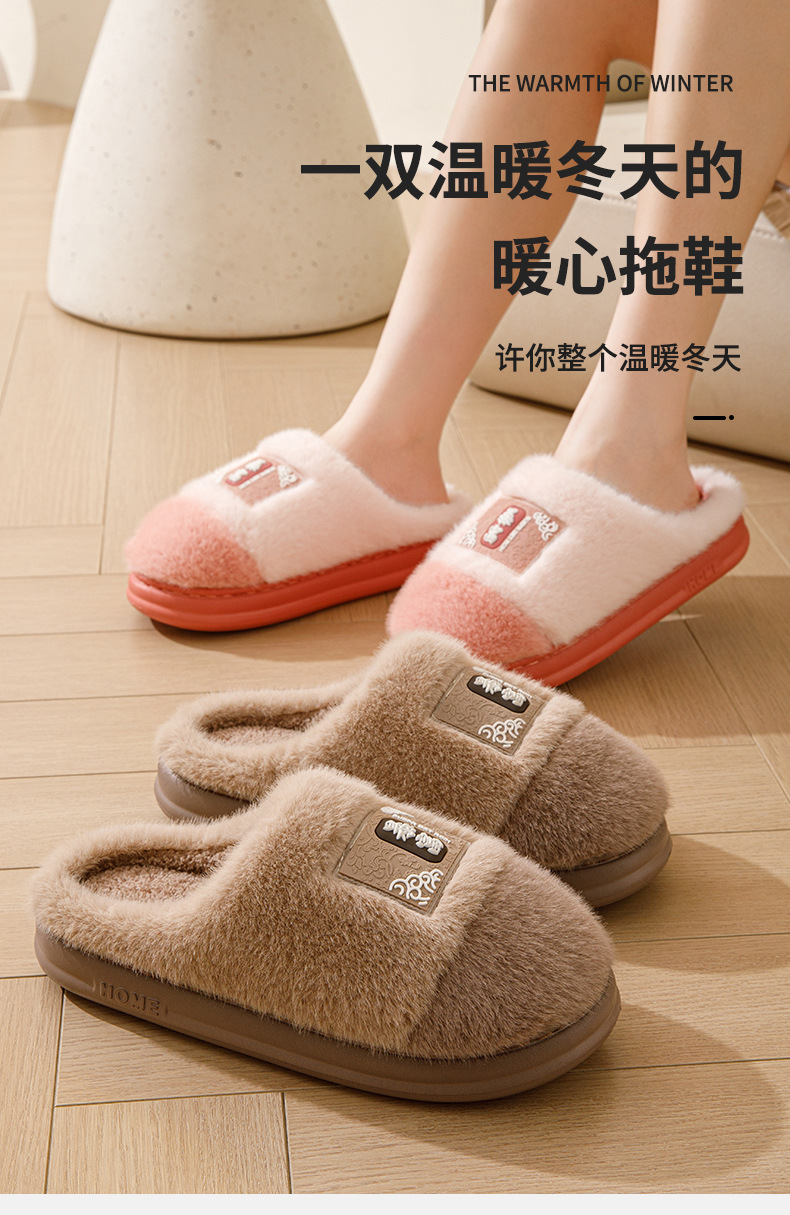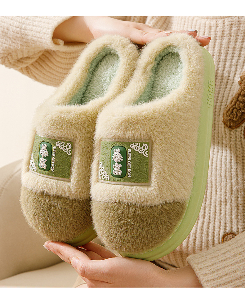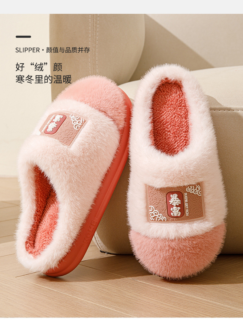 「“暴富”款!五色可选」冬季棉拖鞋 女家居防滑耐磨舒适毛绒保暖月子厚底室内情侣软棉拖男居家布艺