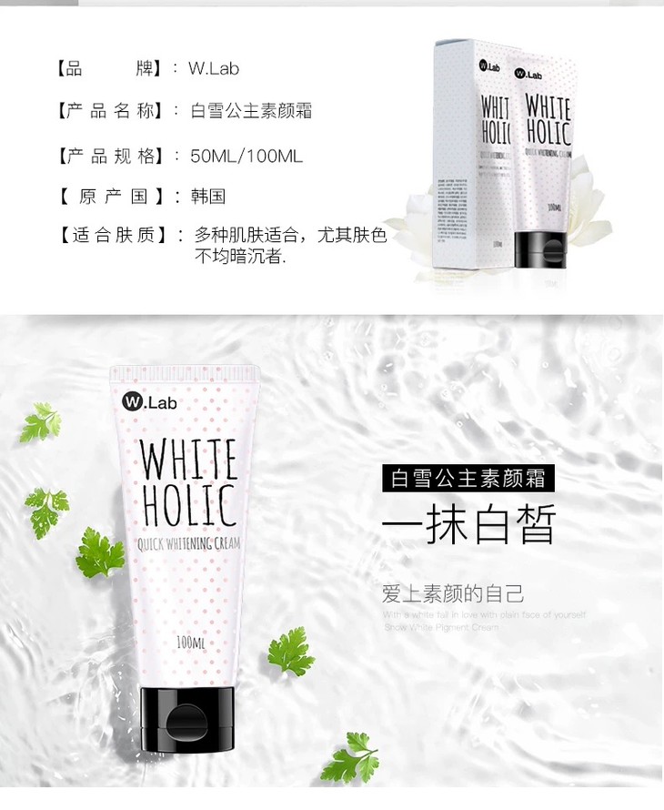 【美白素颜】1秒速白懒人必备!韩国W.Lab打底美白白雪公主素颜霜50ml/100ml可选-泓新仓发货
