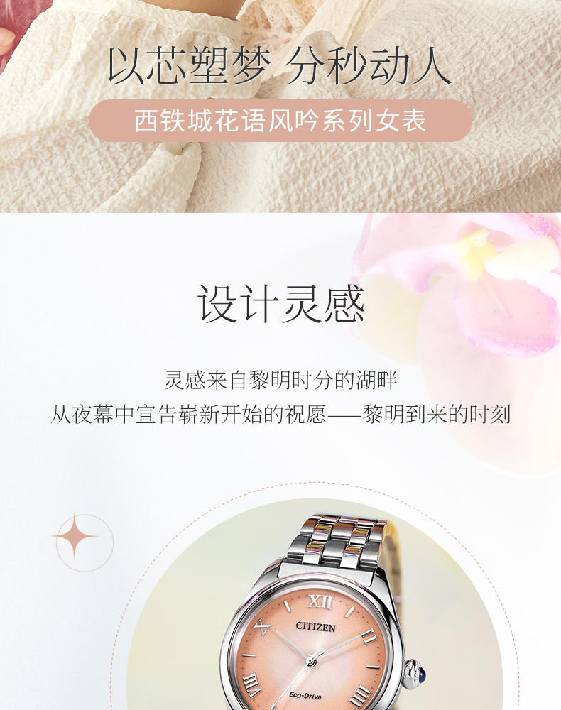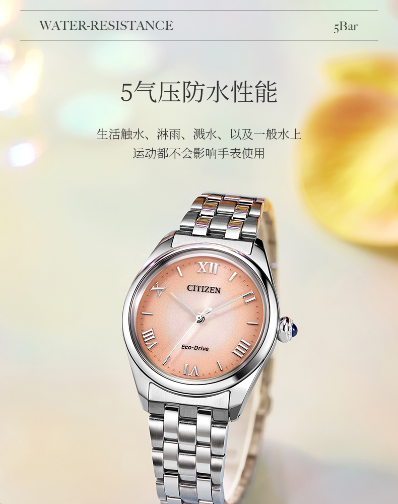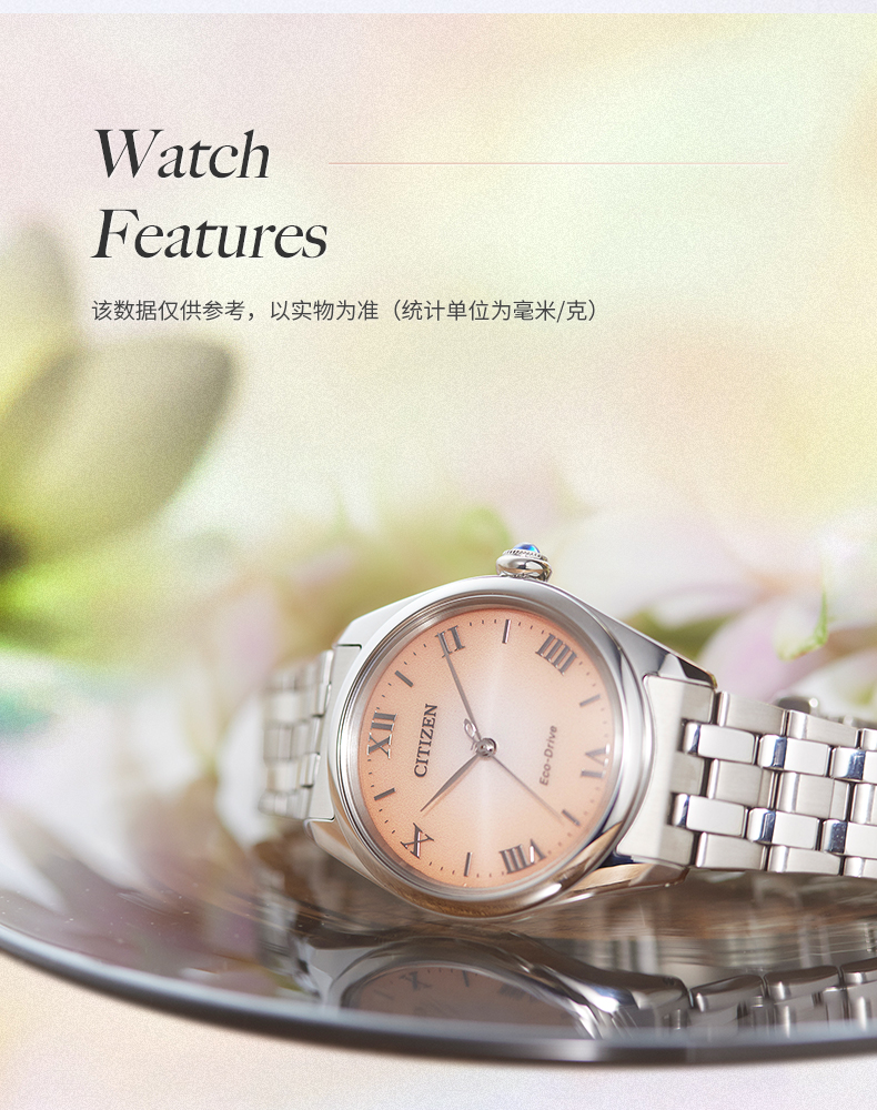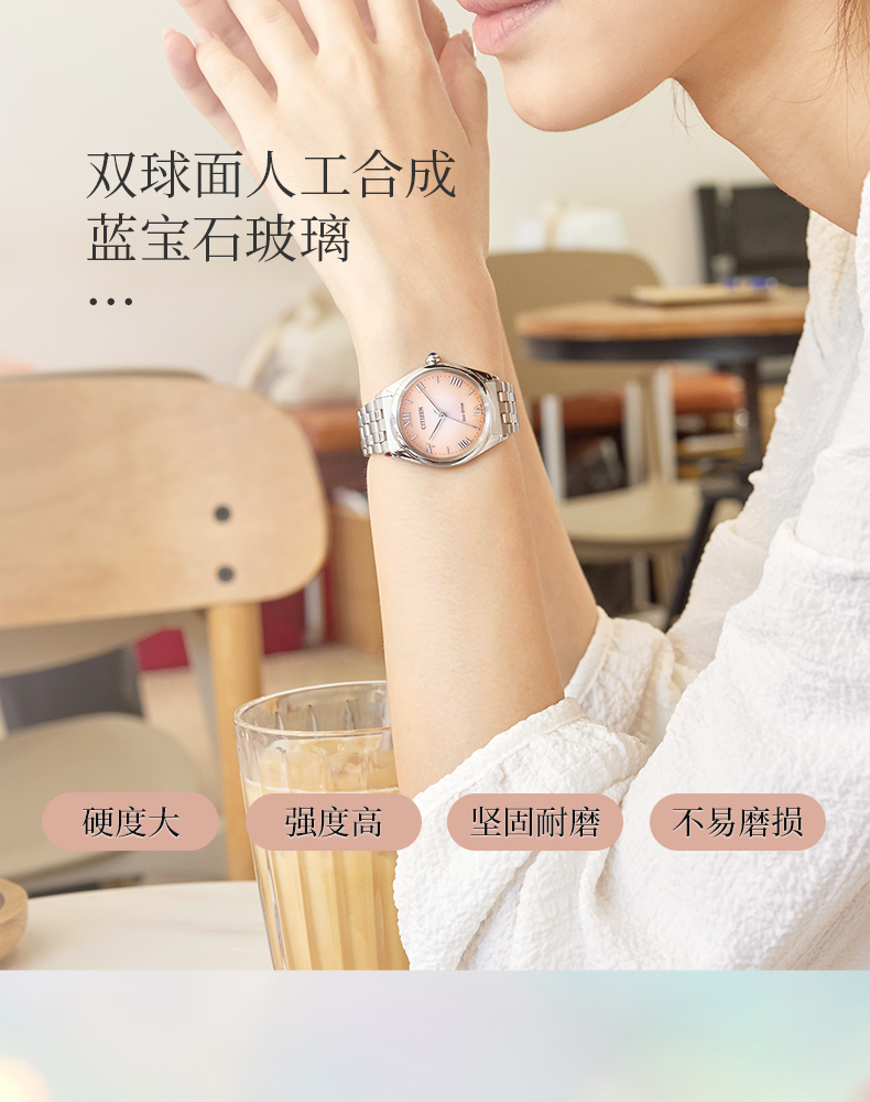 西铁城/CITIZEN光动能表盘时尚钢带女士手表EM1140-80X