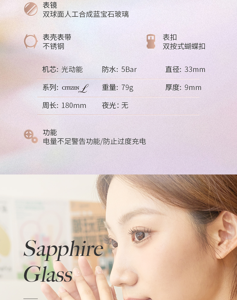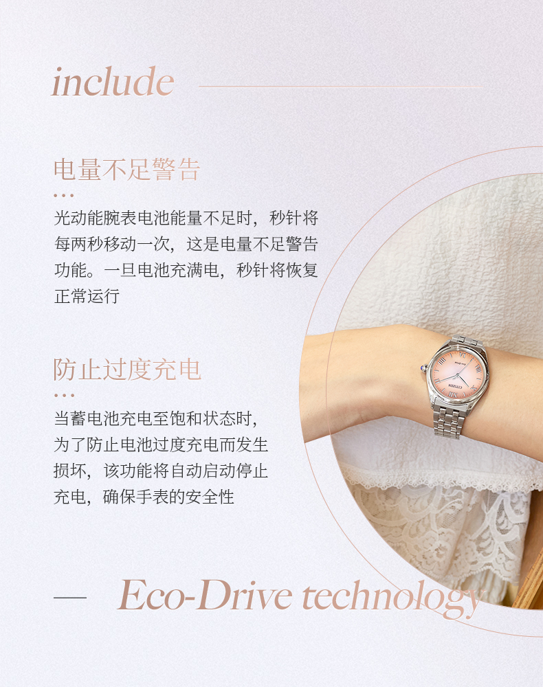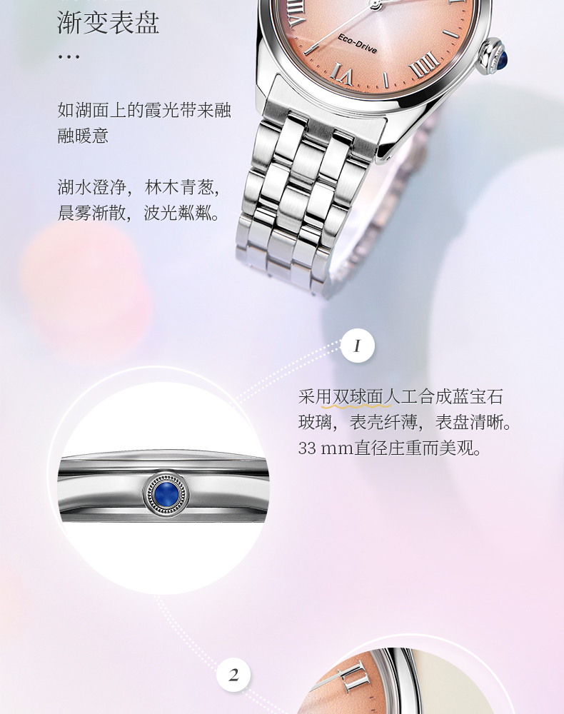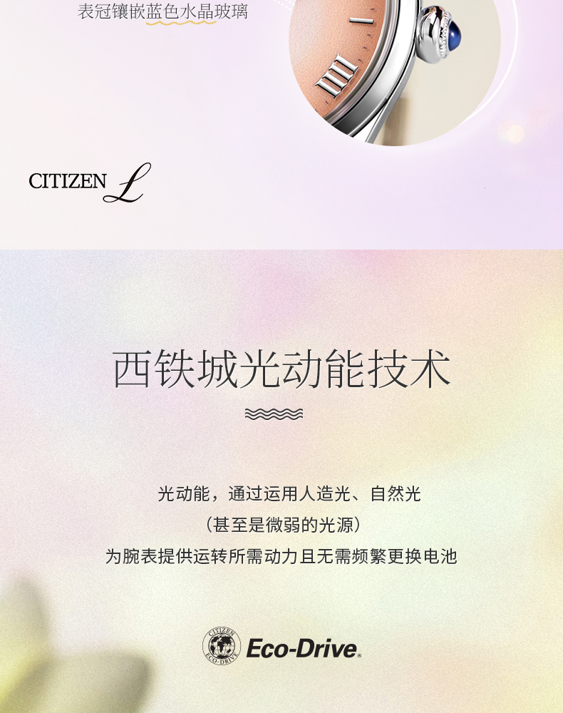 西铁城/CITIZEN光动能表盘时尚钢带女士手表EM1140-80X