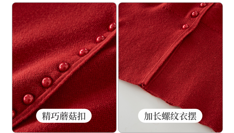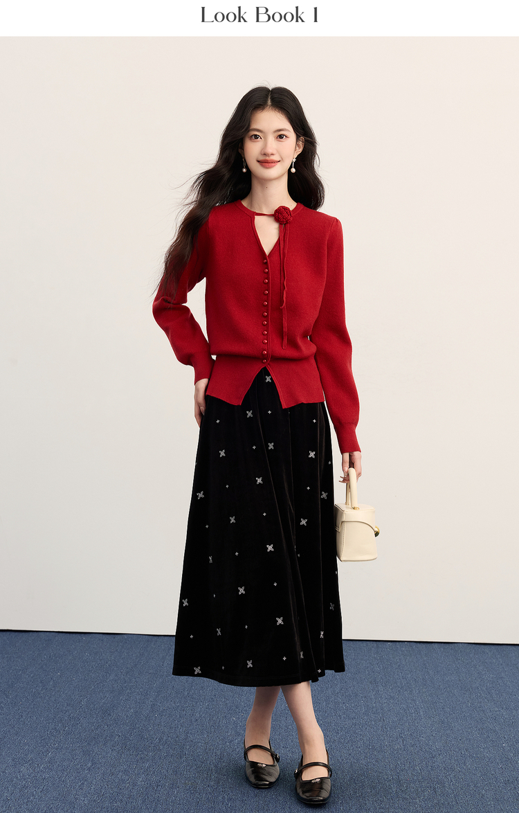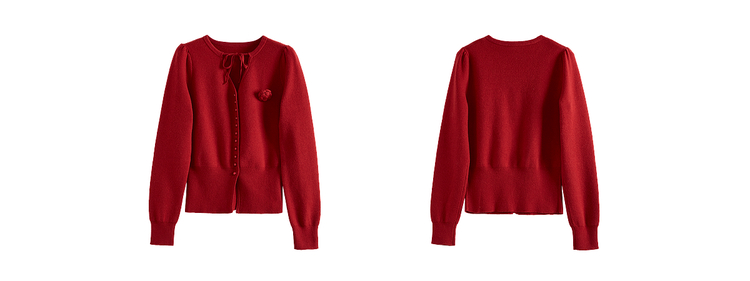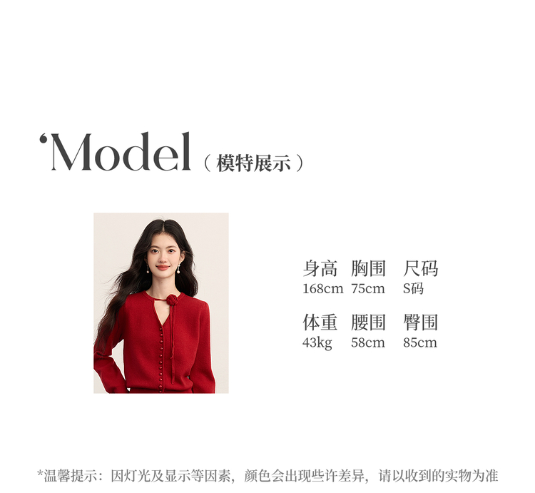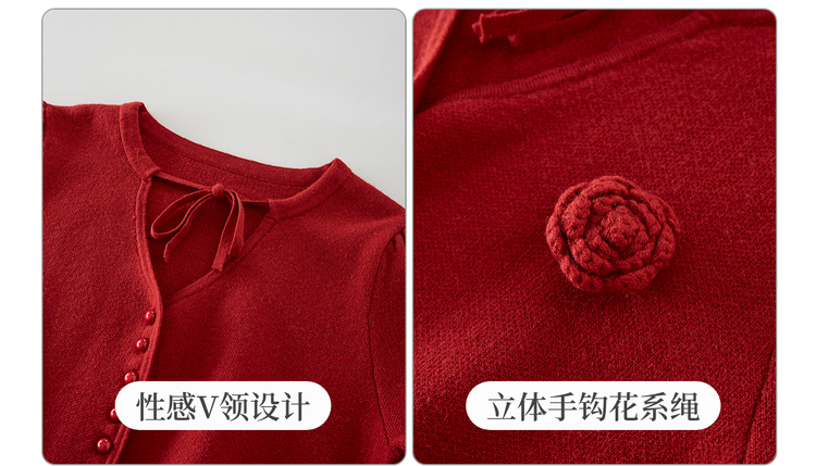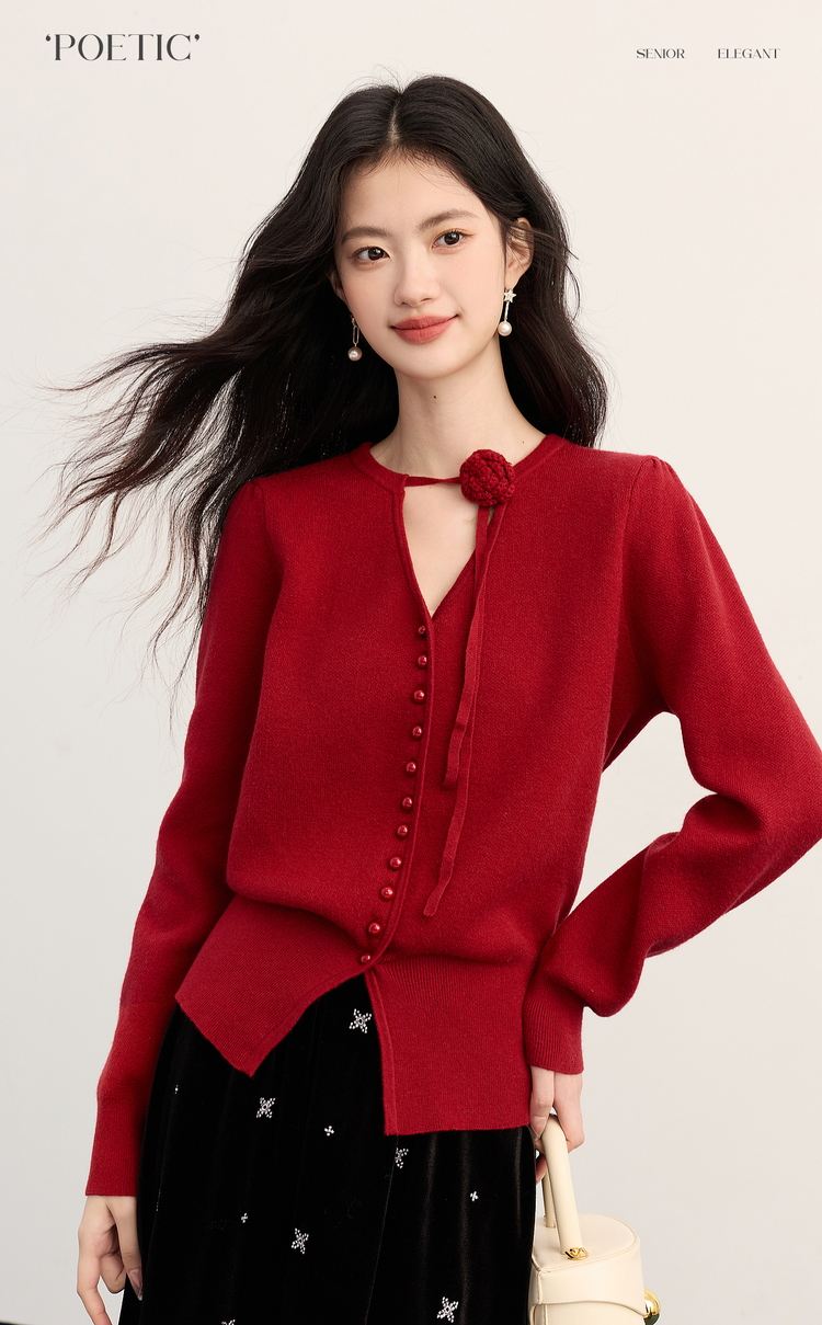 【11/19新品】熙世界氛围感立体花朵系带红色毛衣开衫女秋冬独特别致羊毛针织衫