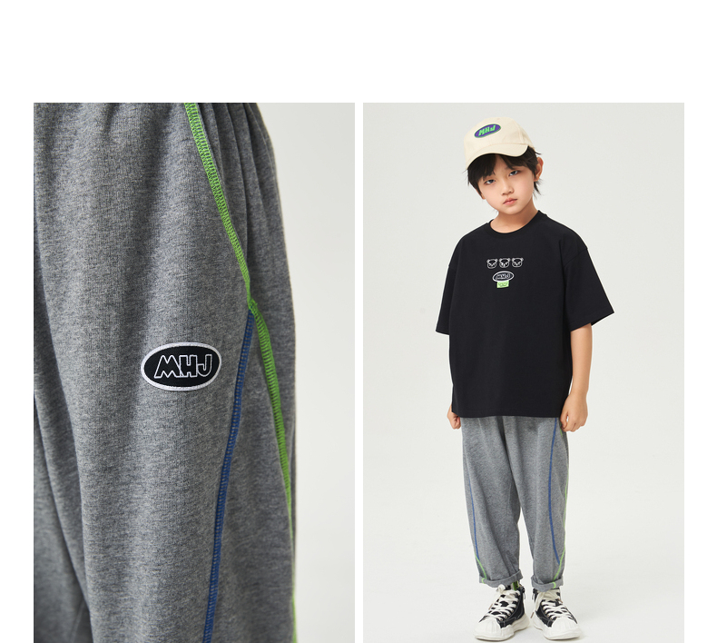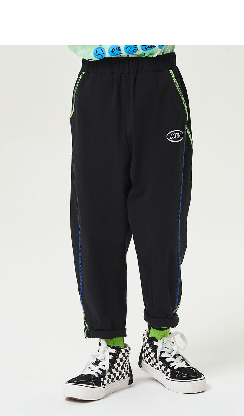 漫画家潮牌童装儿童裤子春夏新品双色绷缝线薄款针织九分萝卜裤