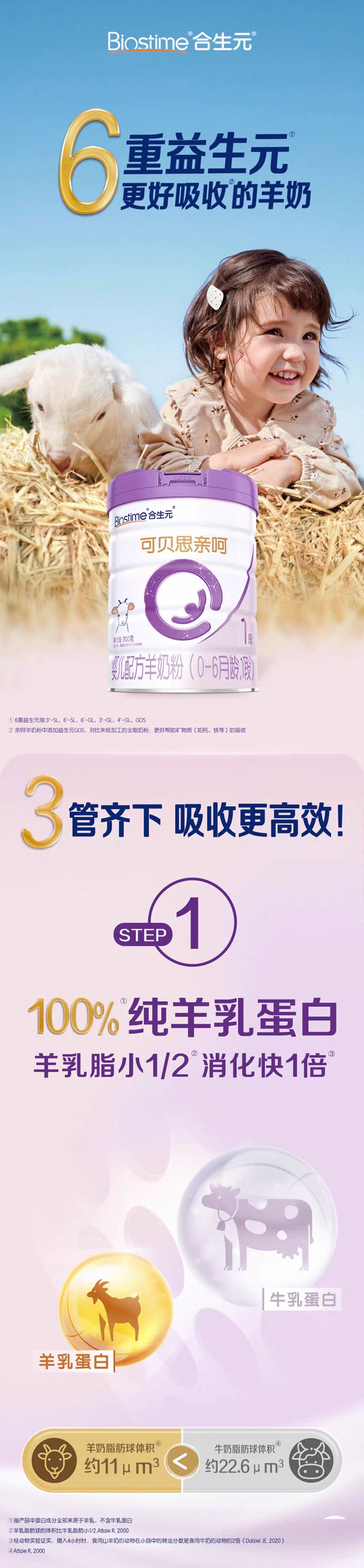 合生元可贝思亲呵婴儿配方羊奶粉1段700g*6罐