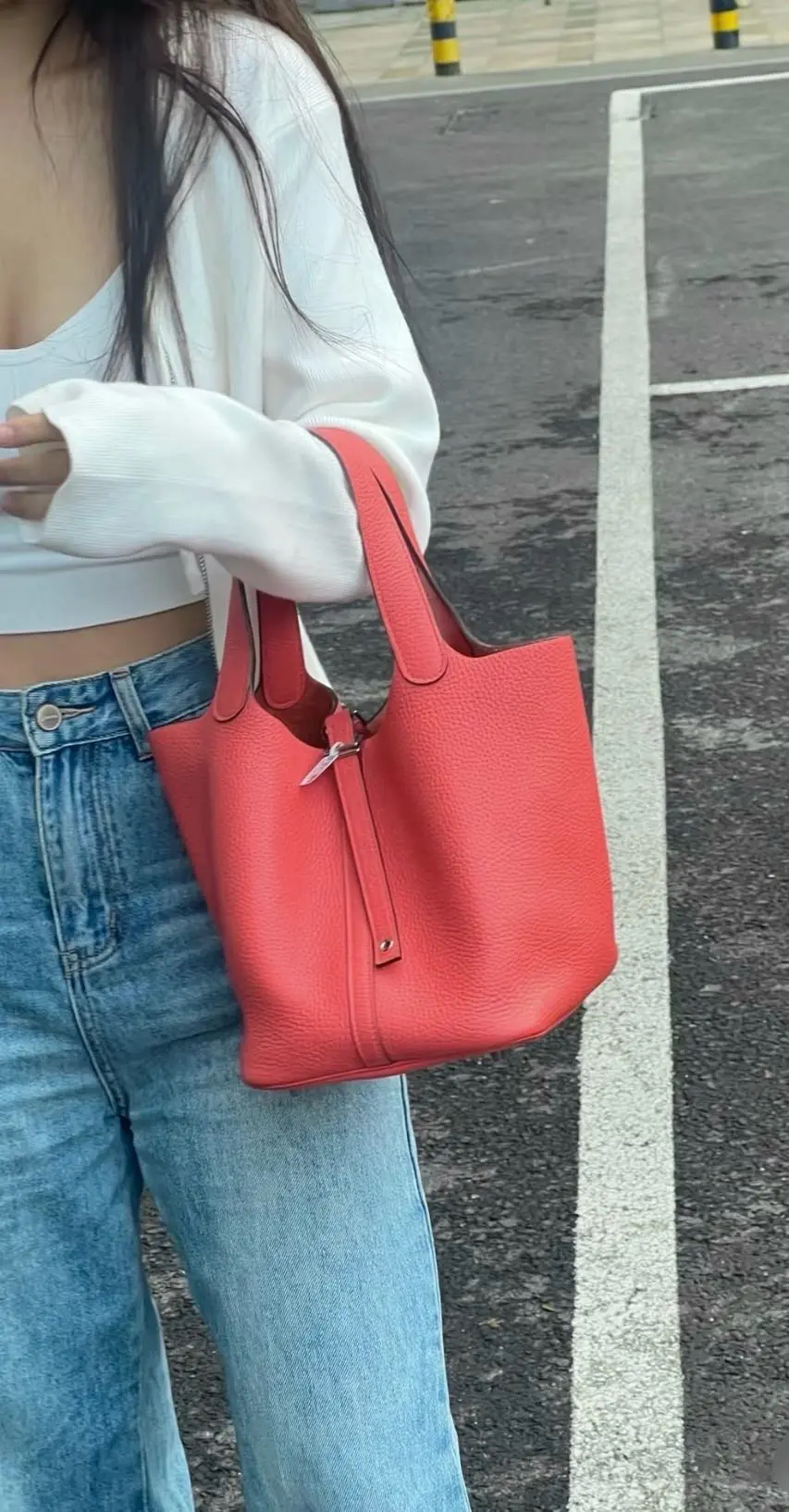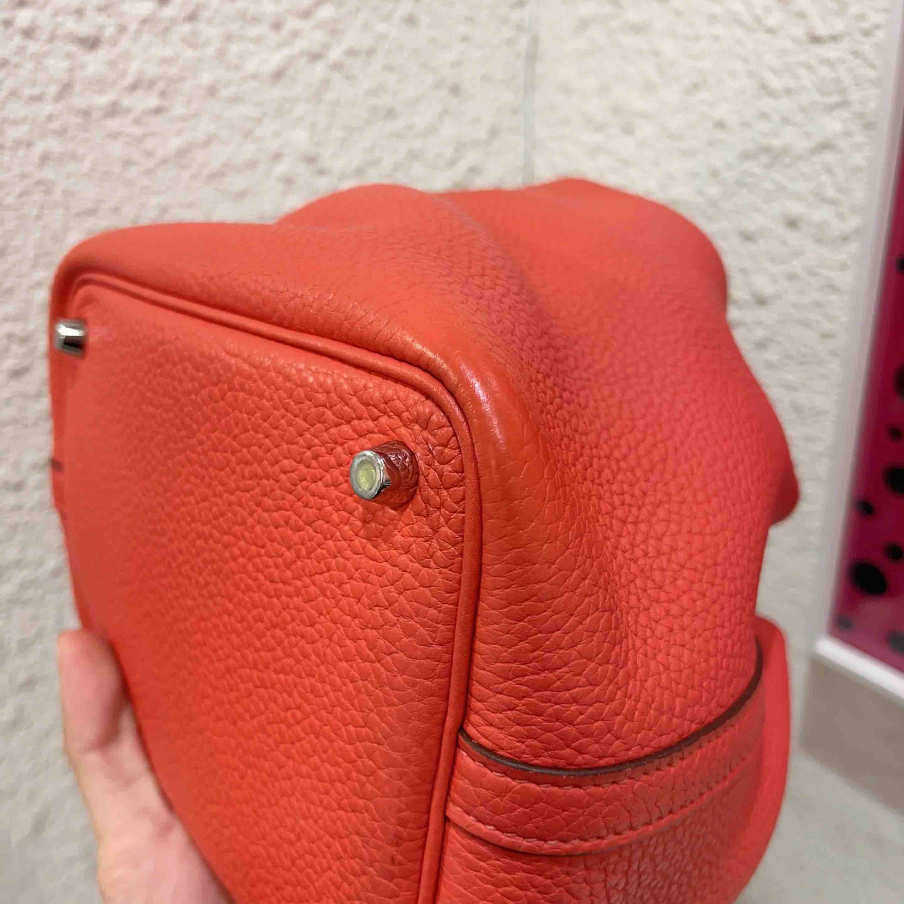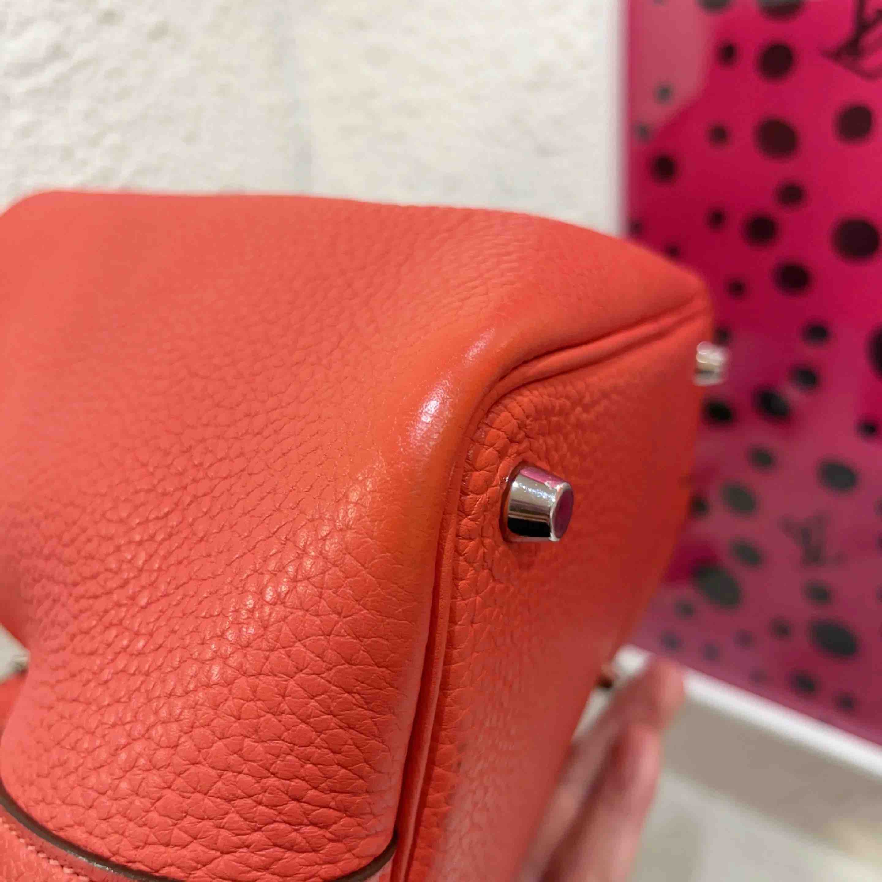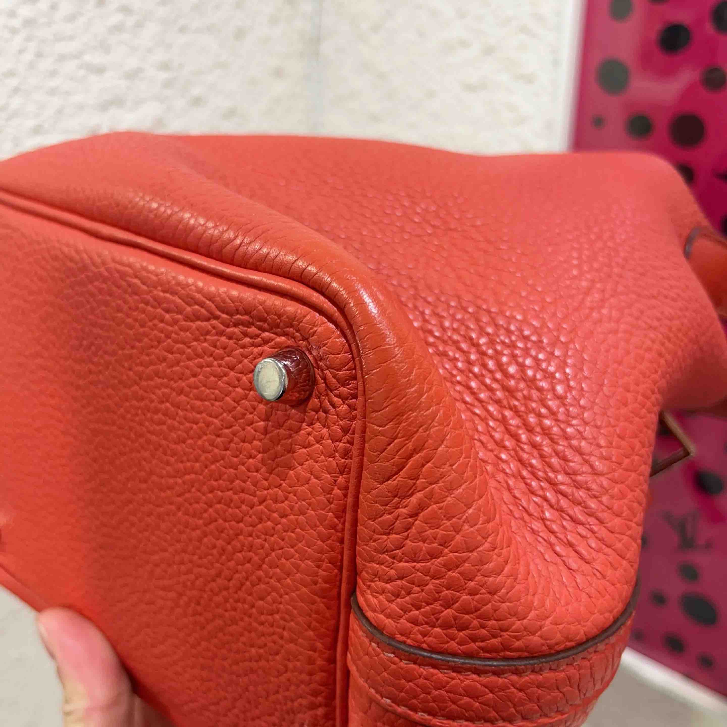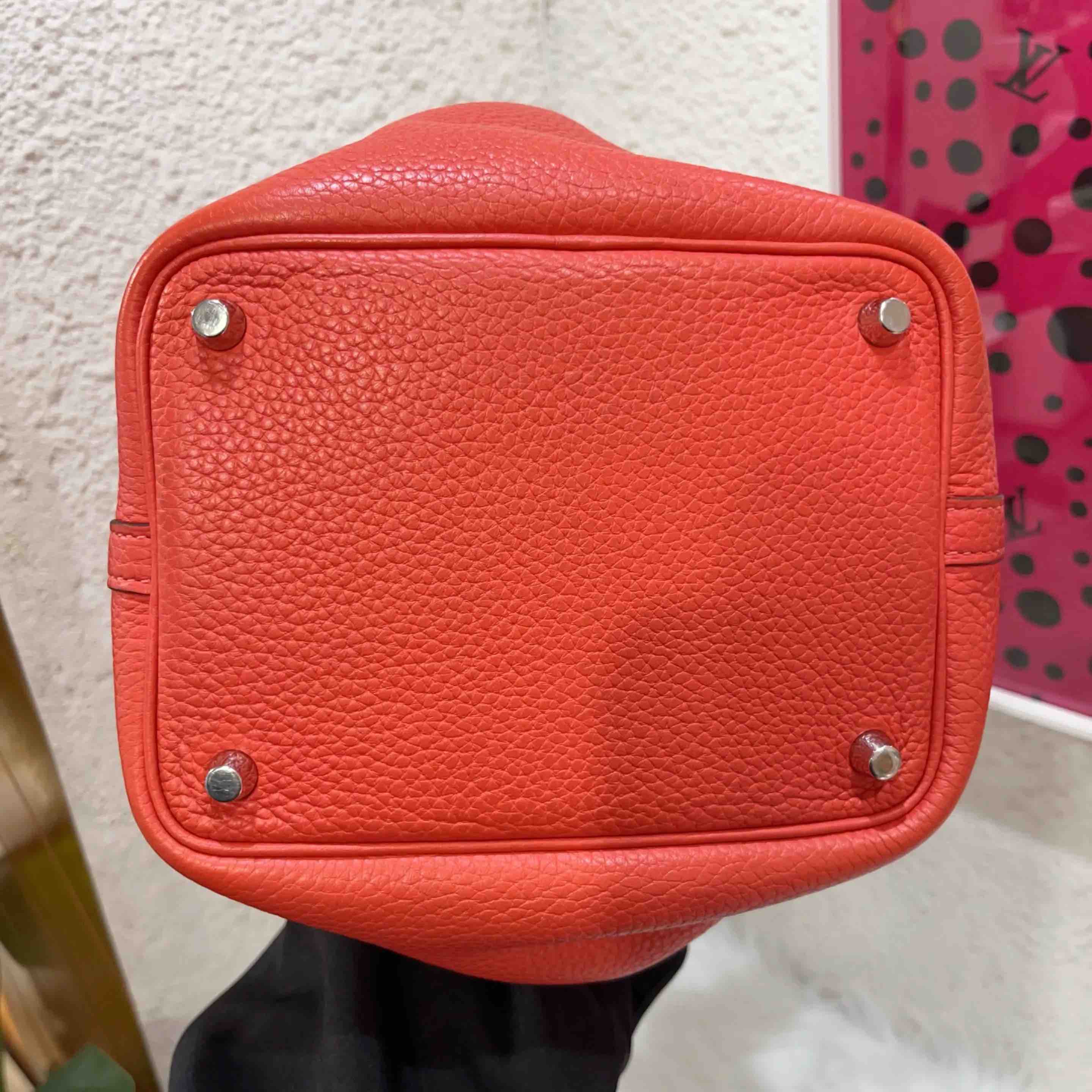 【商品详情】正品二手 爱马仕 菜篮子18 罂栗橙 Togo皮 手提包🥏 95新 18×18 框R刻 配件:钥匙 锁。内里正常使用感。带点红调的橙色 穿搭点睛之笔