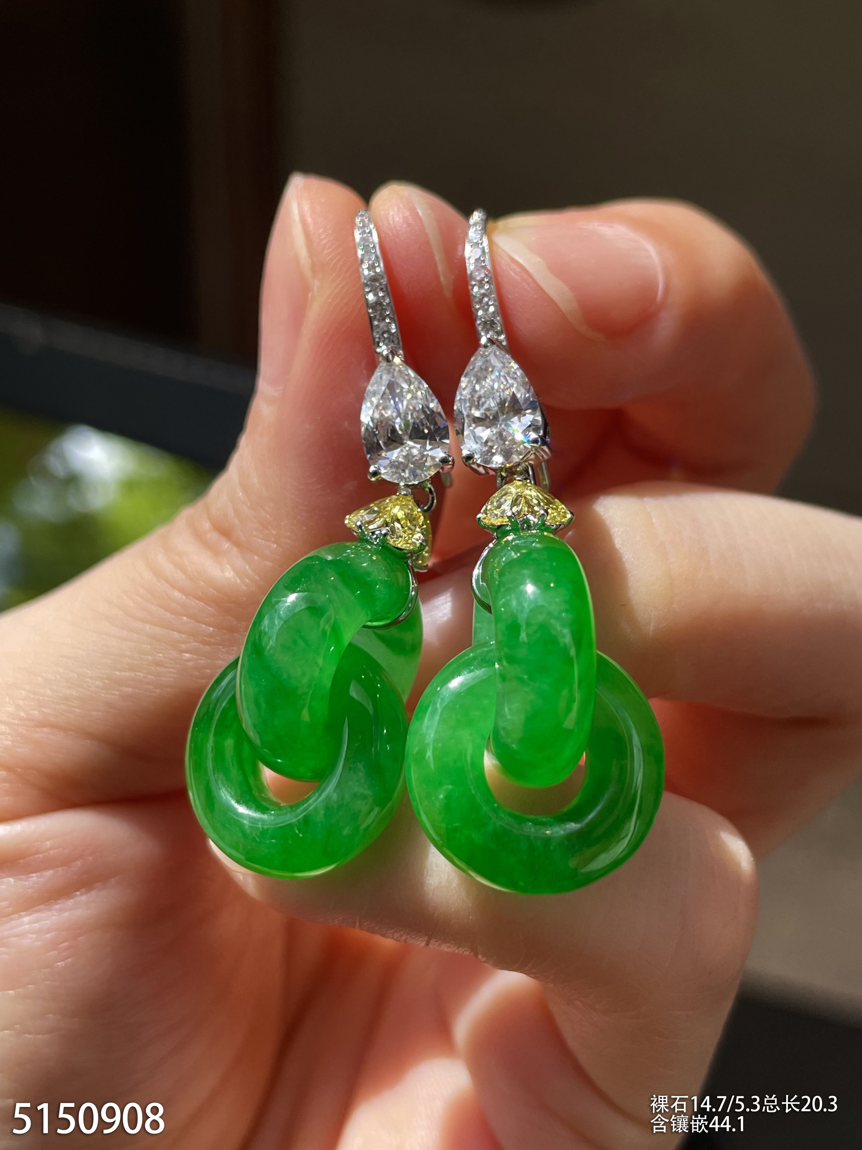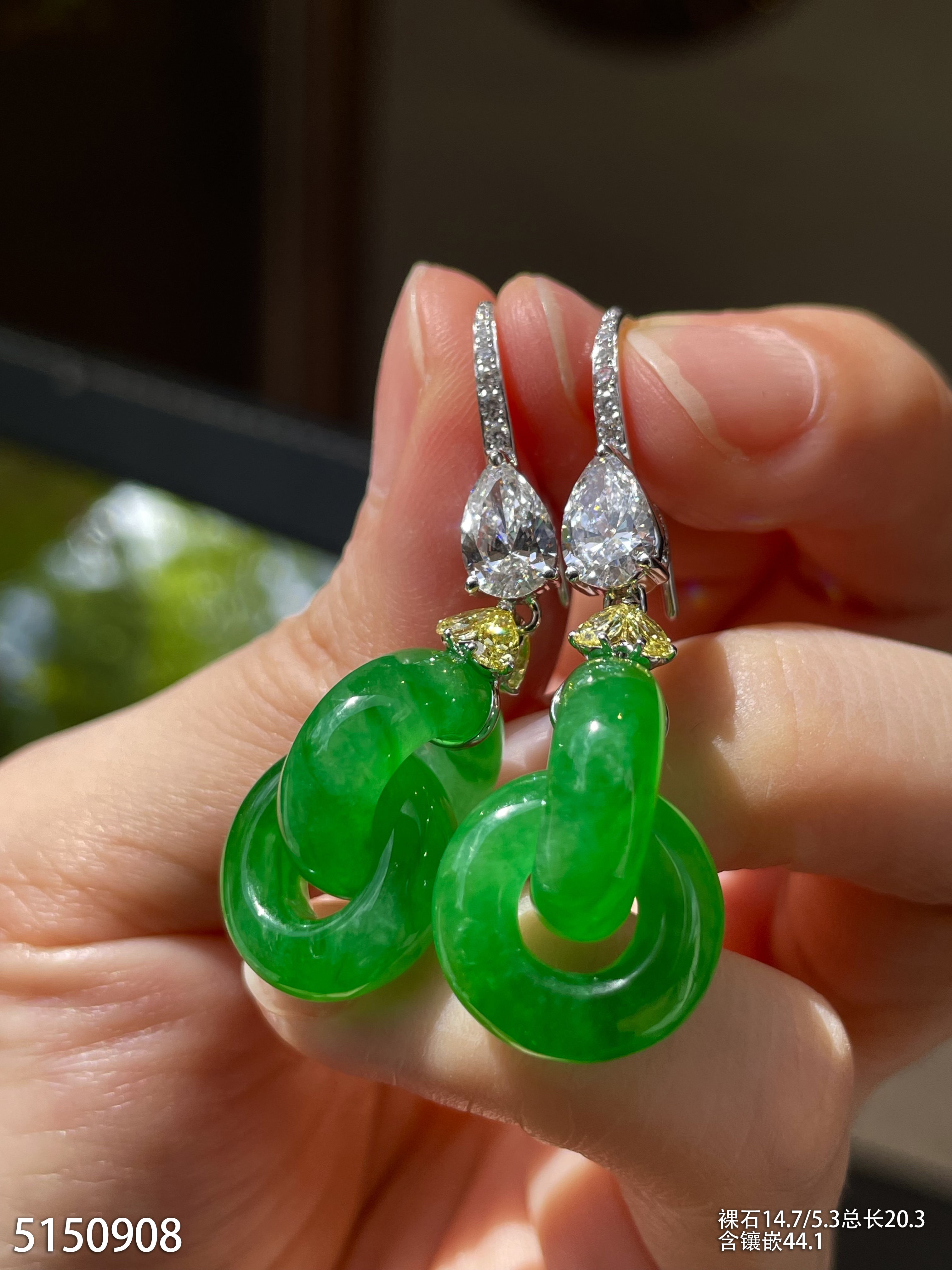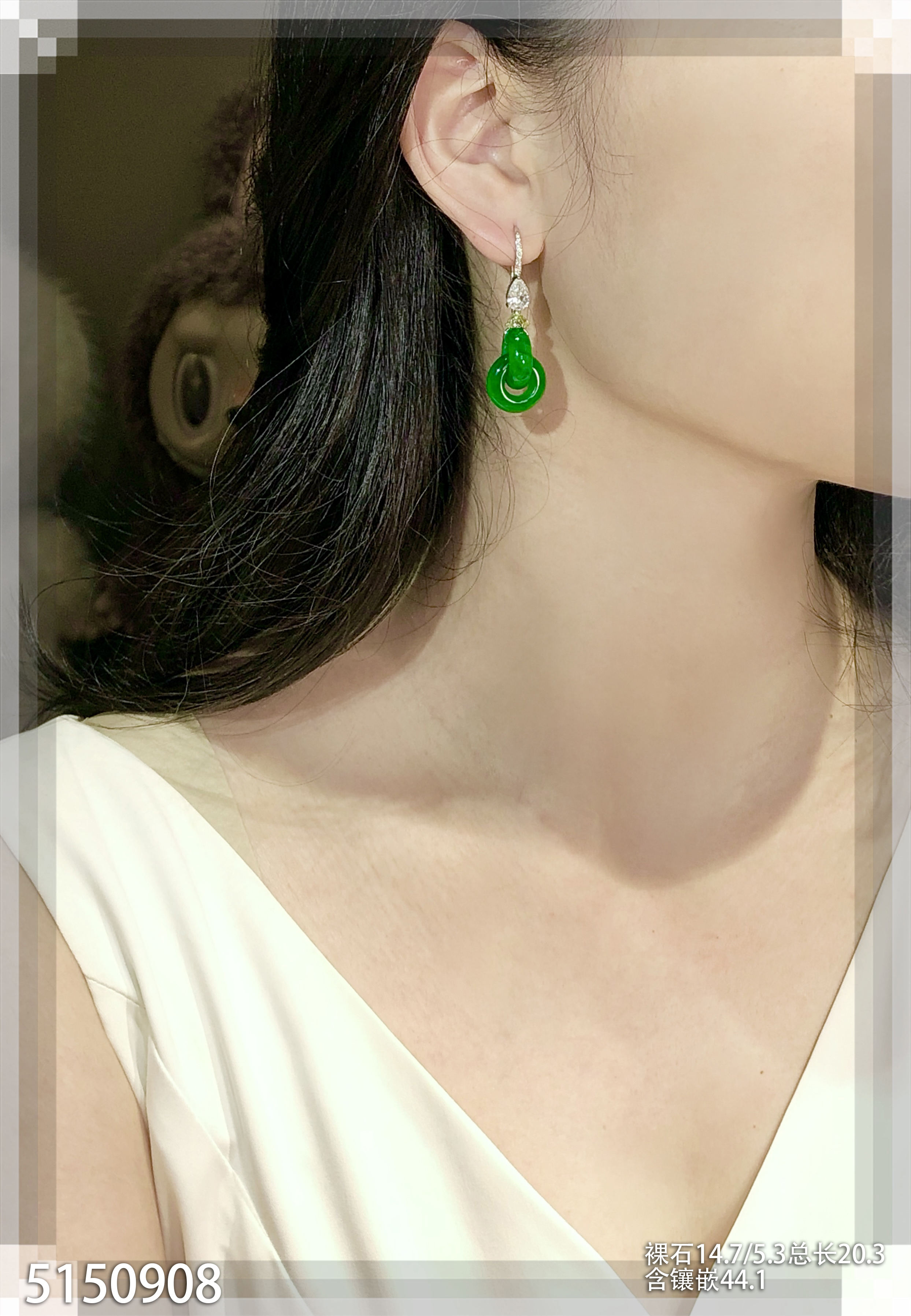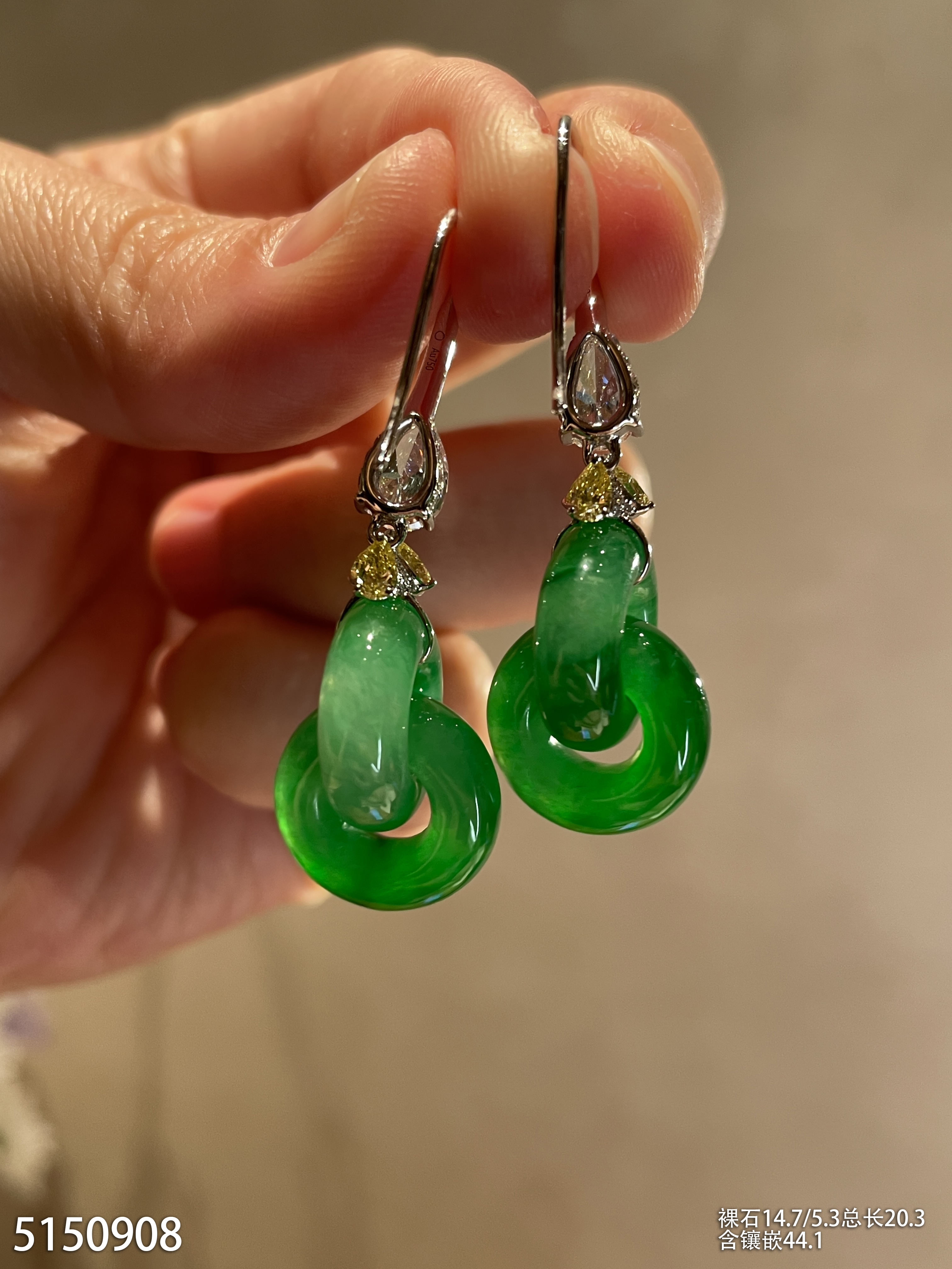 高冰艳绿双环耳坠【5150908】具体价格微信咨询