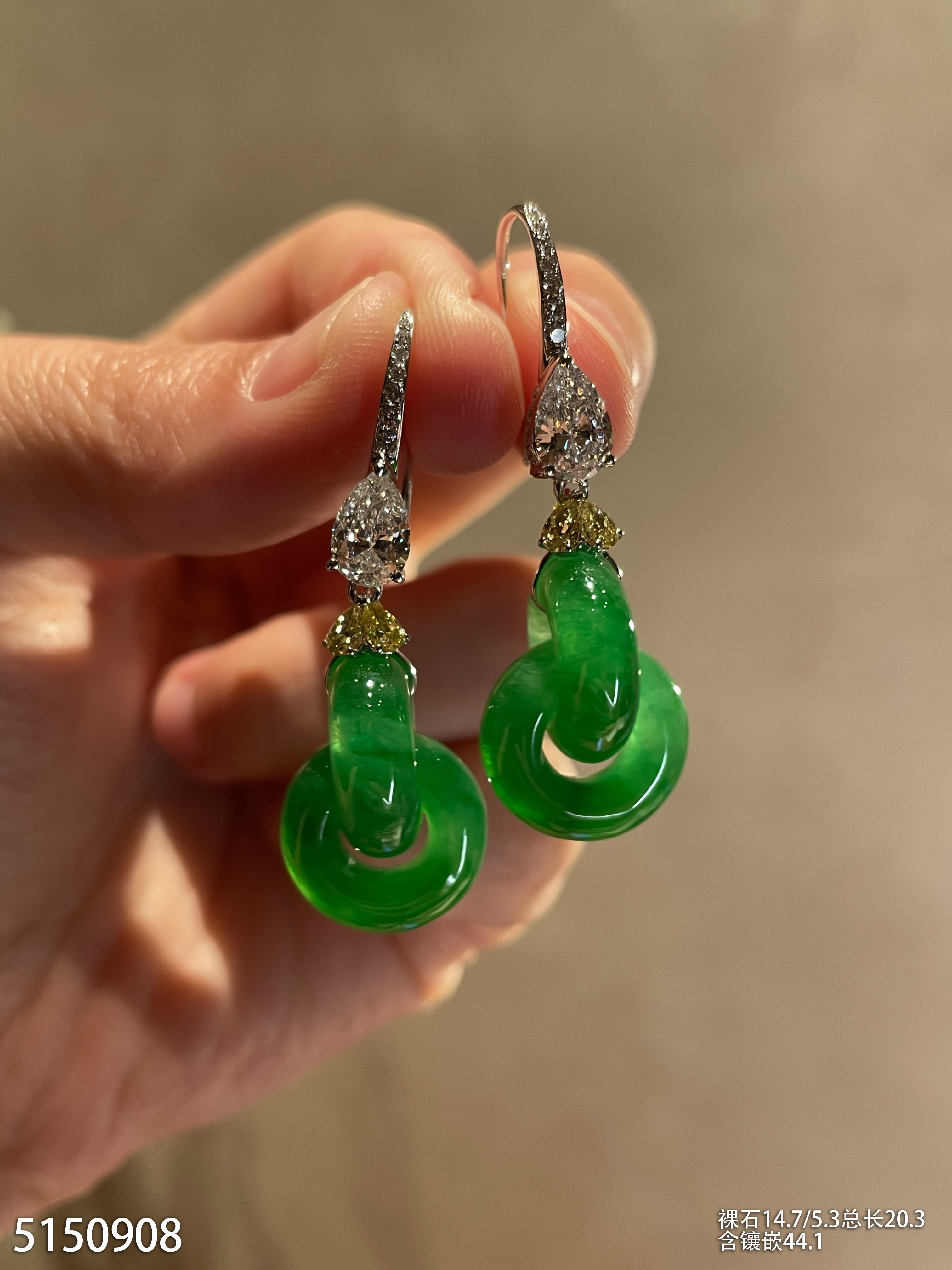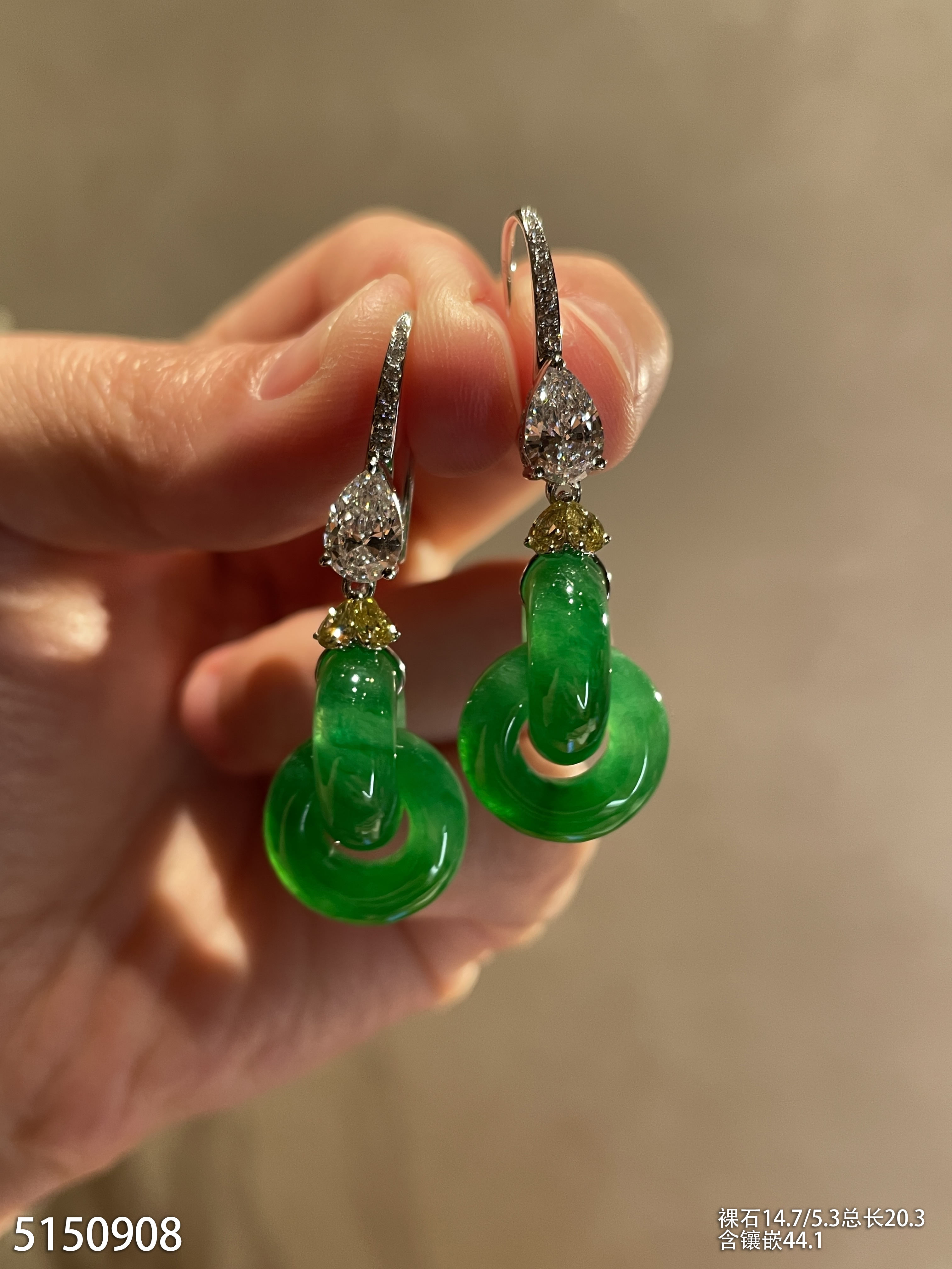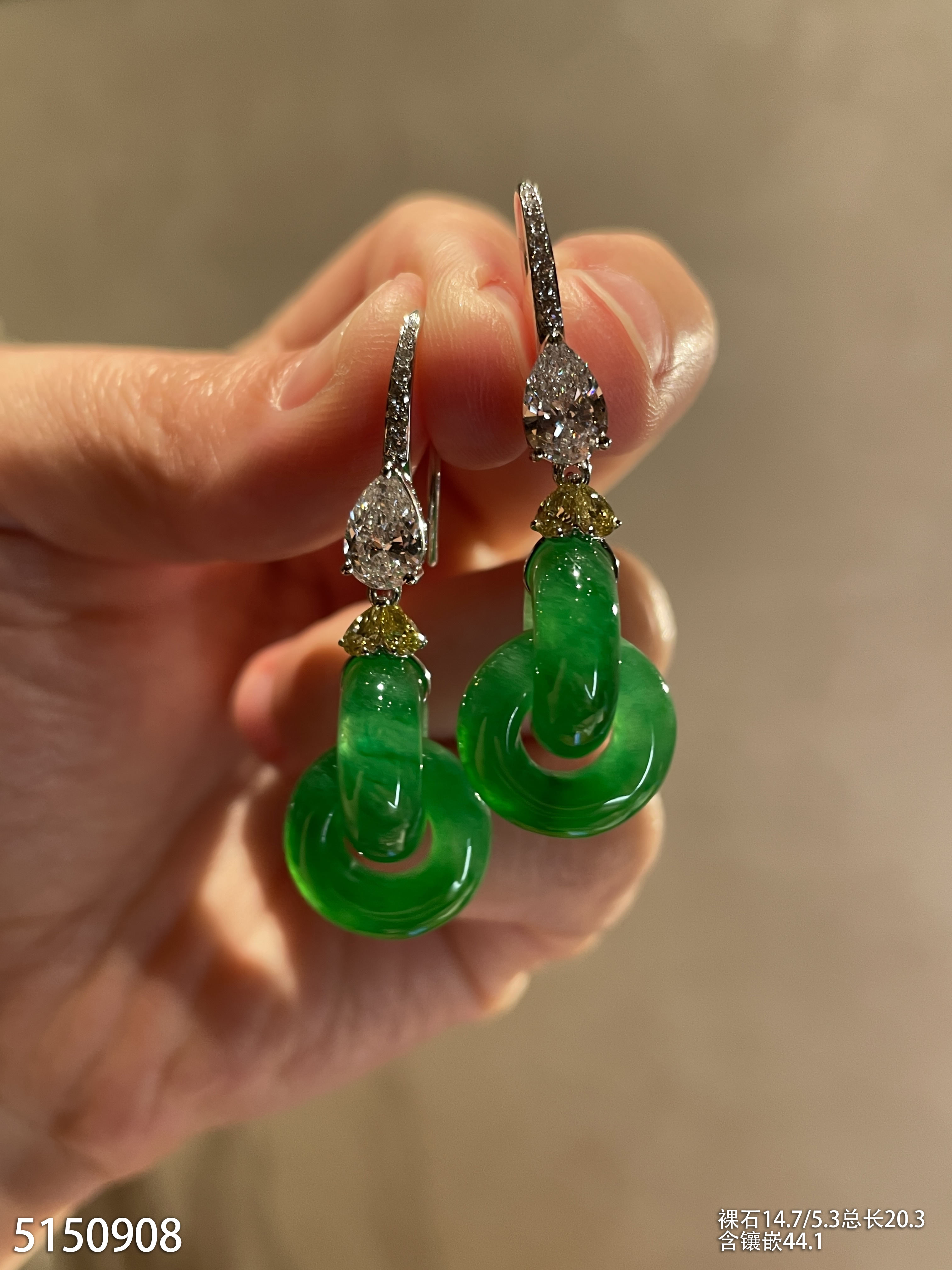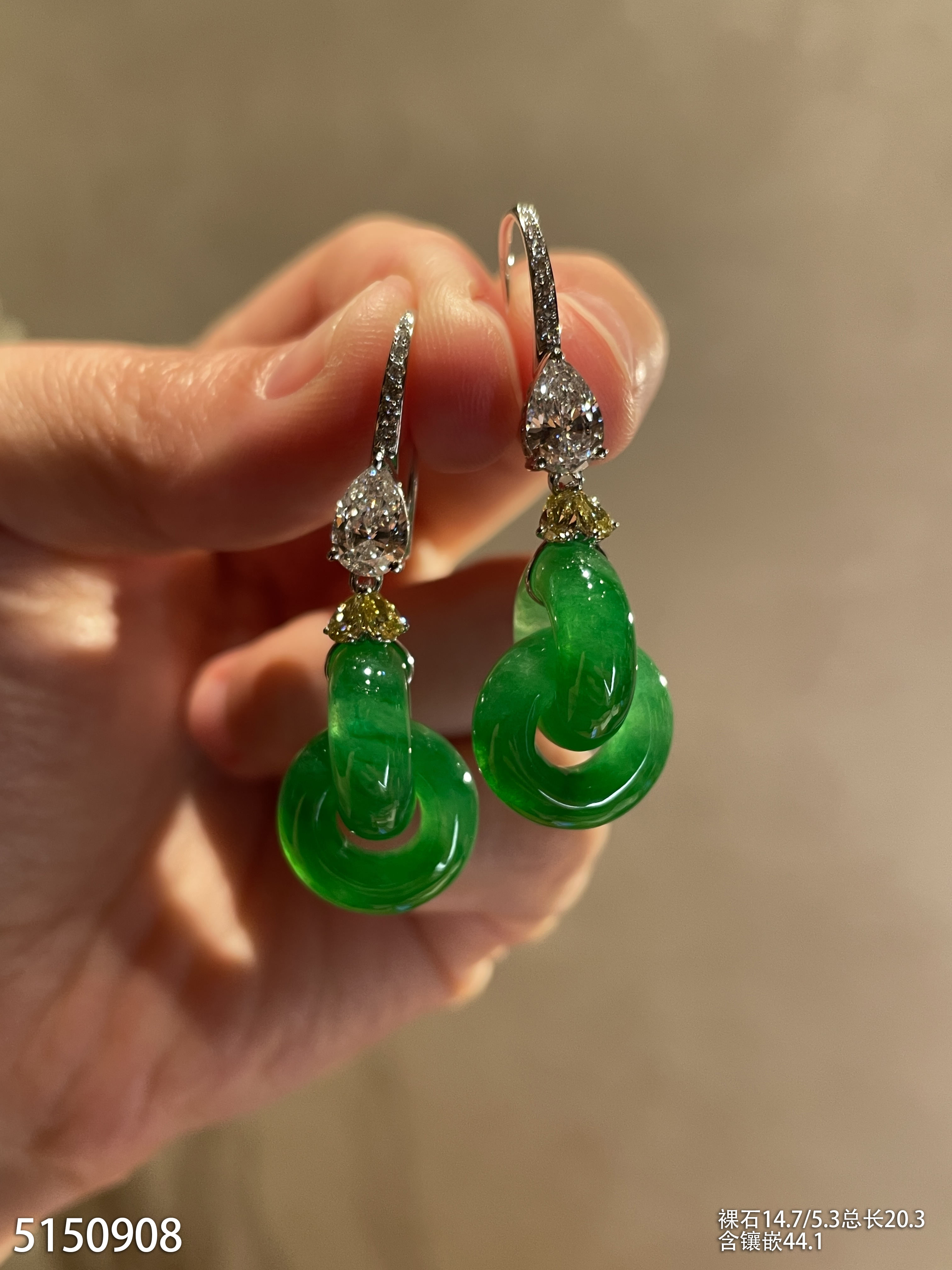 高冰艳绿双环耳坠【5150908】具体价格微信咨询