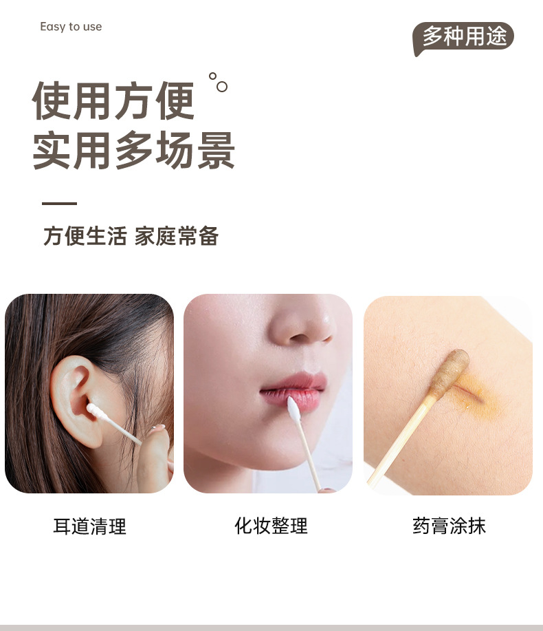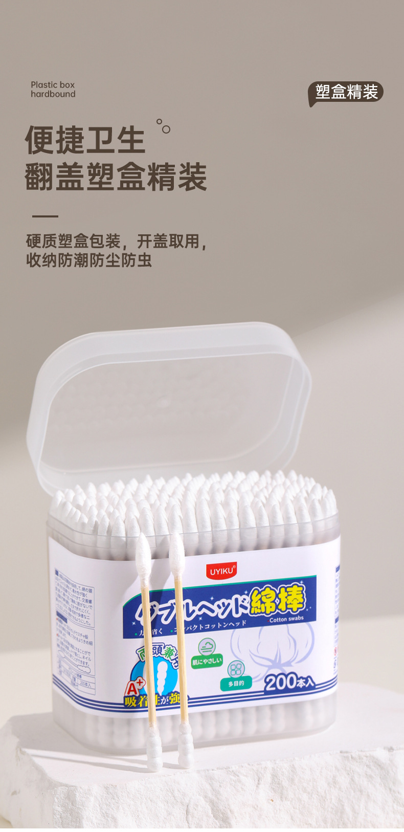 「3盒装!单盒200支,双头设计多功能」200支棉签掏耳化妆卸妆消毒用棉花棒双头木棒一次性尖头卫生棉棒