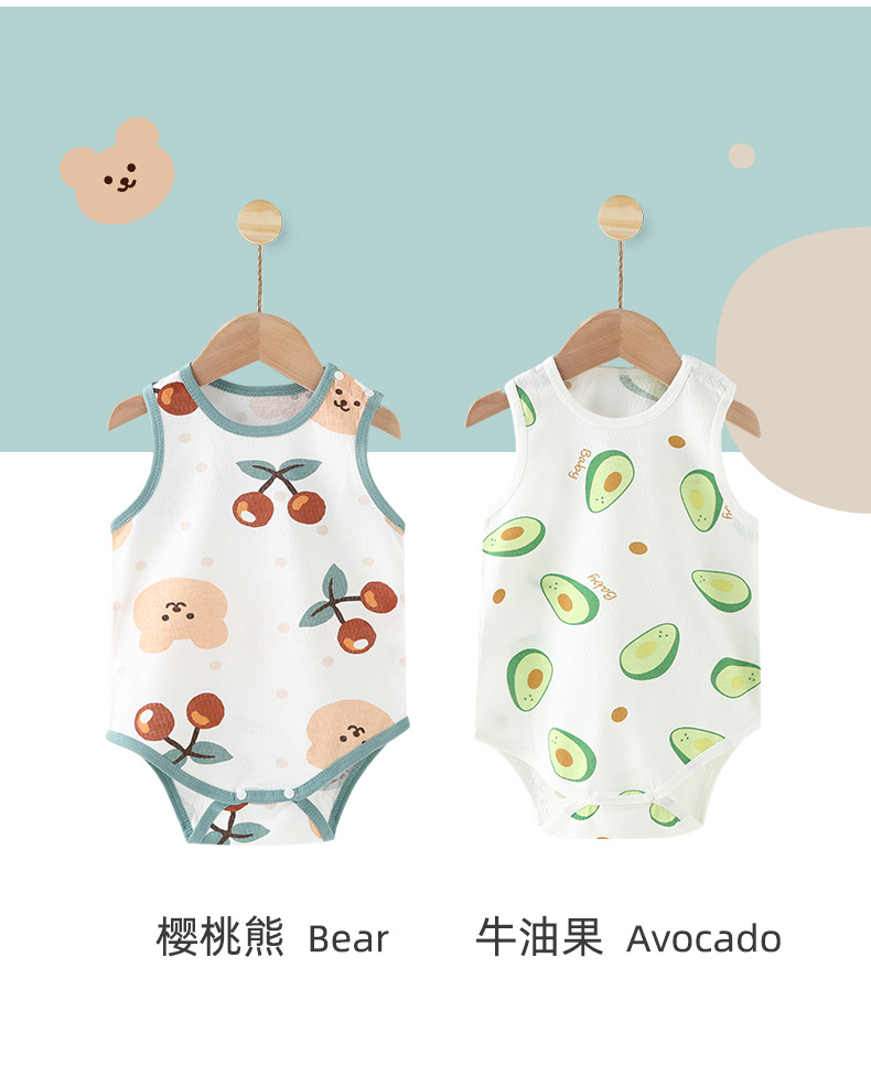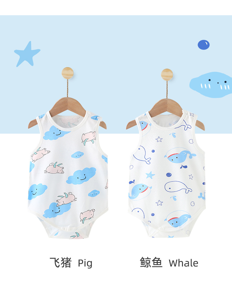 婴儿夏季纯棉无袖三角包屁衣新生儿薄款透气哈衣宝宝爬服连体衣