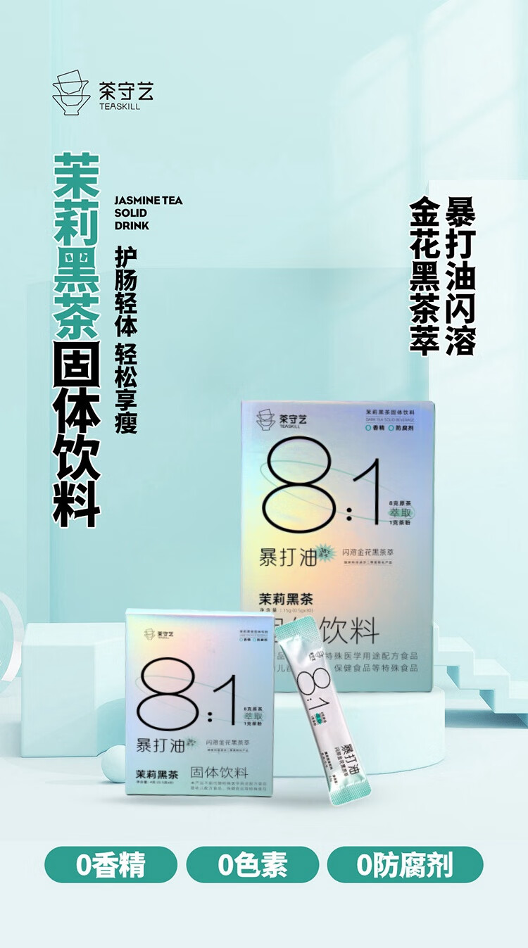 【茶守艺 暴打油 茉莉固体饮料】0.5g*30条*1盒 餐后一杯 暴打油腻
