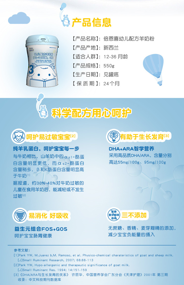 倍恩喜幼儿配方羊奶粉550克