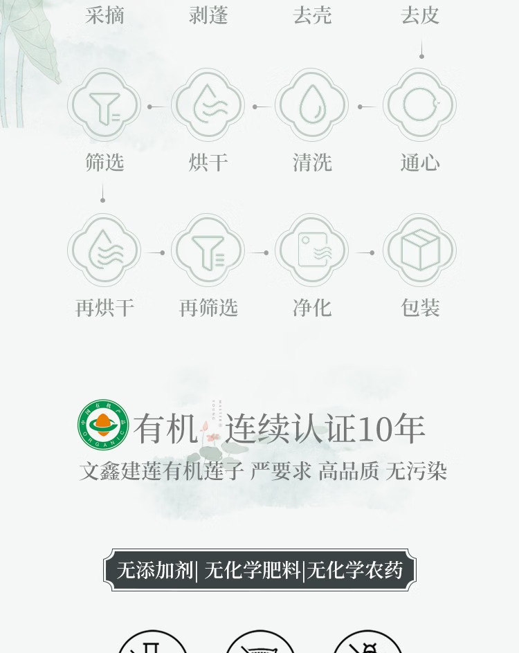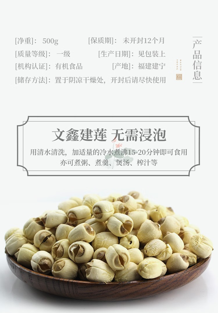 建莲 有机建宁通心白莲真空装 200g