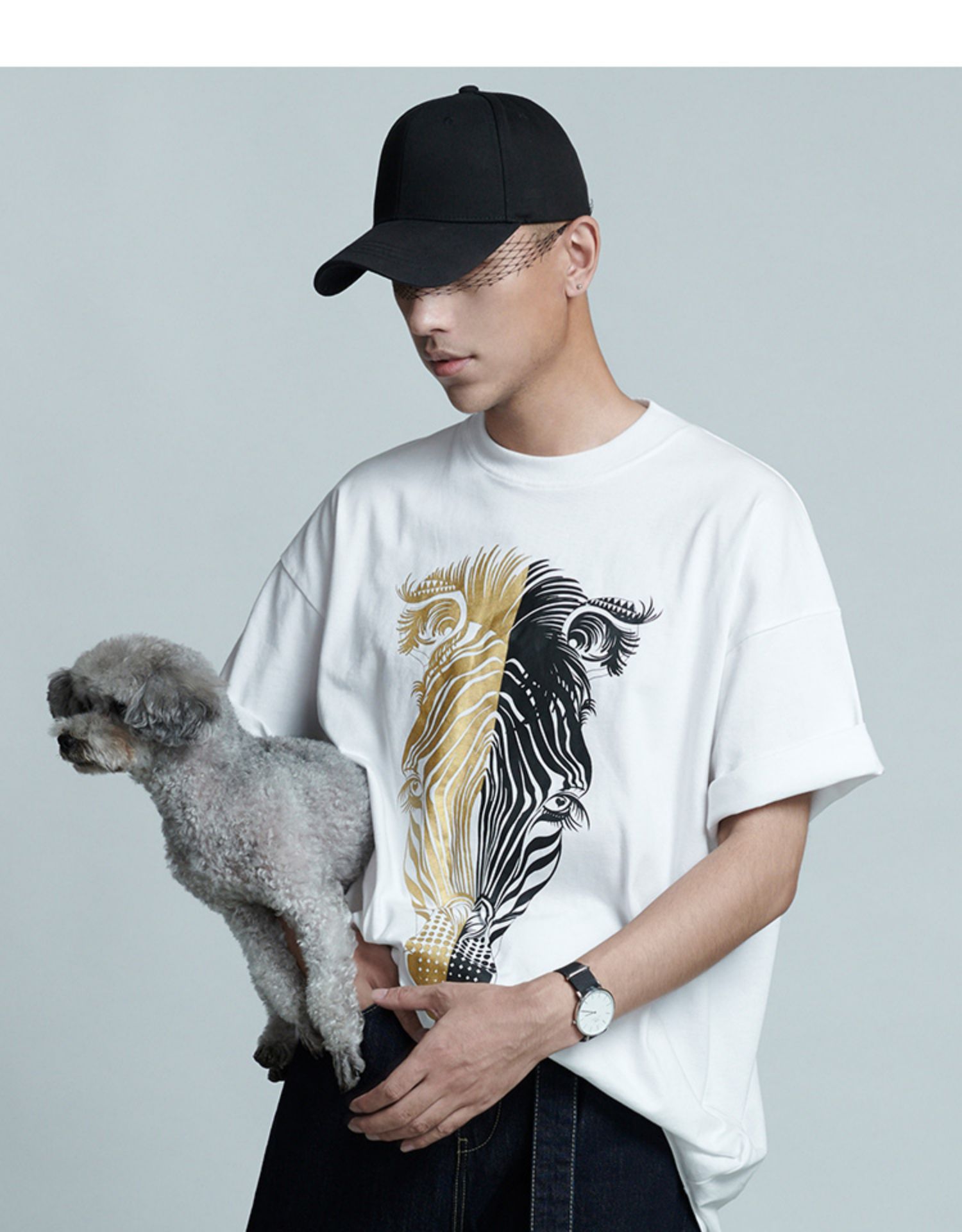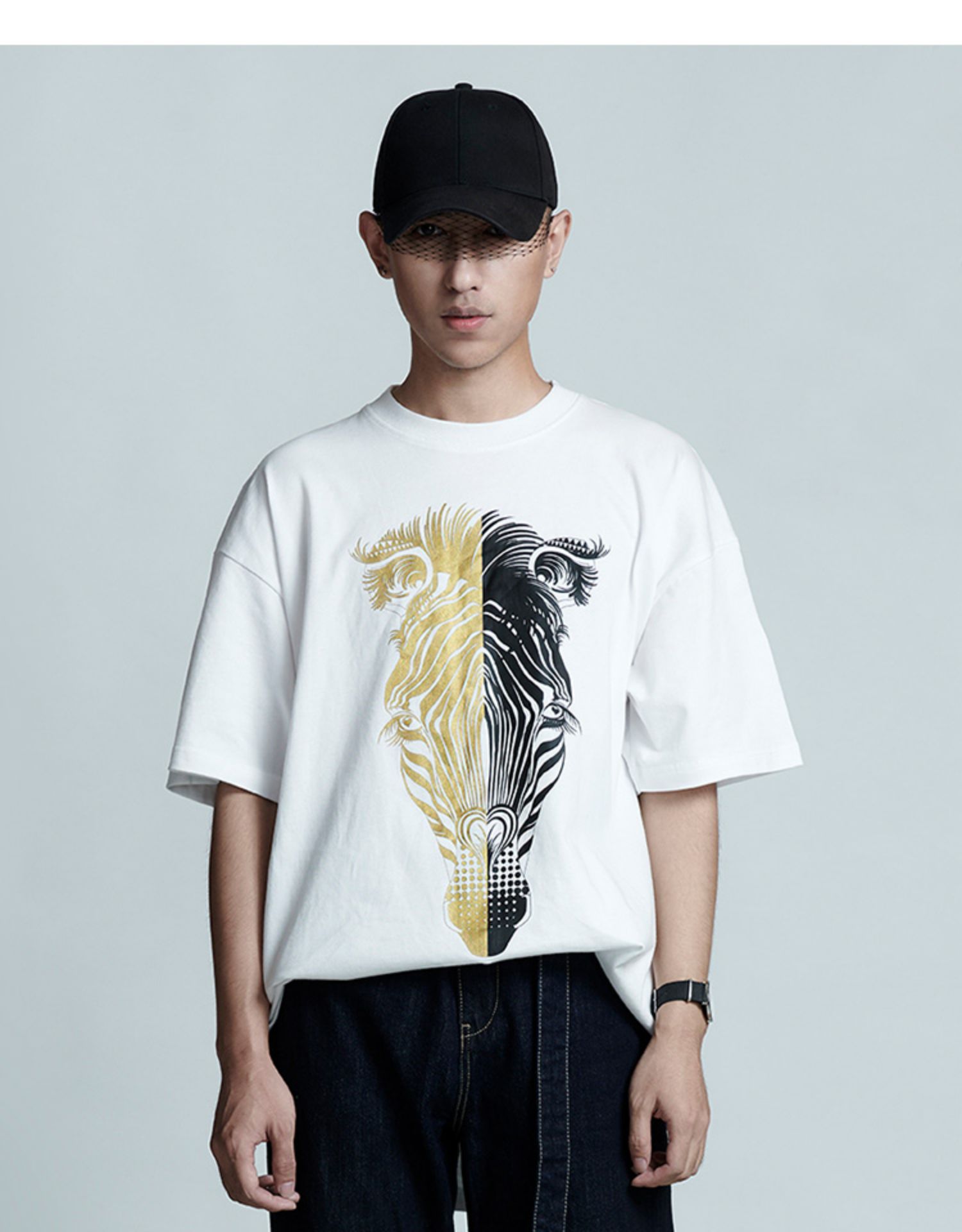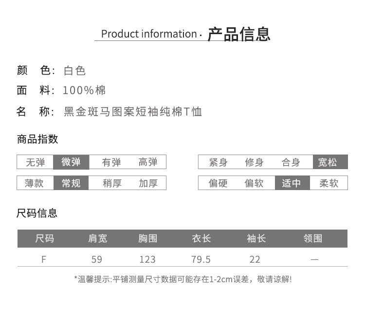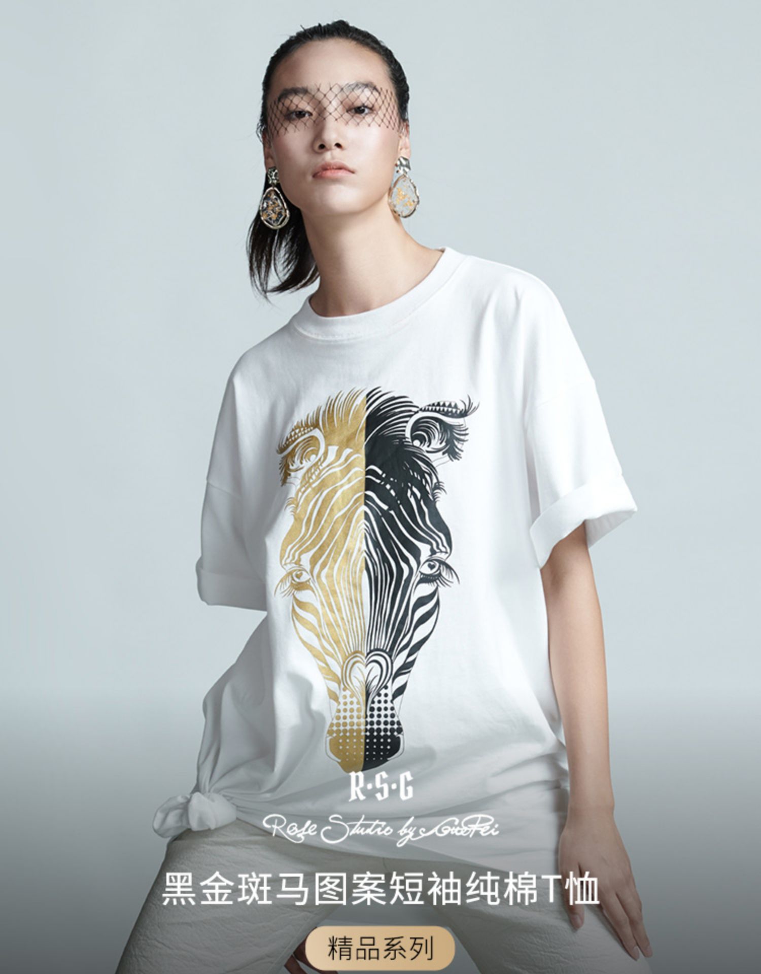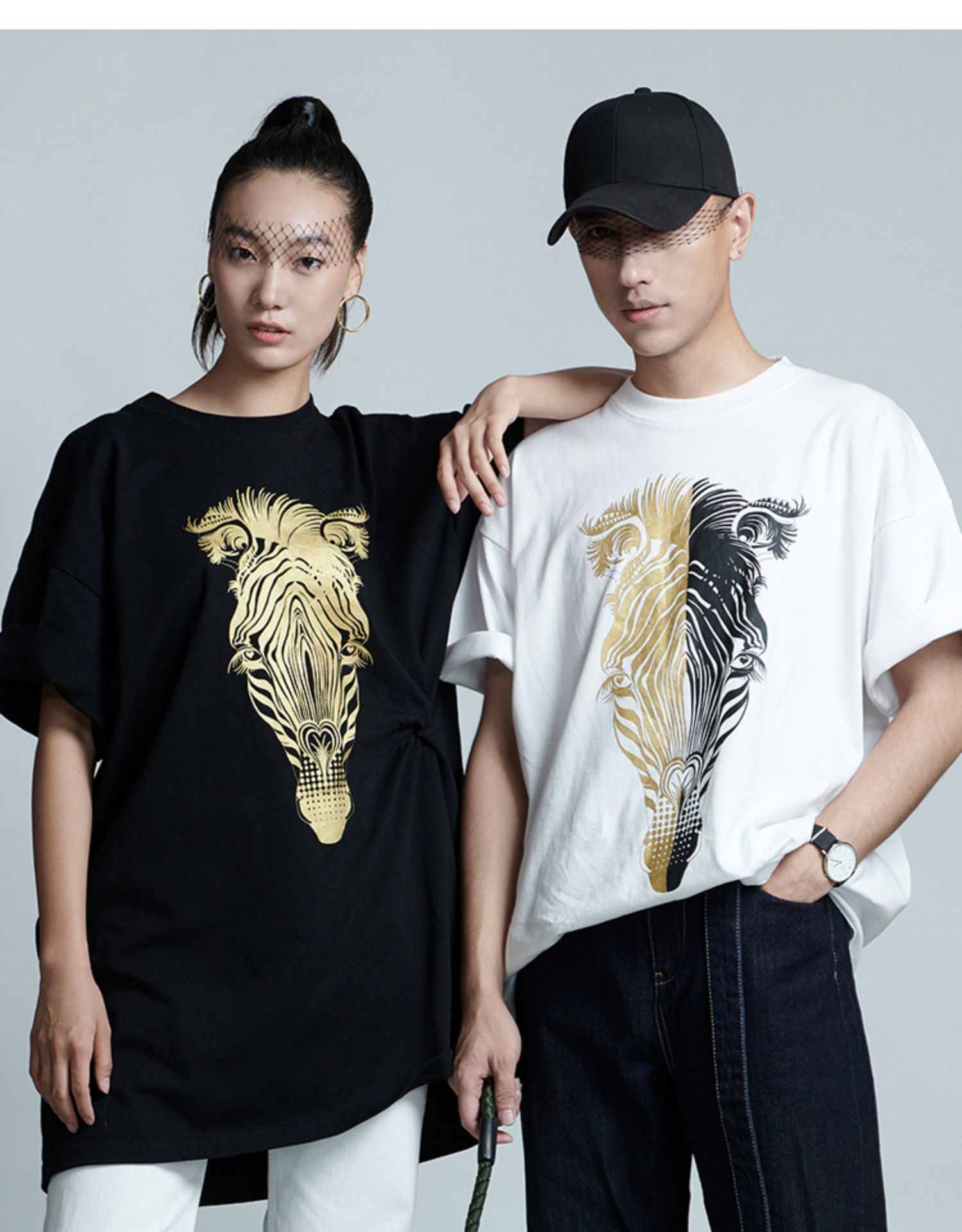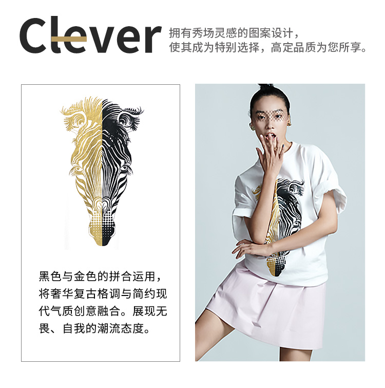 RSG郭培成衣品牌春夏黑金斑马印花情侣休闲纯棉短袖T恤