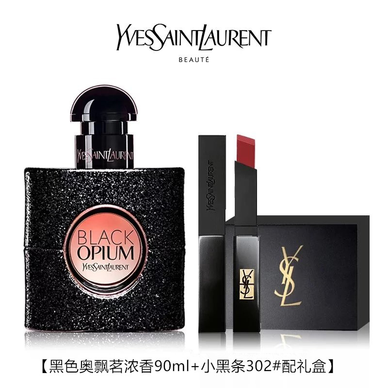 【配礼盒】YSL/圣罗兰香水黑色奥飘茗浓香90ml+小黑条口红302#2g