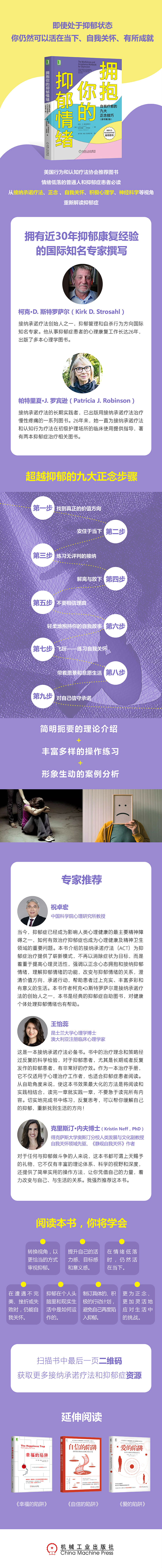 ◎本书将从接纳承诺疗法、正念 、自我关怀、积极心理学、神经科学等视角,重新解读抑郁症。