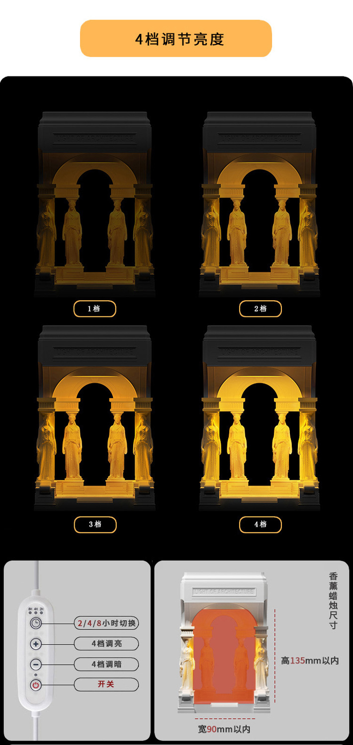 雅典圣殿原创建筑香薰融蜡灯卧室床头可调光夜灯计礼物氛围灯