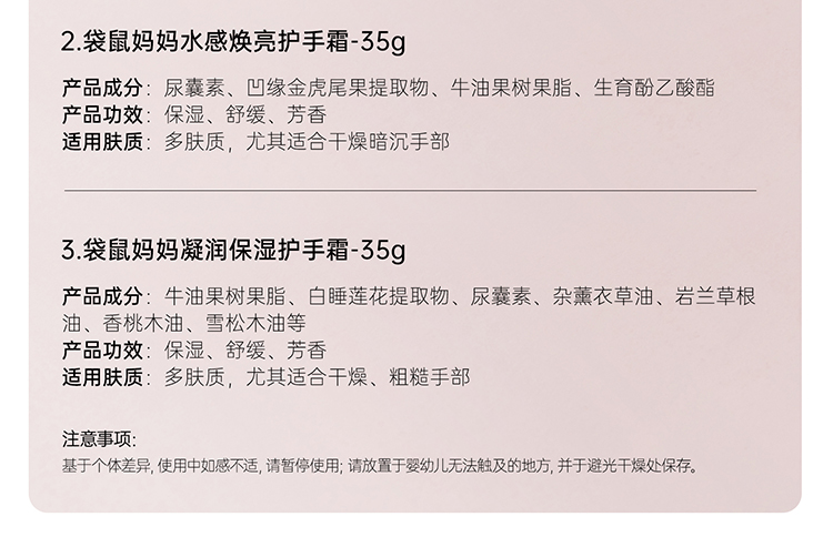 【功效型护手霜 】手部肌肤粗糙肤色暗淡的姐妹必入!3款功效可选,保湿提亮抗皱 8H留香 贴身【手】护 凝润保湿/弹润柔嫩/水感焕亮护手霜(35g)