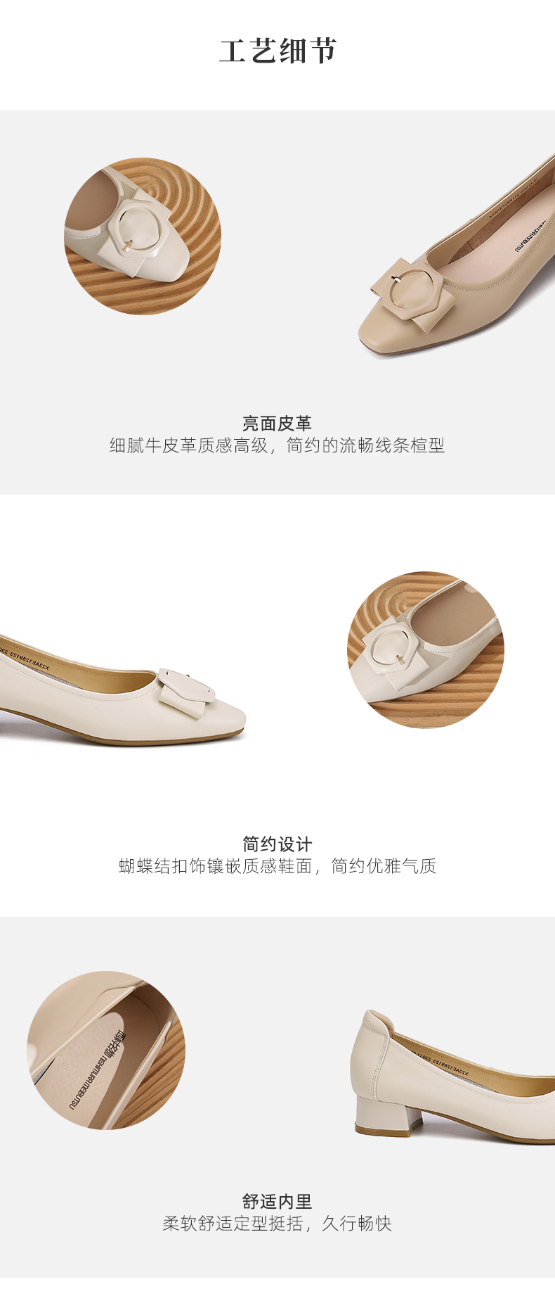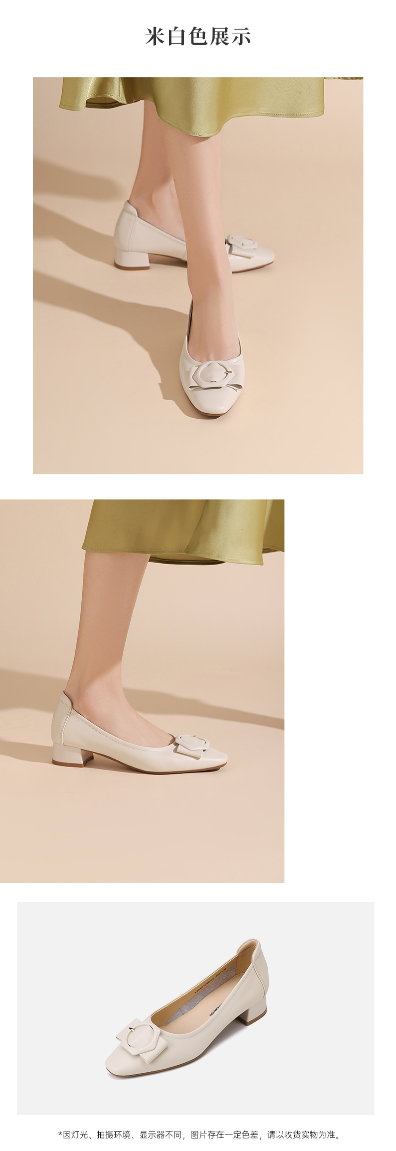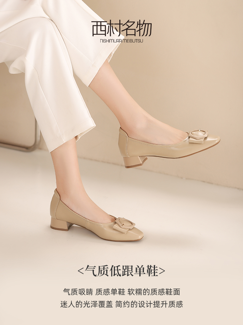 西村名物2023春季新款方头粗跟单鞋低跟优雅一脚蹬通勤单鞋12891
