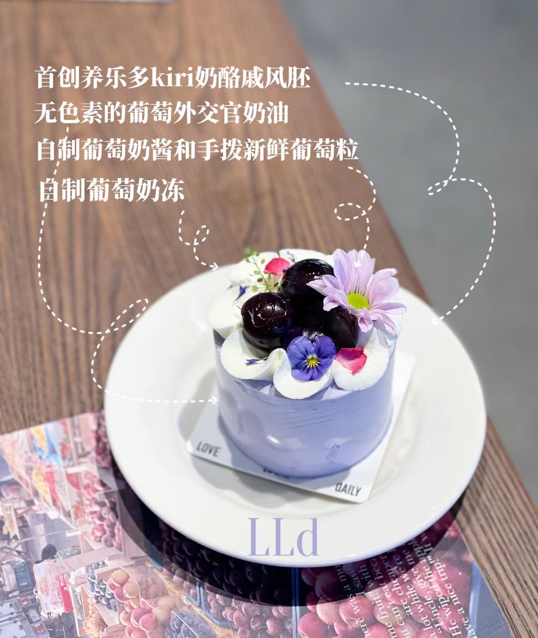 不加任何色素,奶油它真的不会那么紫(即使了葡萄皮的紫色以及果茸加入熬了很紫的果酱,葡萄果酱也好难熬),但是很柔和,所以就靠葡萄本身来保持紫色调~
