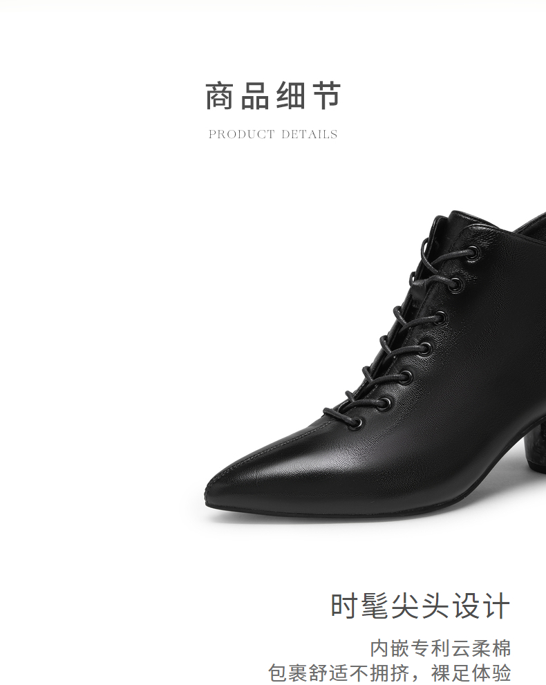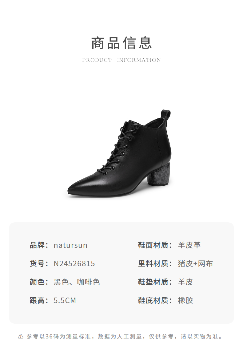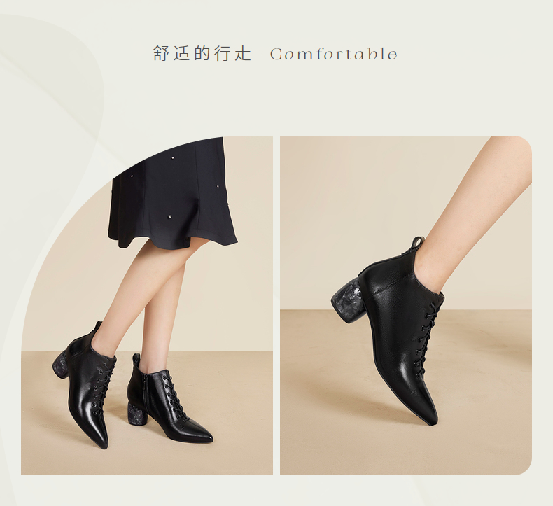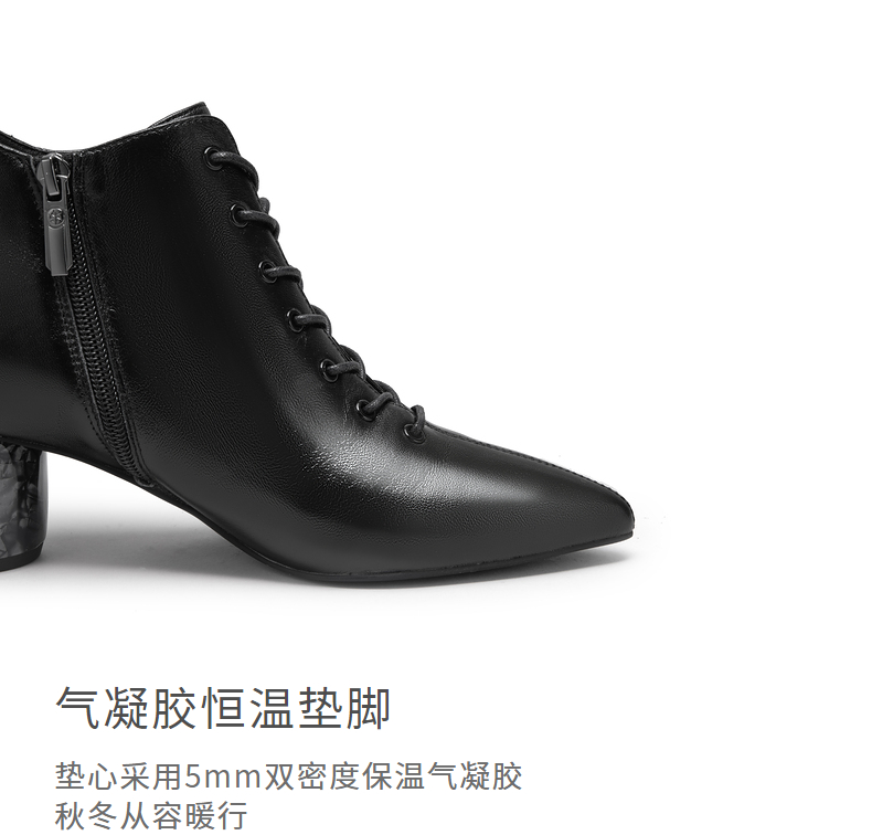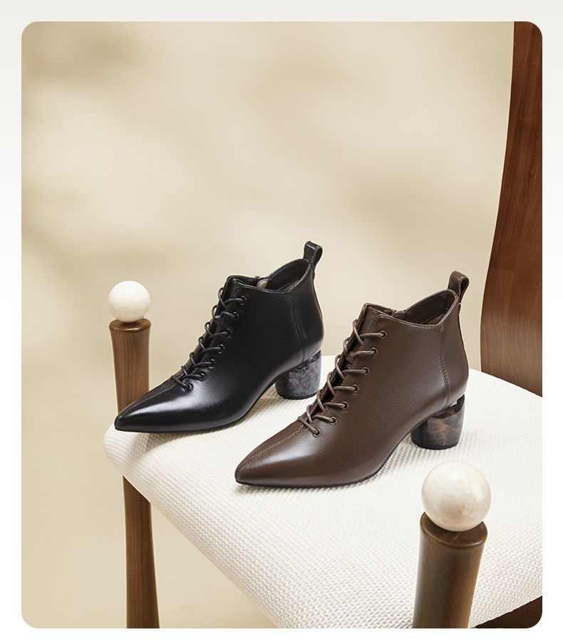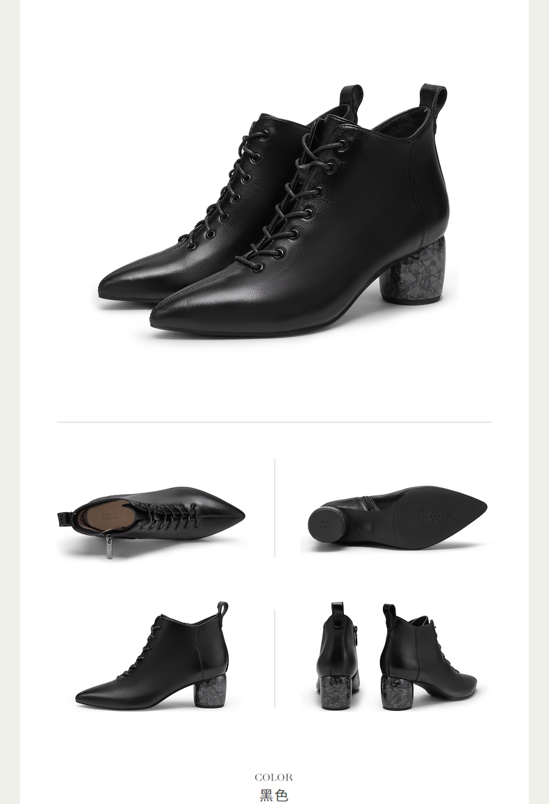 natursun法式时装靴秋冬季时尚气质尖头粗跟大理石纹短靴女鞋N24526815