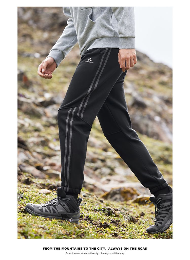 拓路者加绒加厚秋冬男式休闲长裤拼接束脚裤子青少年保暖运动裤