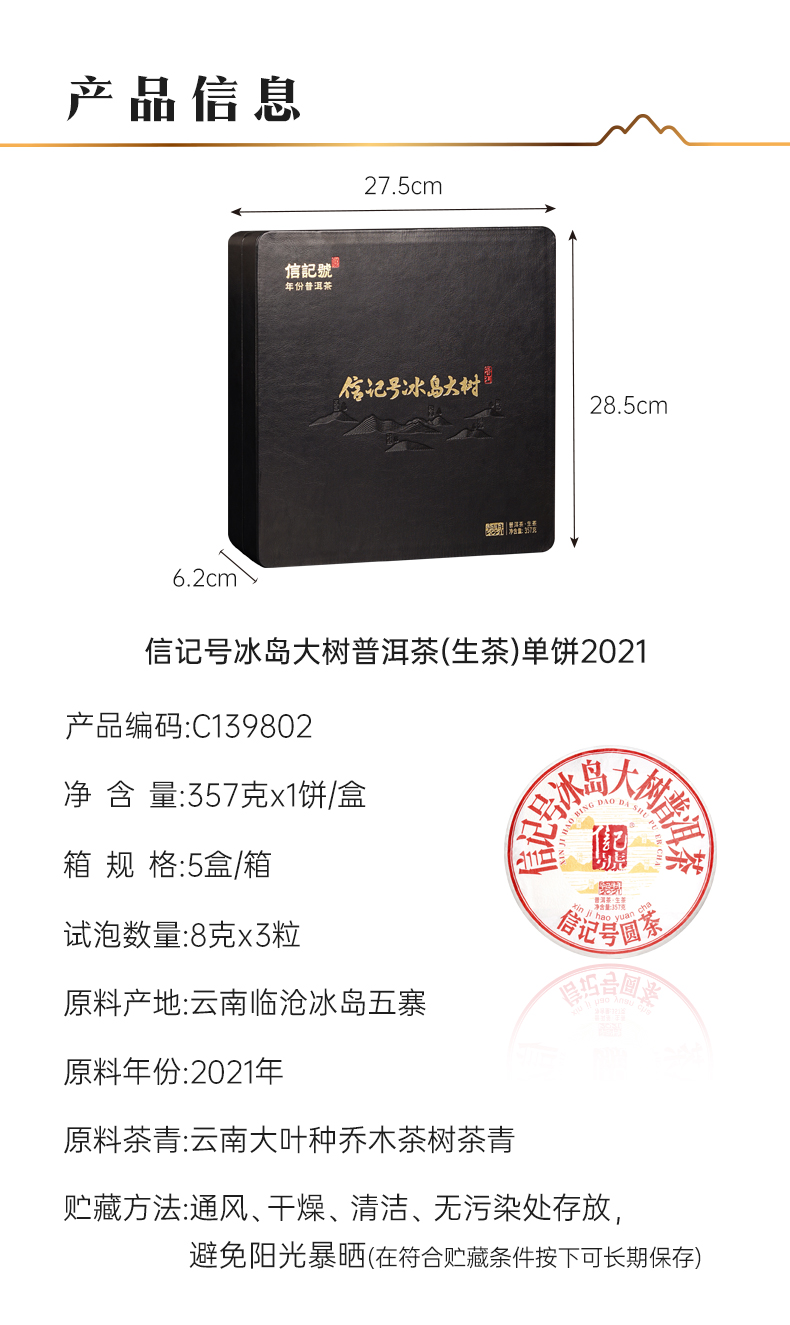 八马信记号|普洱生茶 信记号冰岛大树普洱茶 单饼装 C139802