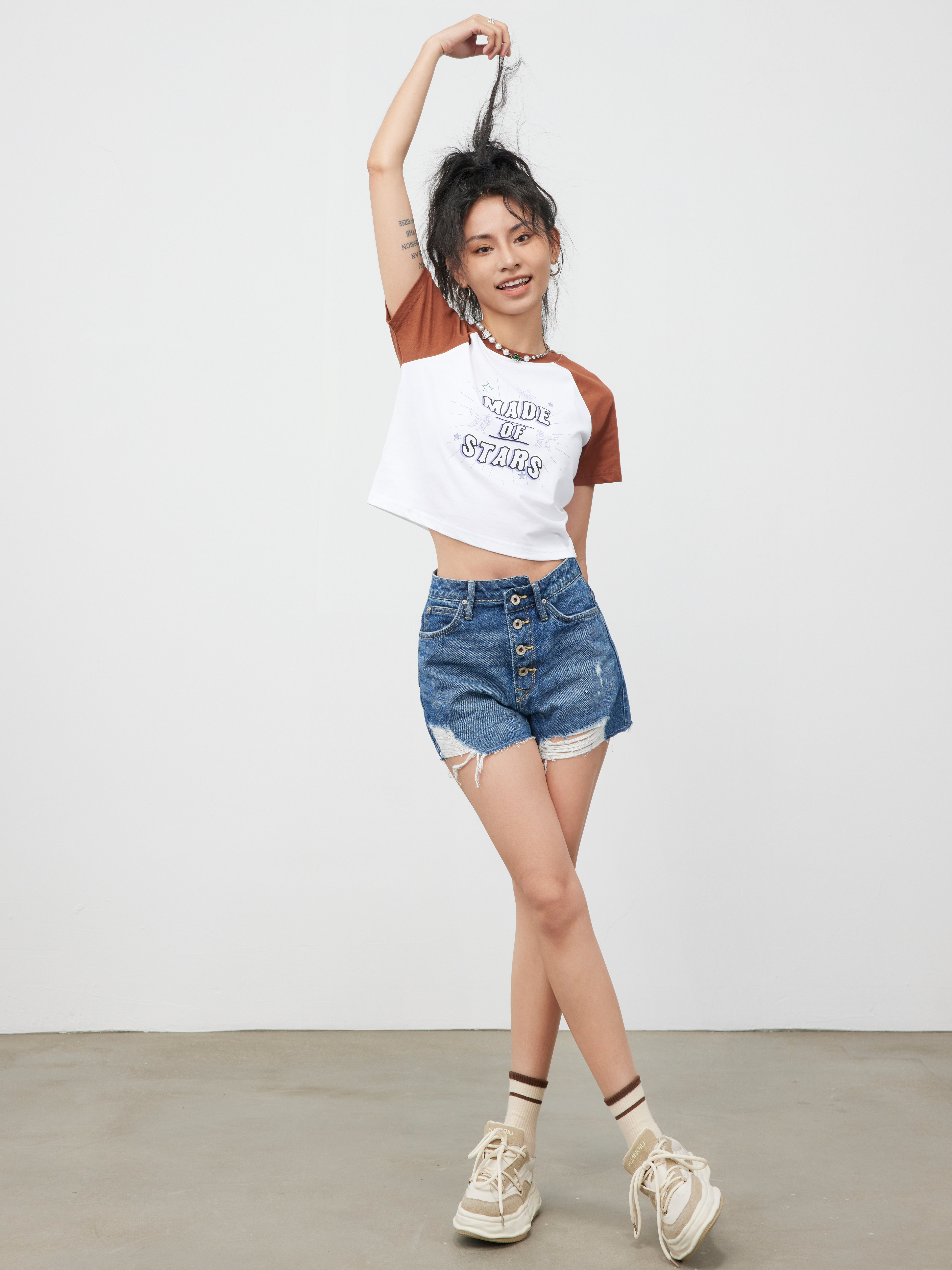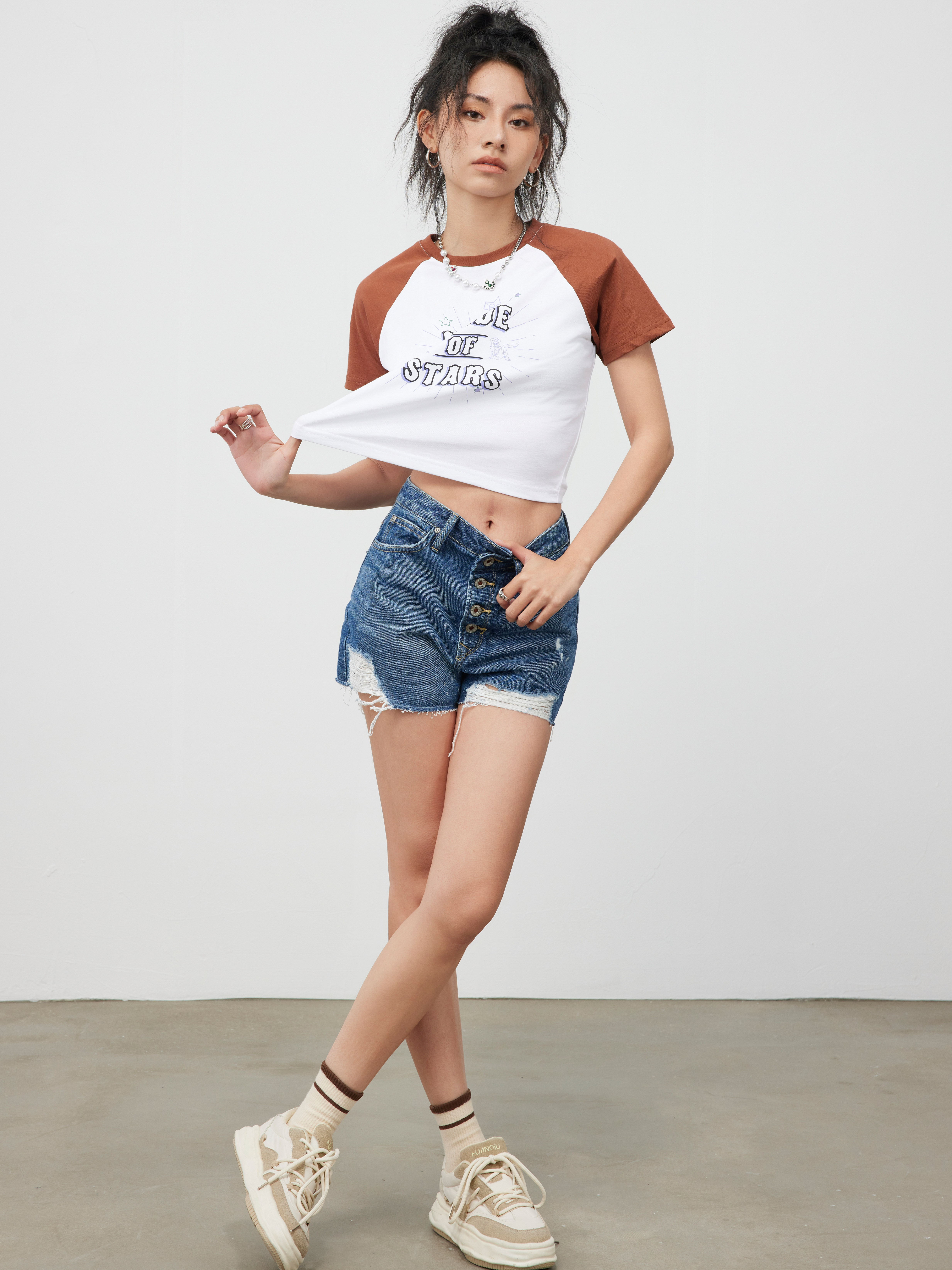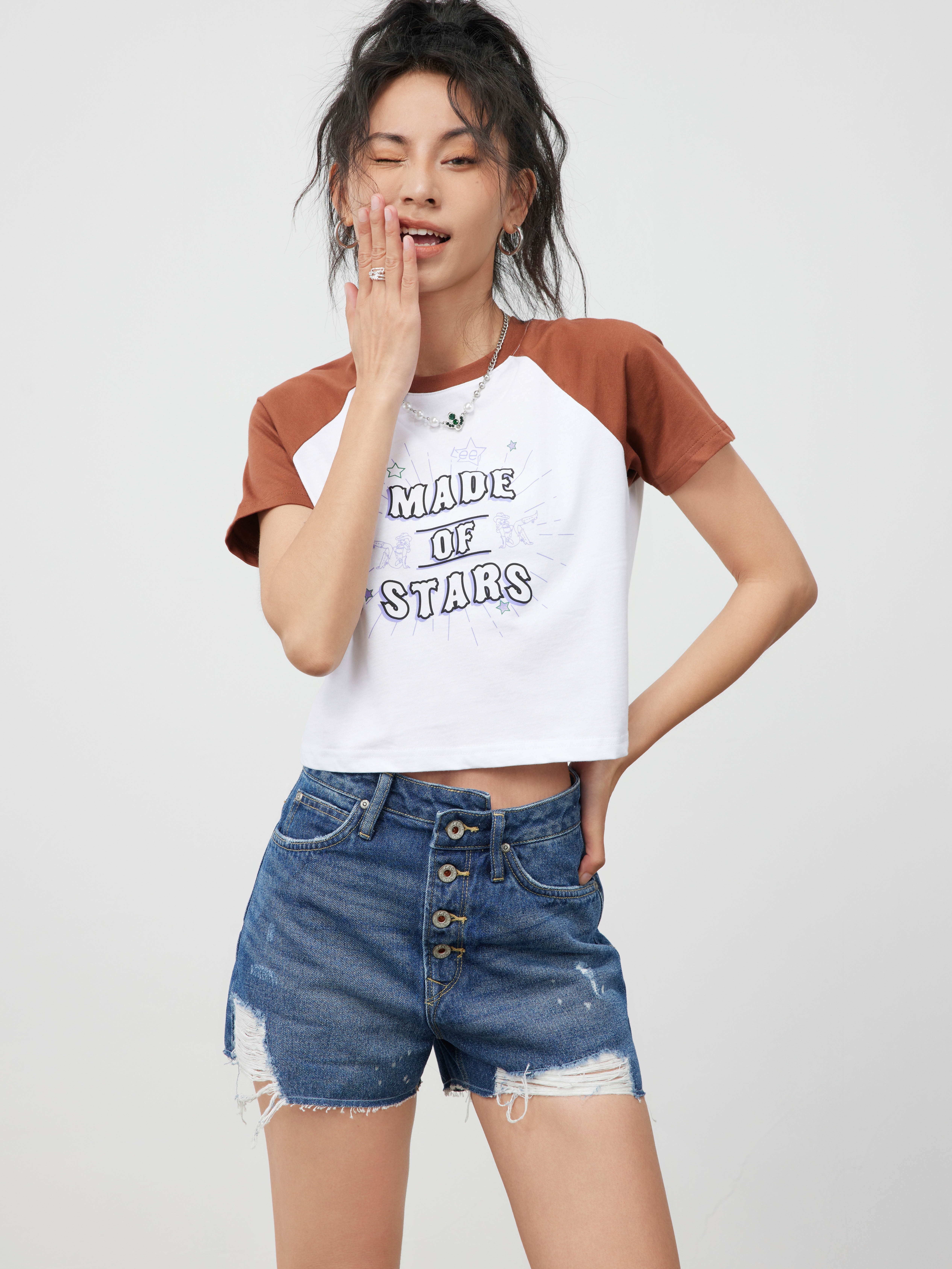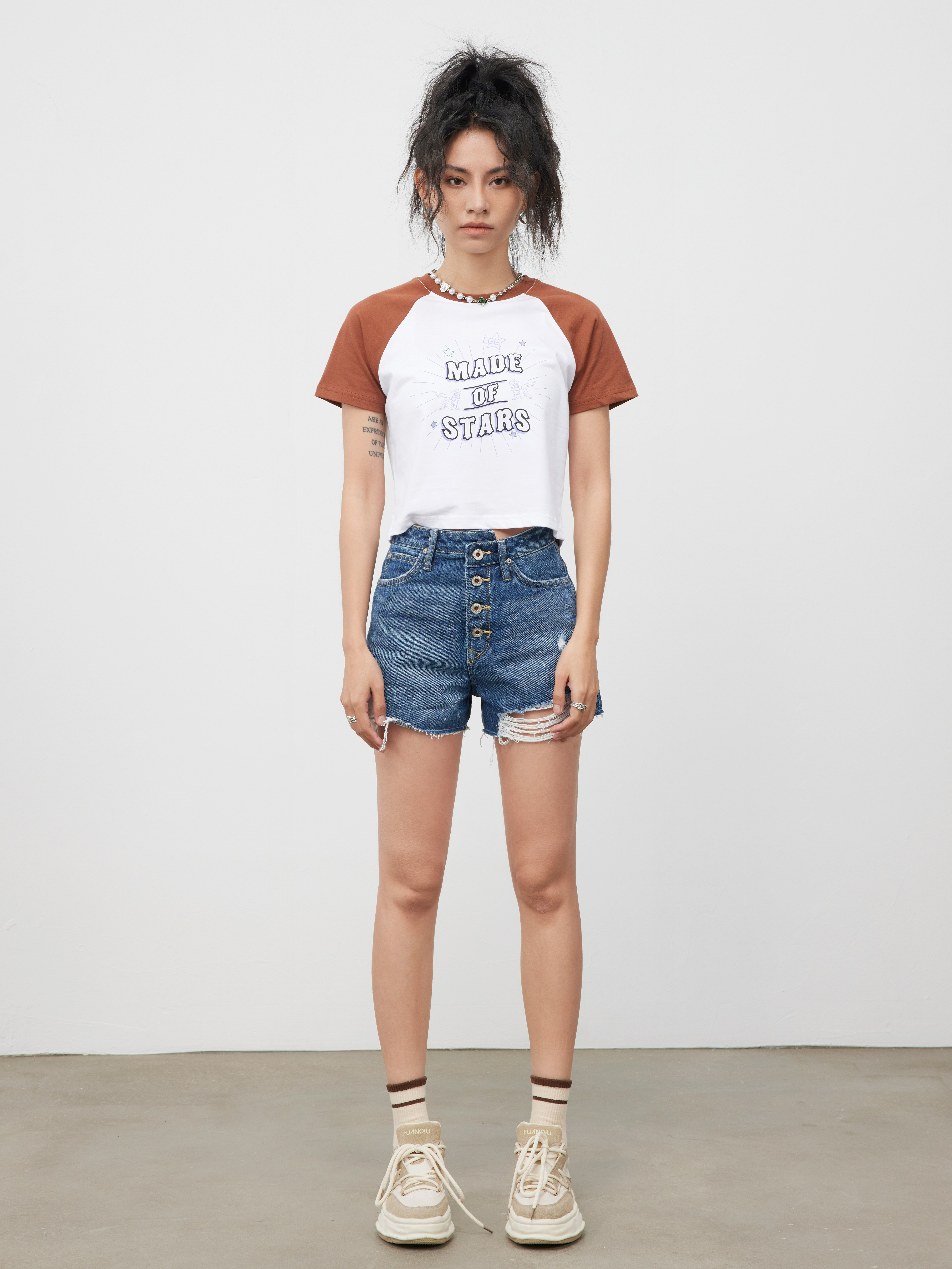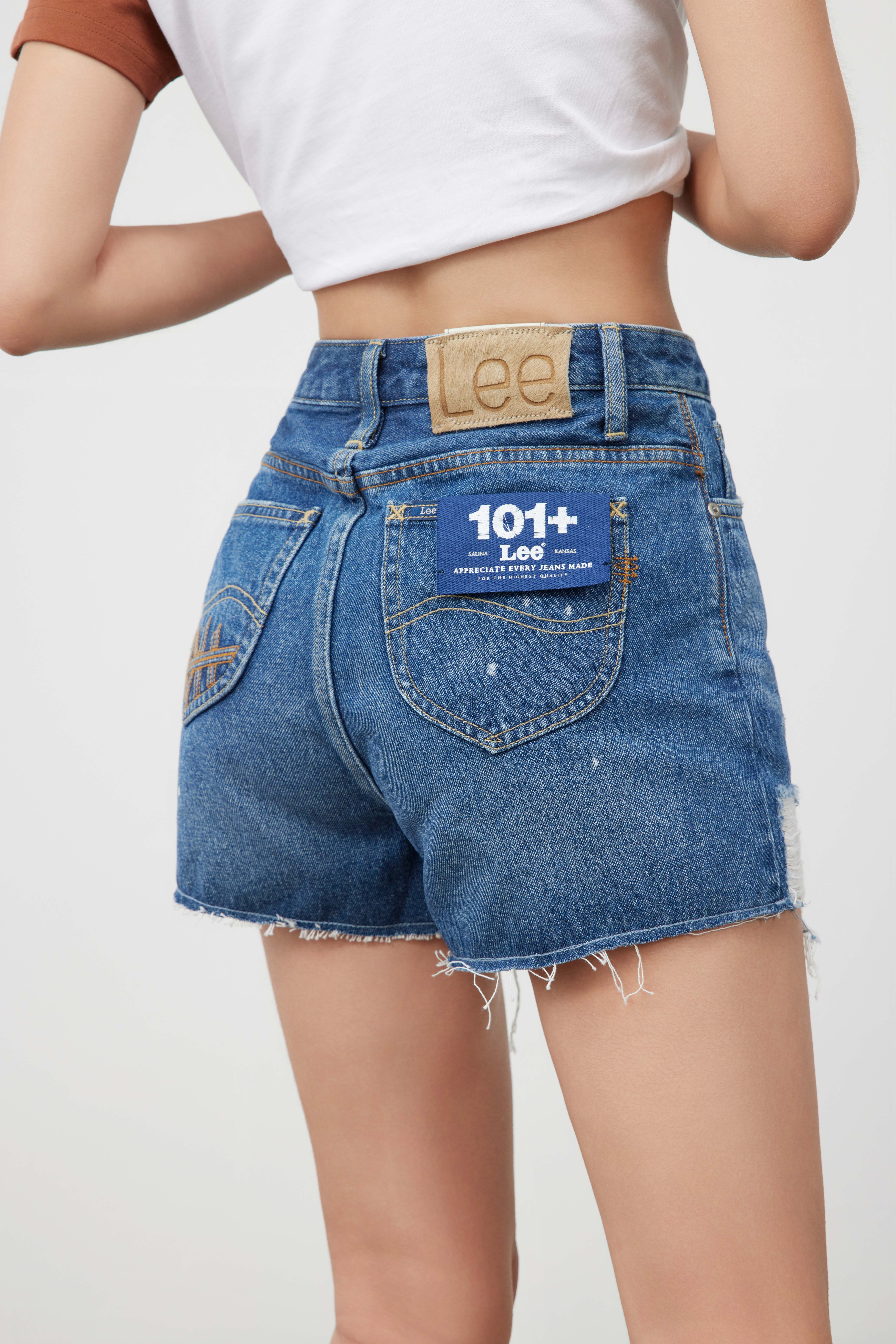 Lee商场同款101+女士破洞妈妈牛仔短裤LWB139853100201A01280