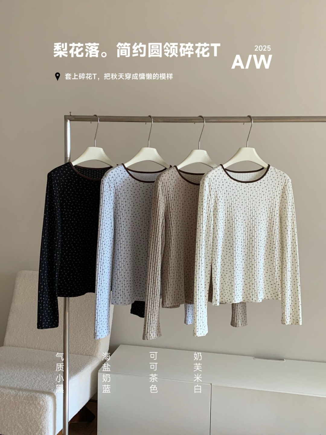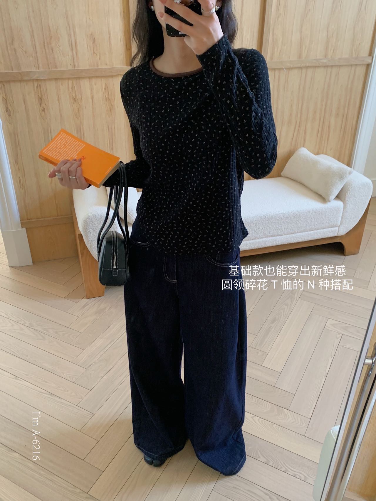 老米优品🎈3-5天!秋日细碎的温柔《文艺小碎花肌理感tee》设计与面料的双优,秋季衣橱的必备单品~ T250915C