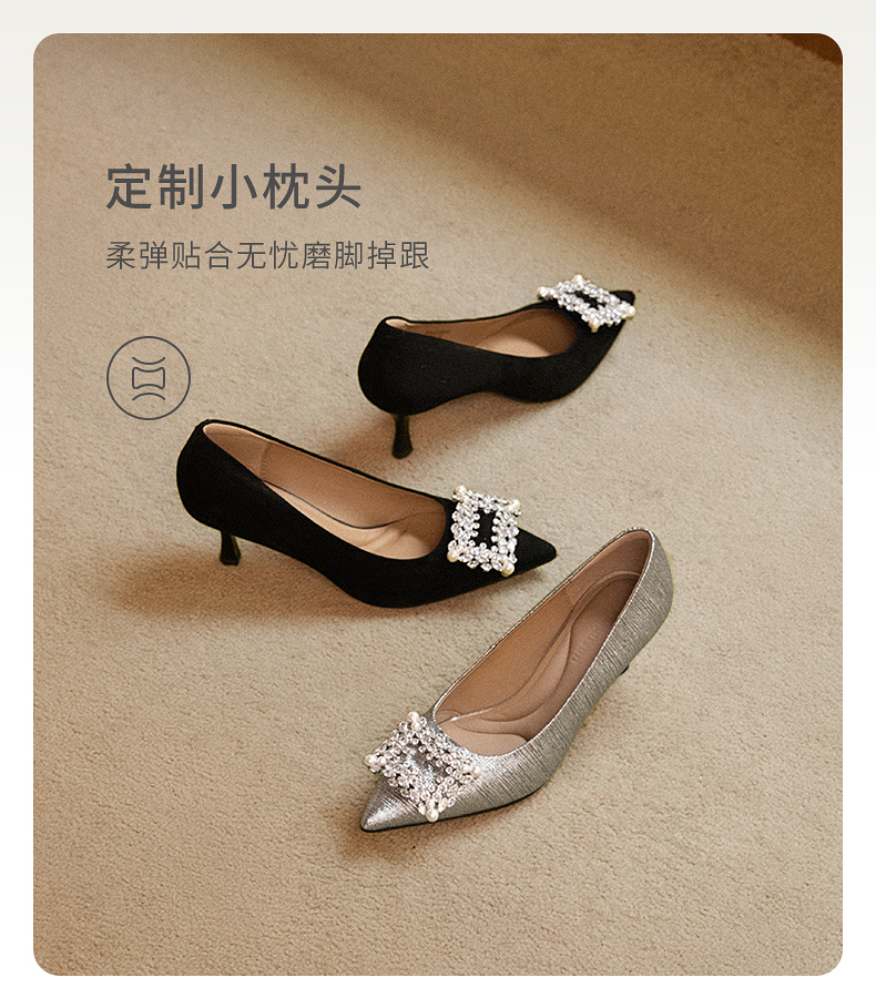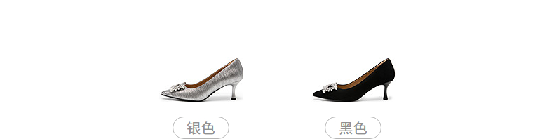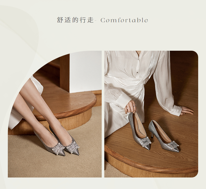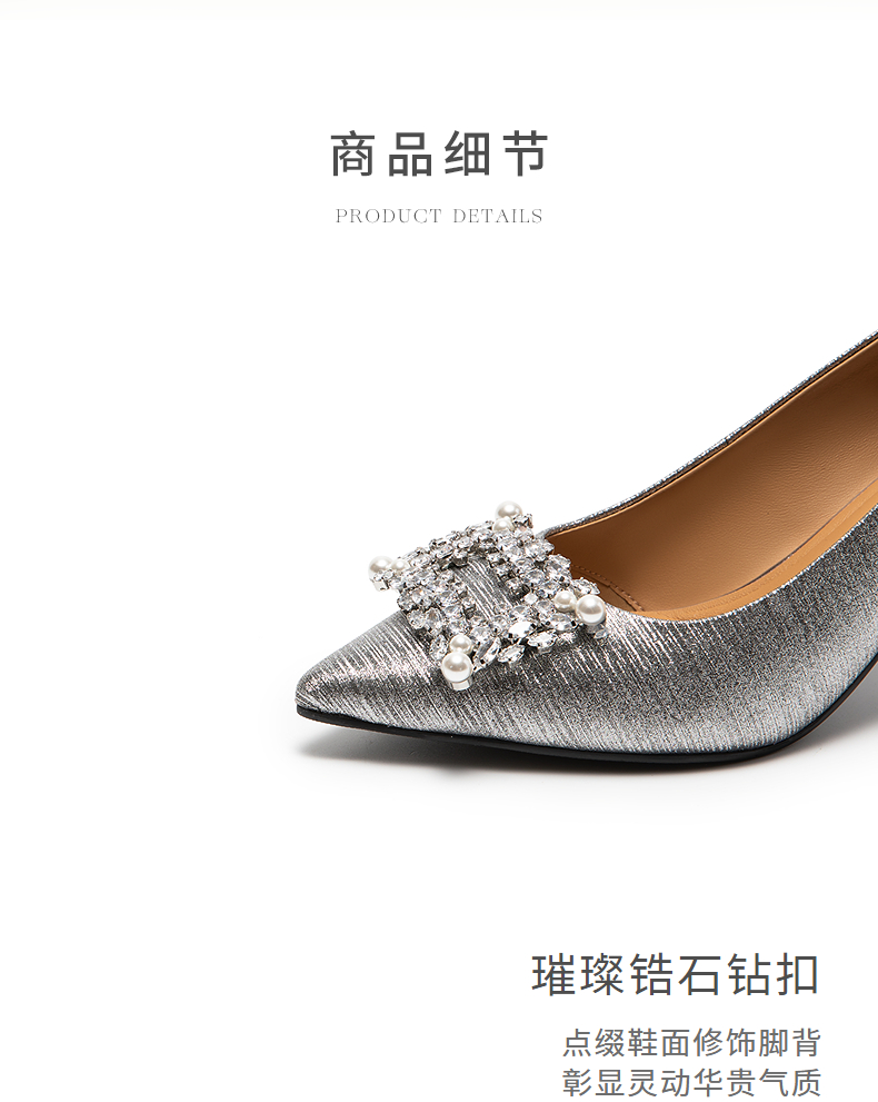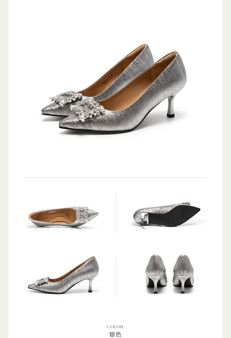 natursun绝美小高跟精致宴会鞋细跟显瘦银色单鞋女N25432150