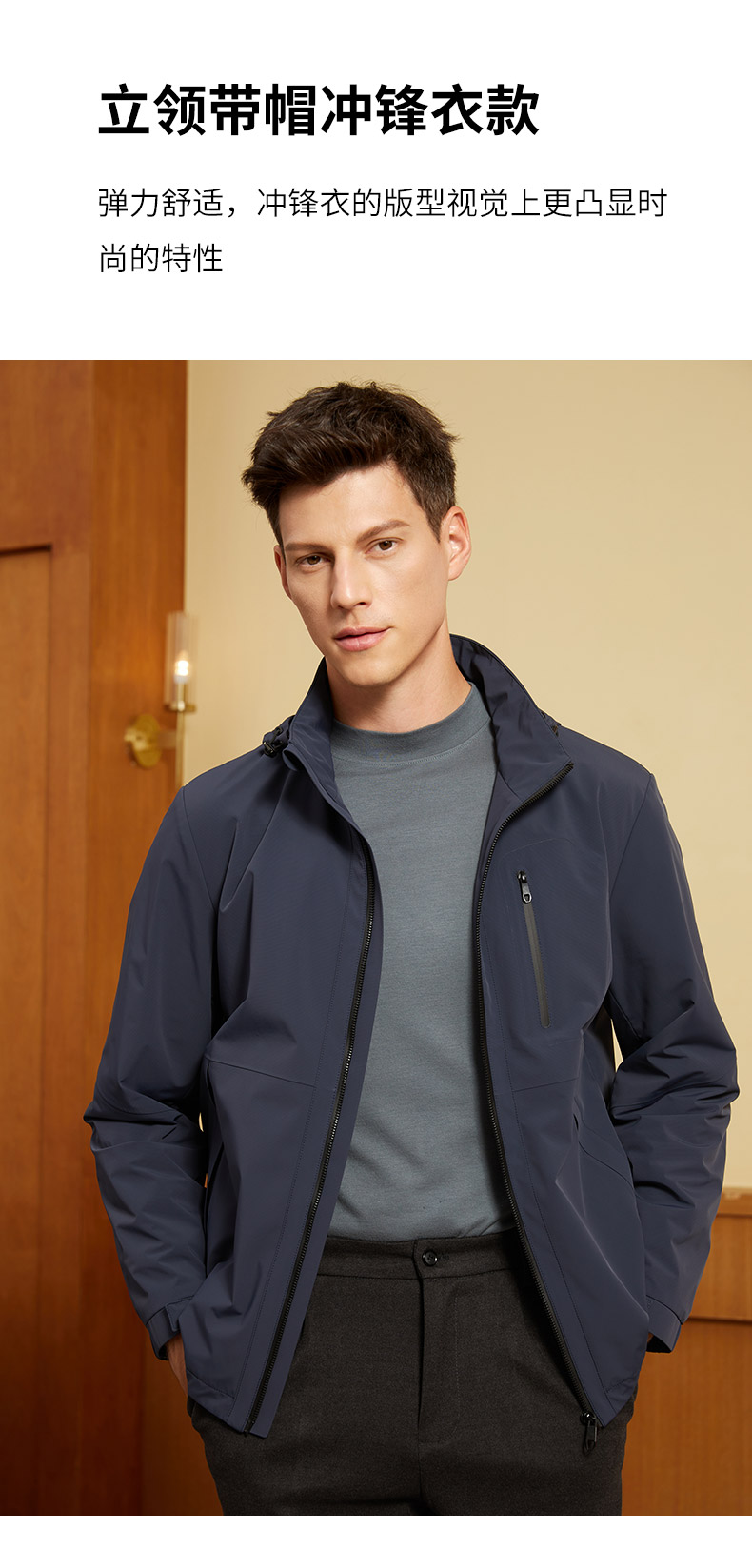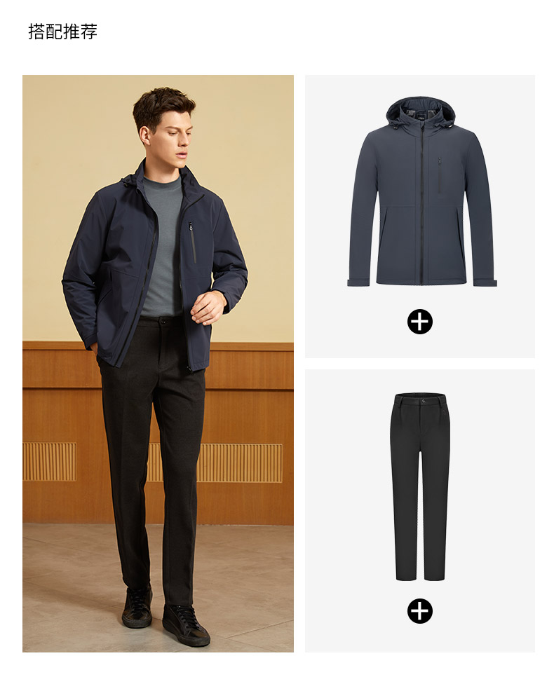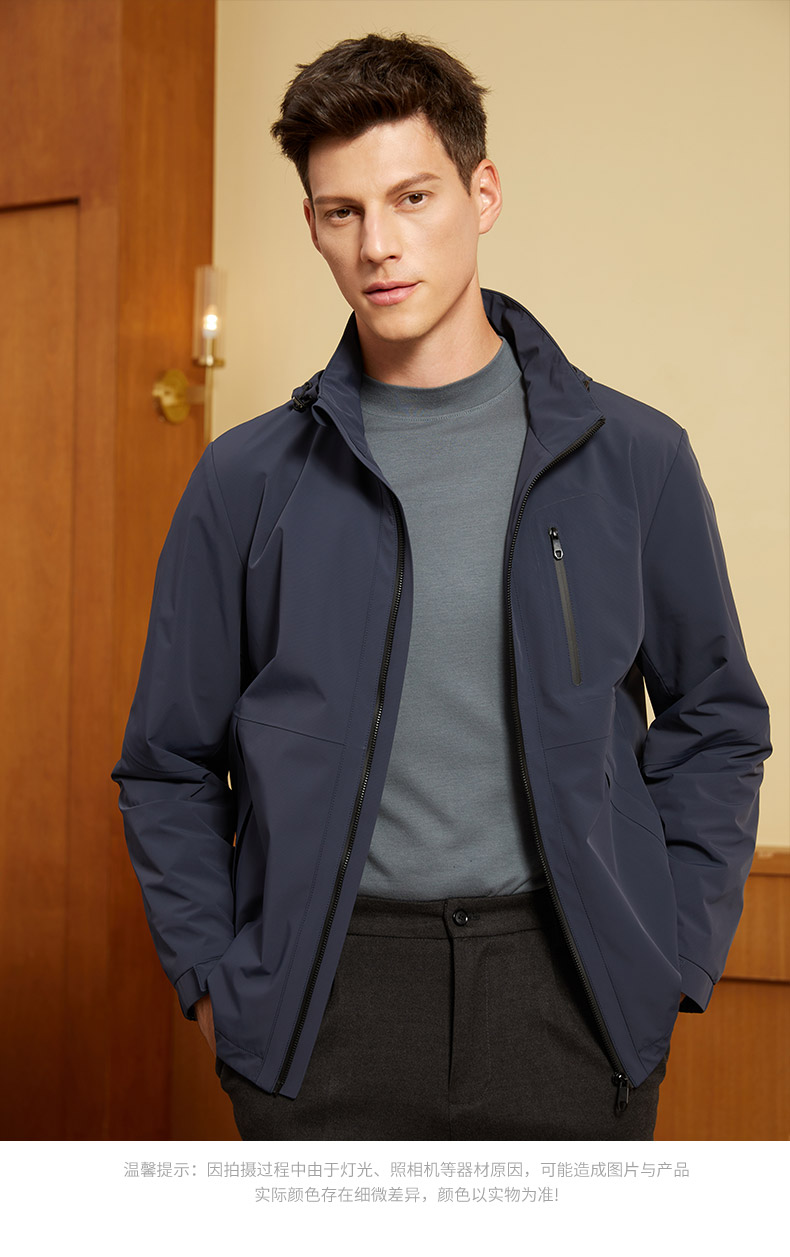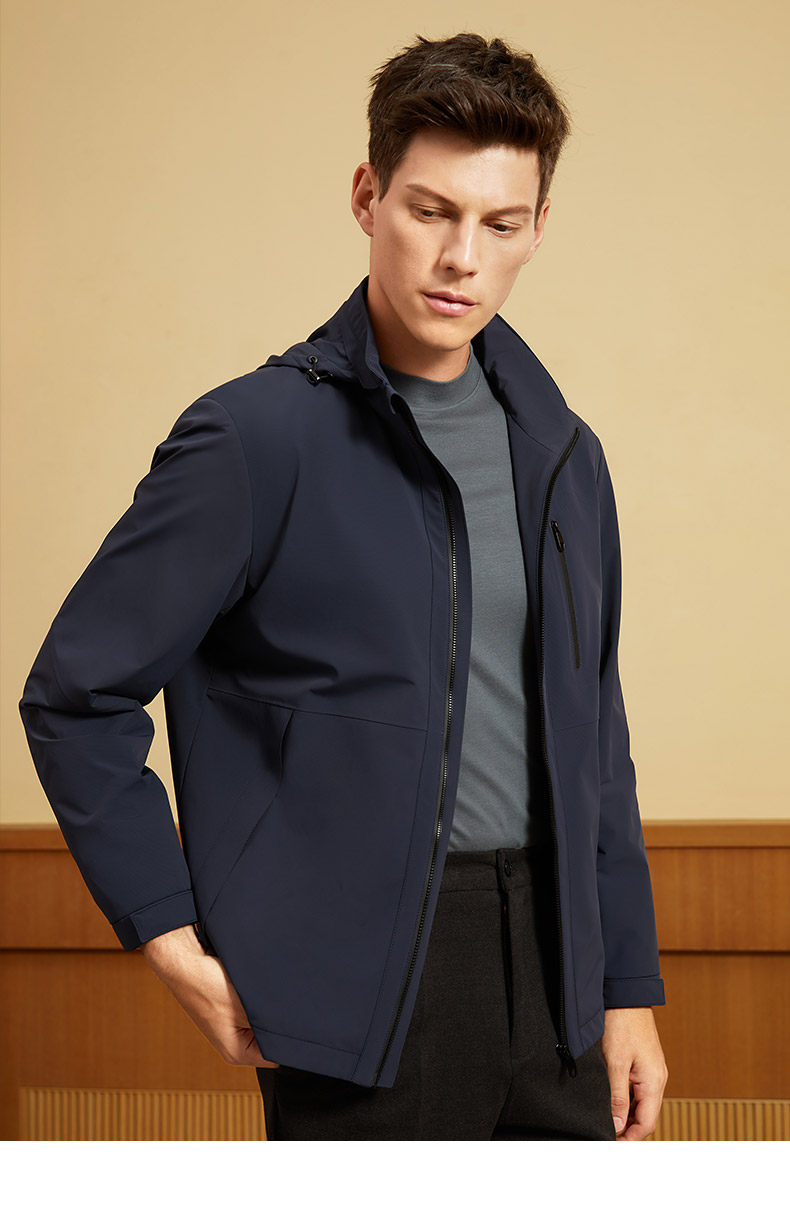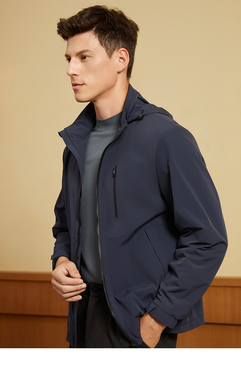 【三防面料】MD名盾秋季夹克男抗皱防水商务行政风连帽外套91567