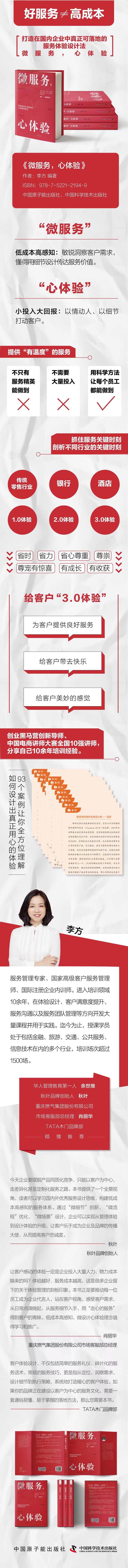 体验时代来临,单凭“商业模式”取胜的时代已经一去不复返。无体验不消费,只有客户体验良好的企业,才能获得更多的客户、更多的利润和更快的增长。作者引用“小景大爱”的概念,并从流程优化、场景设计、员工体验三个角度分析提升服务体验之道。不惜成本地为客户提供很好服务,试图在与客户接触的各个“触点“达到完美的想法很难落地。作者提出构建低成本、高感知的企业服务体系,让企业的每位员工做到用心服务,用“投入”和“用心”换回客户的感动和忠诚。通过丰富的真实案例,读者可以更好地理解和践行“微服务,心体验”。