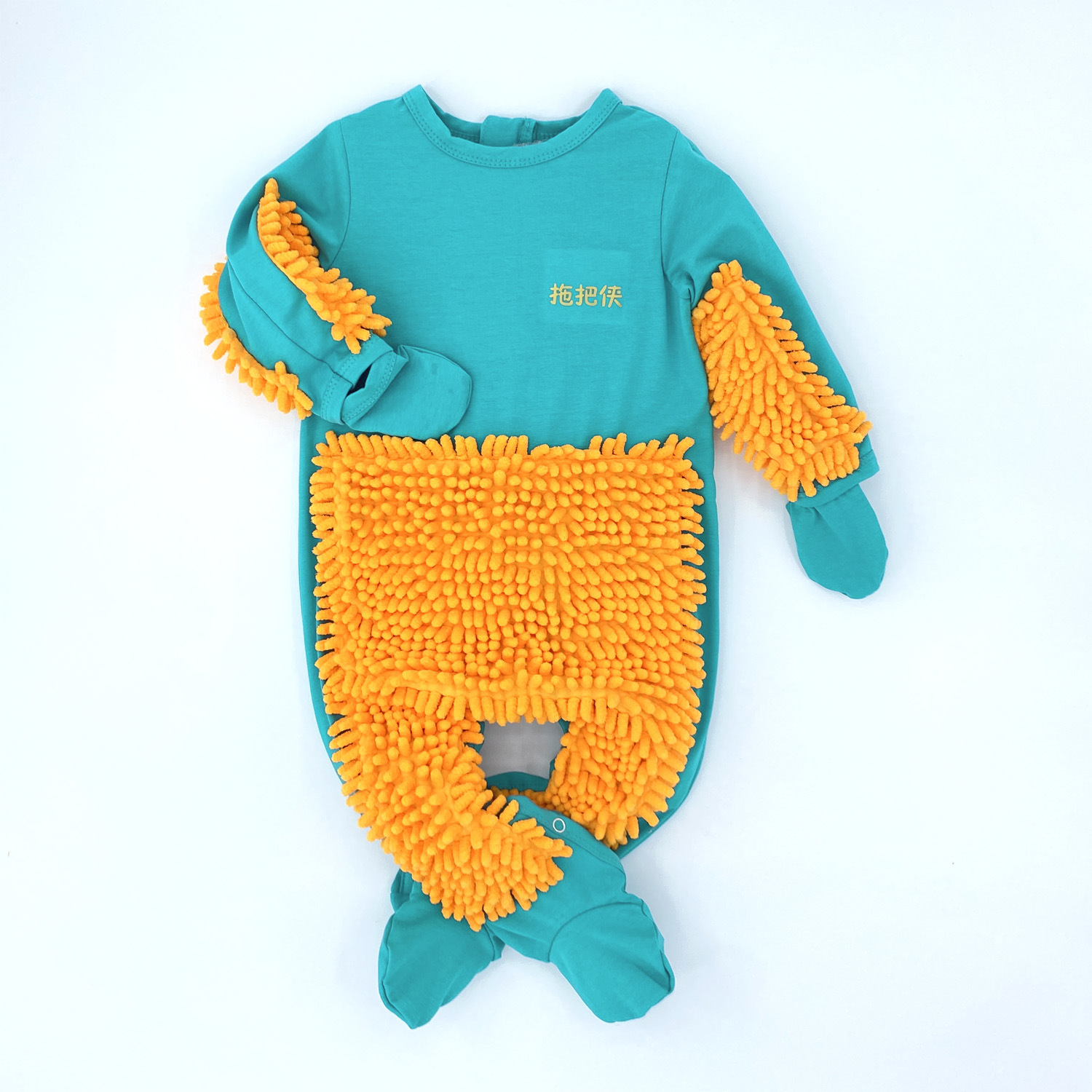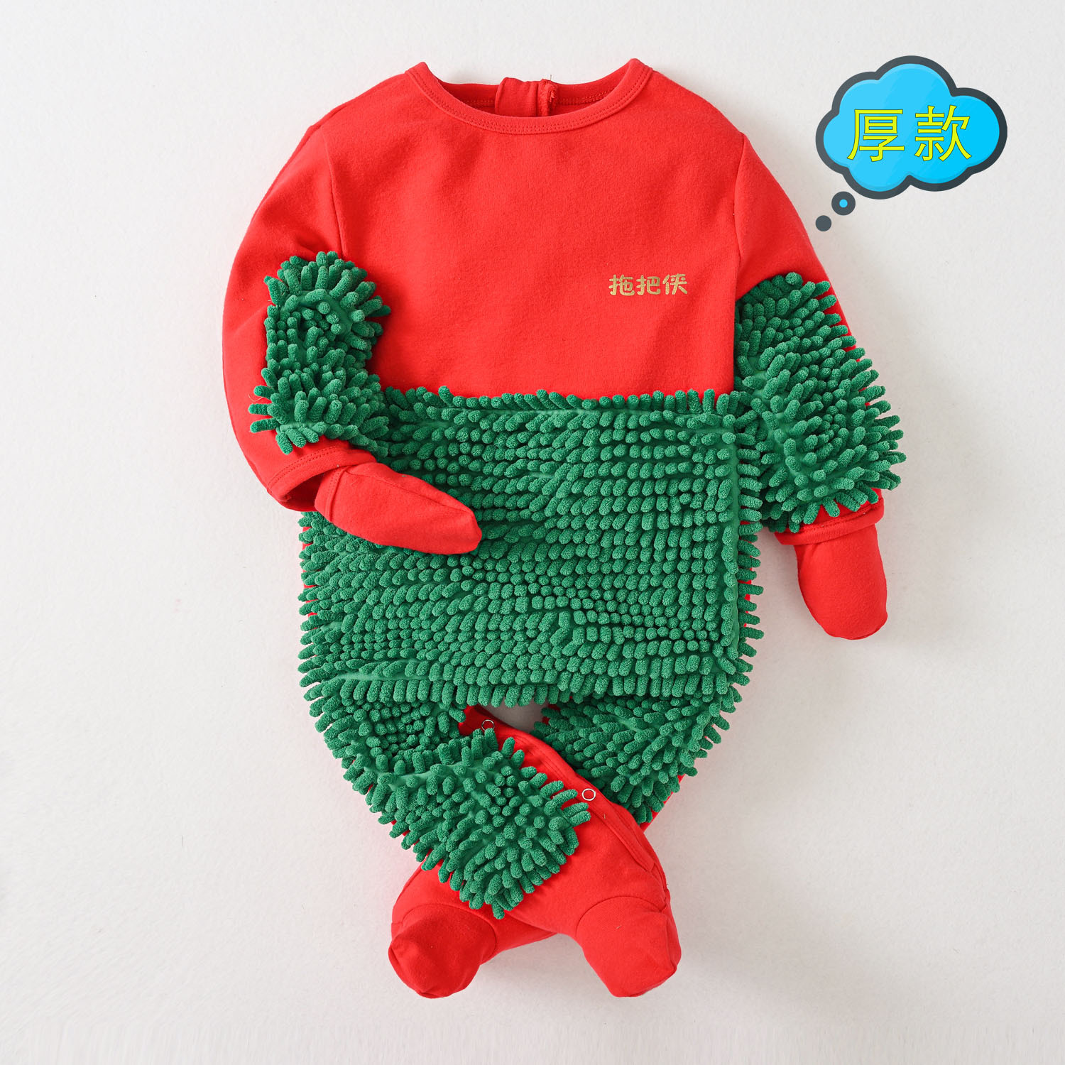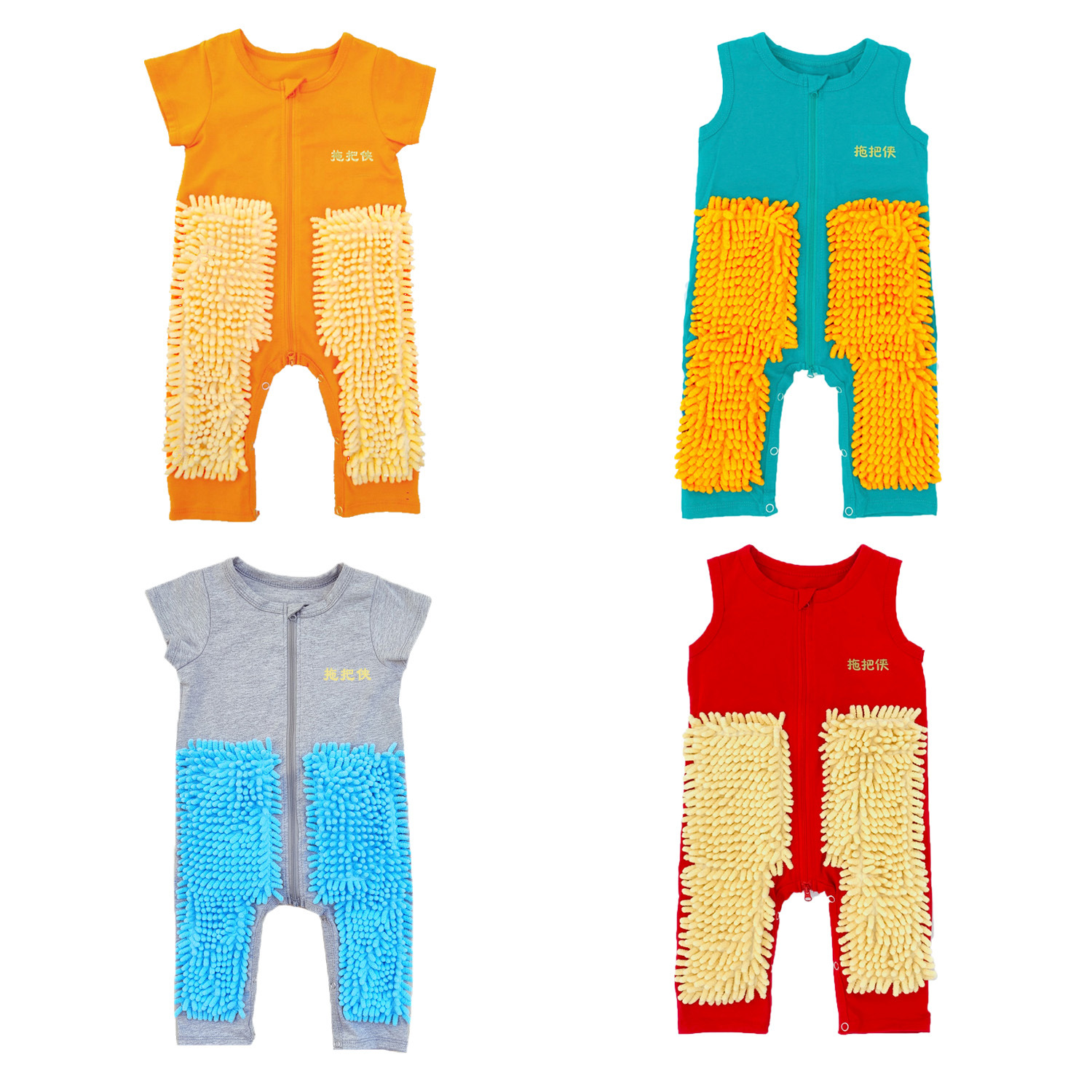 拖把侠婴儿爬行服宝宝拖地爬爬服儿童连体衣服拉链防脏春秋冬季