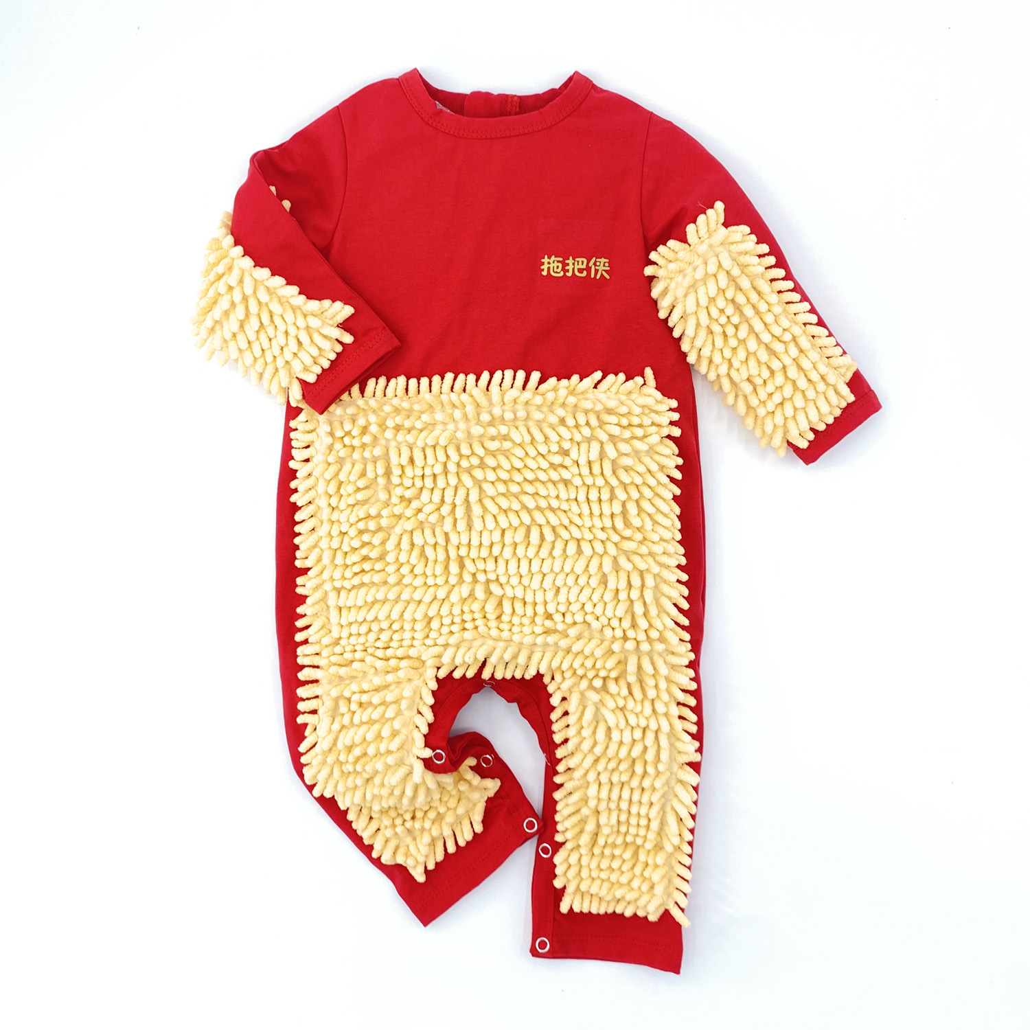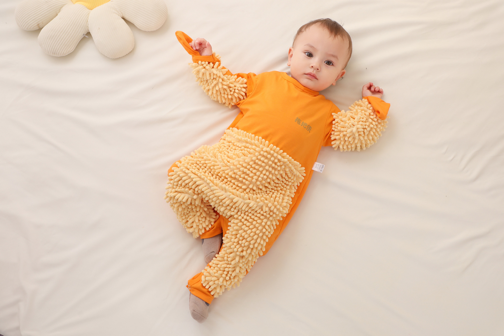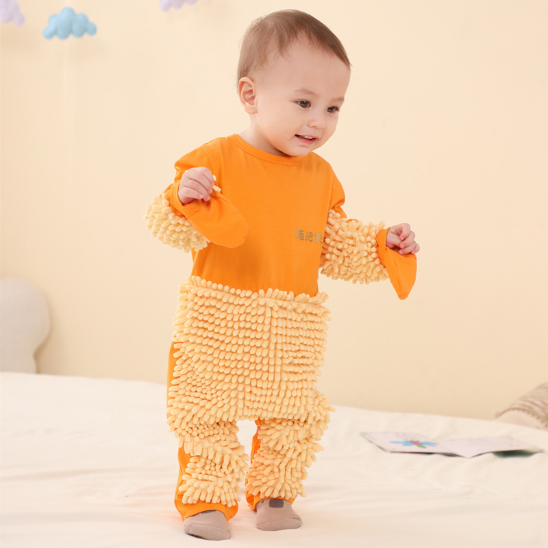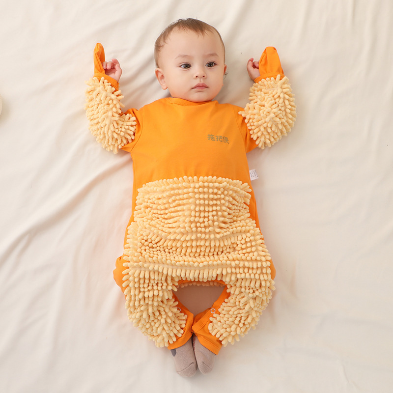 拖把侠婴儿爬行服宝宝拖地爬爬服儿童连体衣服拉链防脏春秋冬季