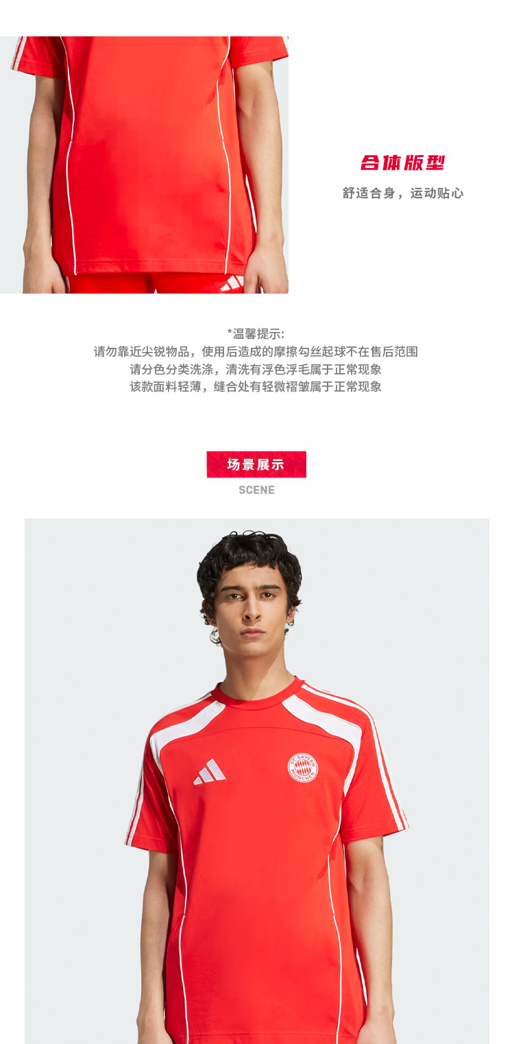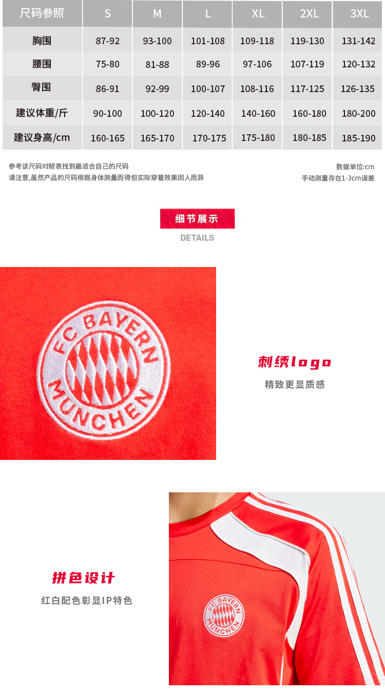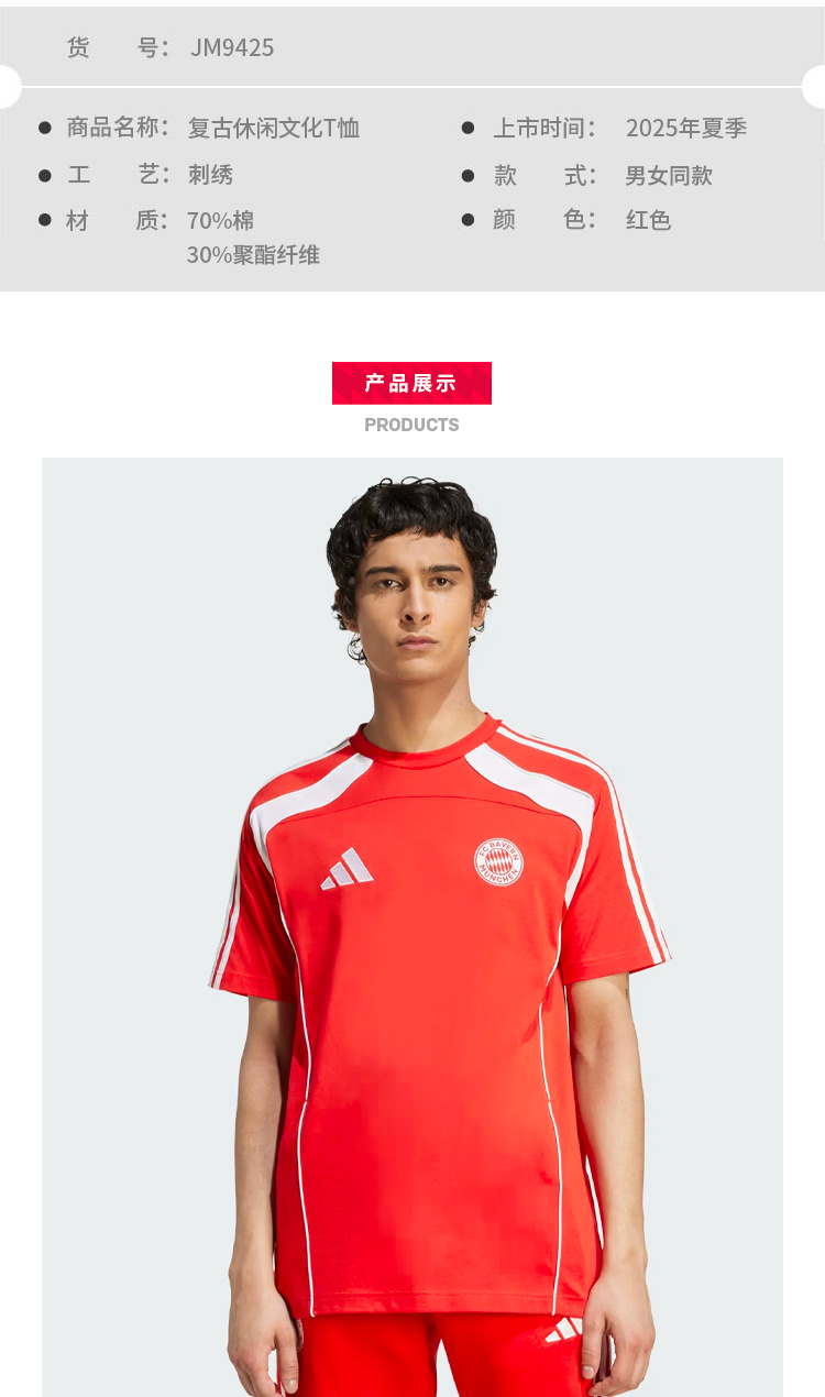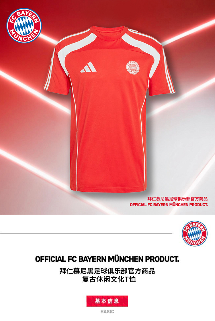【官网同款】拜仁足球俱乐部丨复古休闲文化T恤红白拼色短袖舒适透气