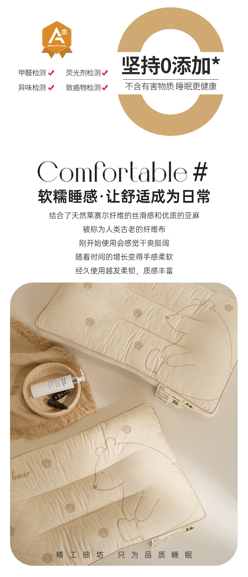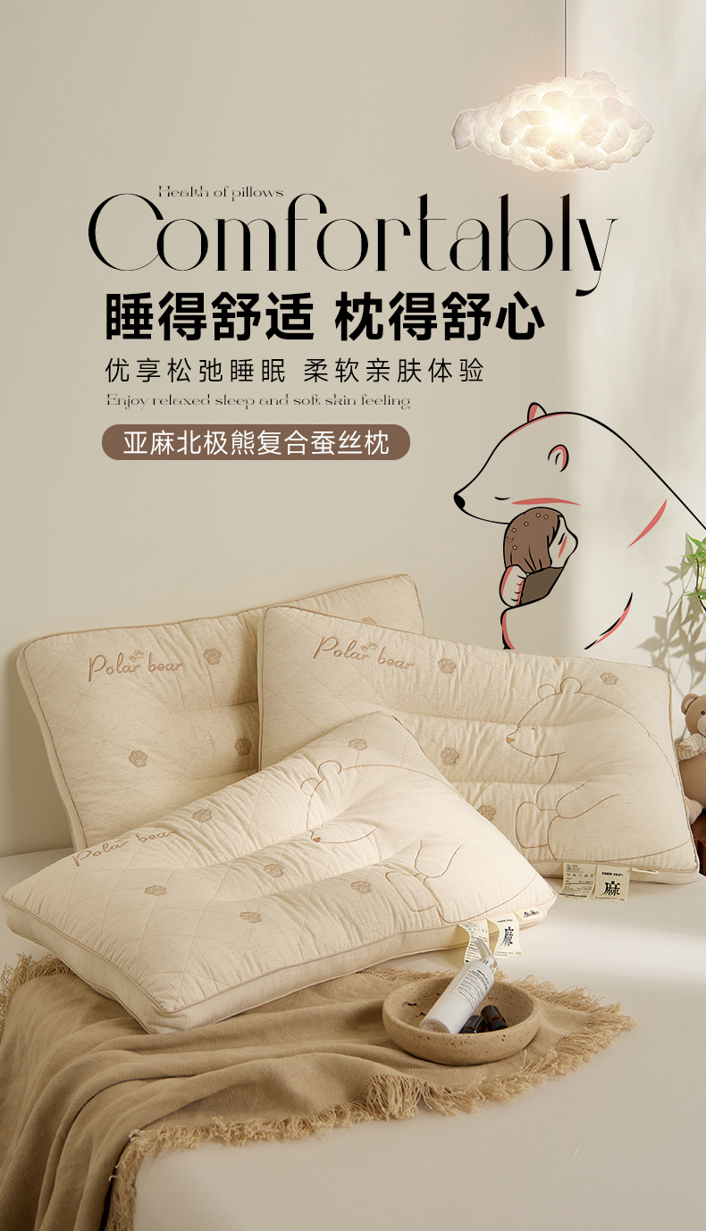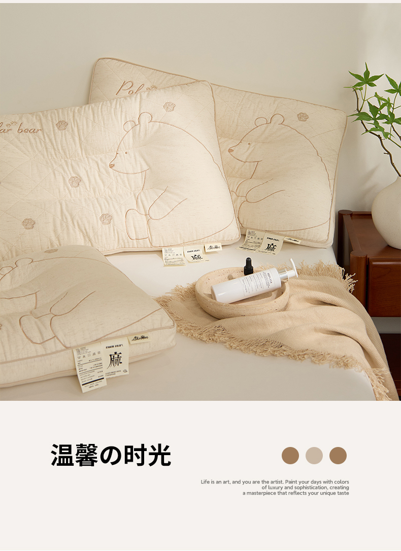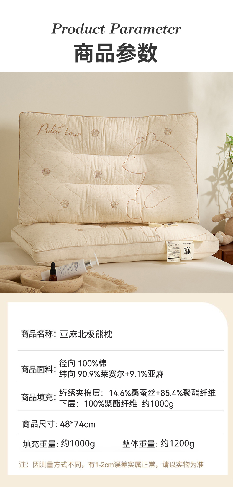 【品牌直发】加倍生活 亚麻北极熊枕 棉麻绣花小熊枕头 成人立体亚麻枕芯 枕头枕芯